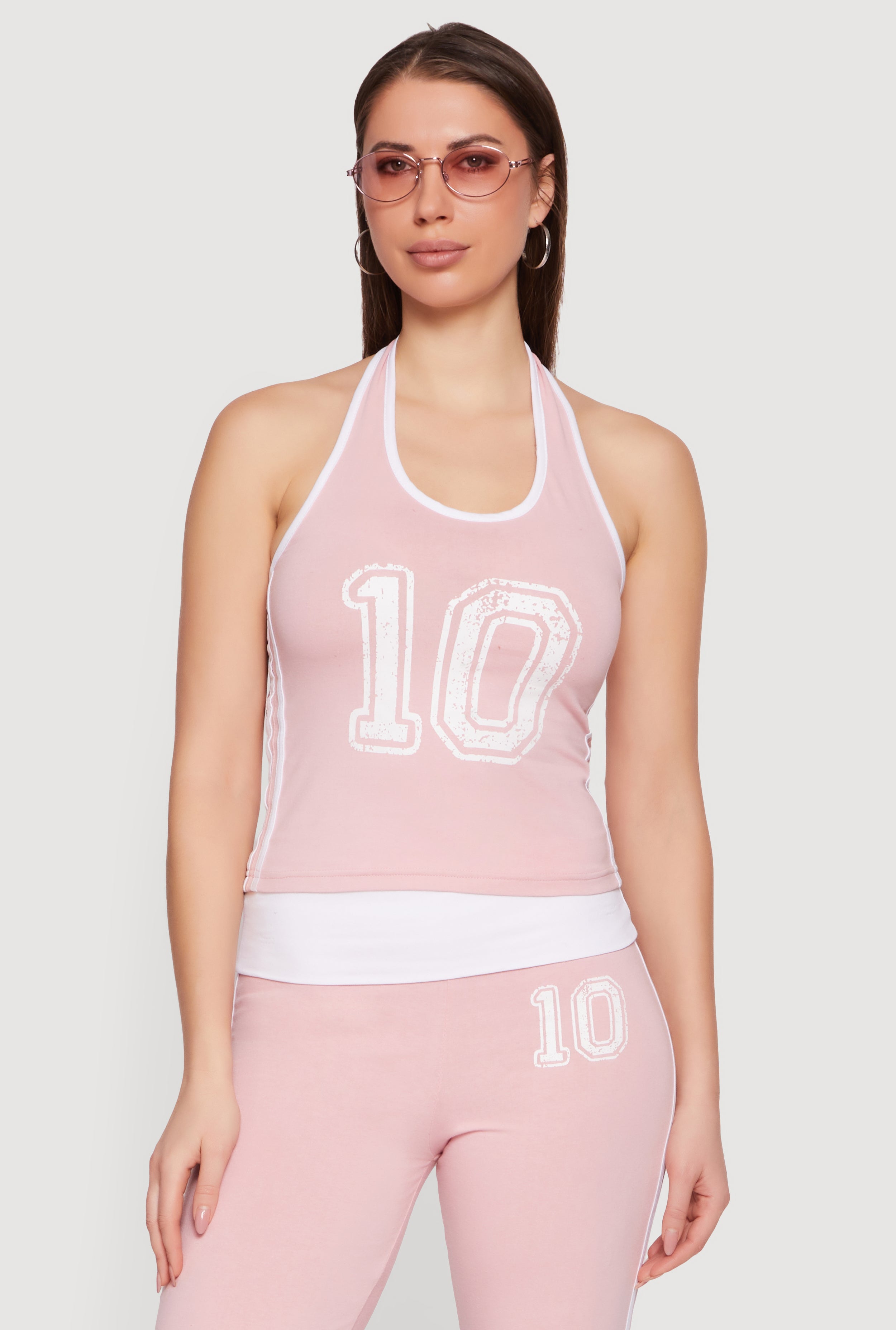 Contrast Trim Graphic Print Halter Top