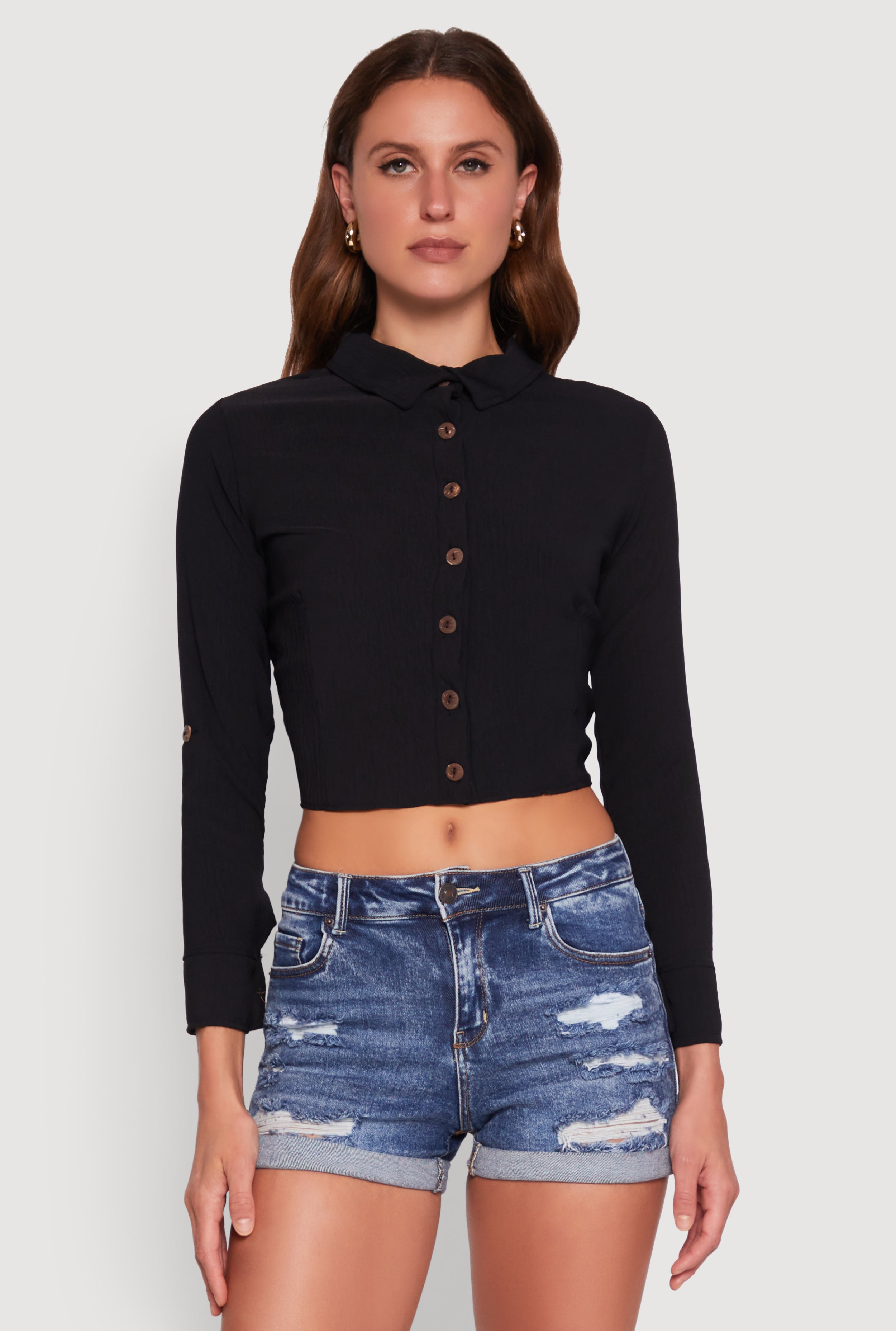 Ruched Sleeve Button Front Shirt