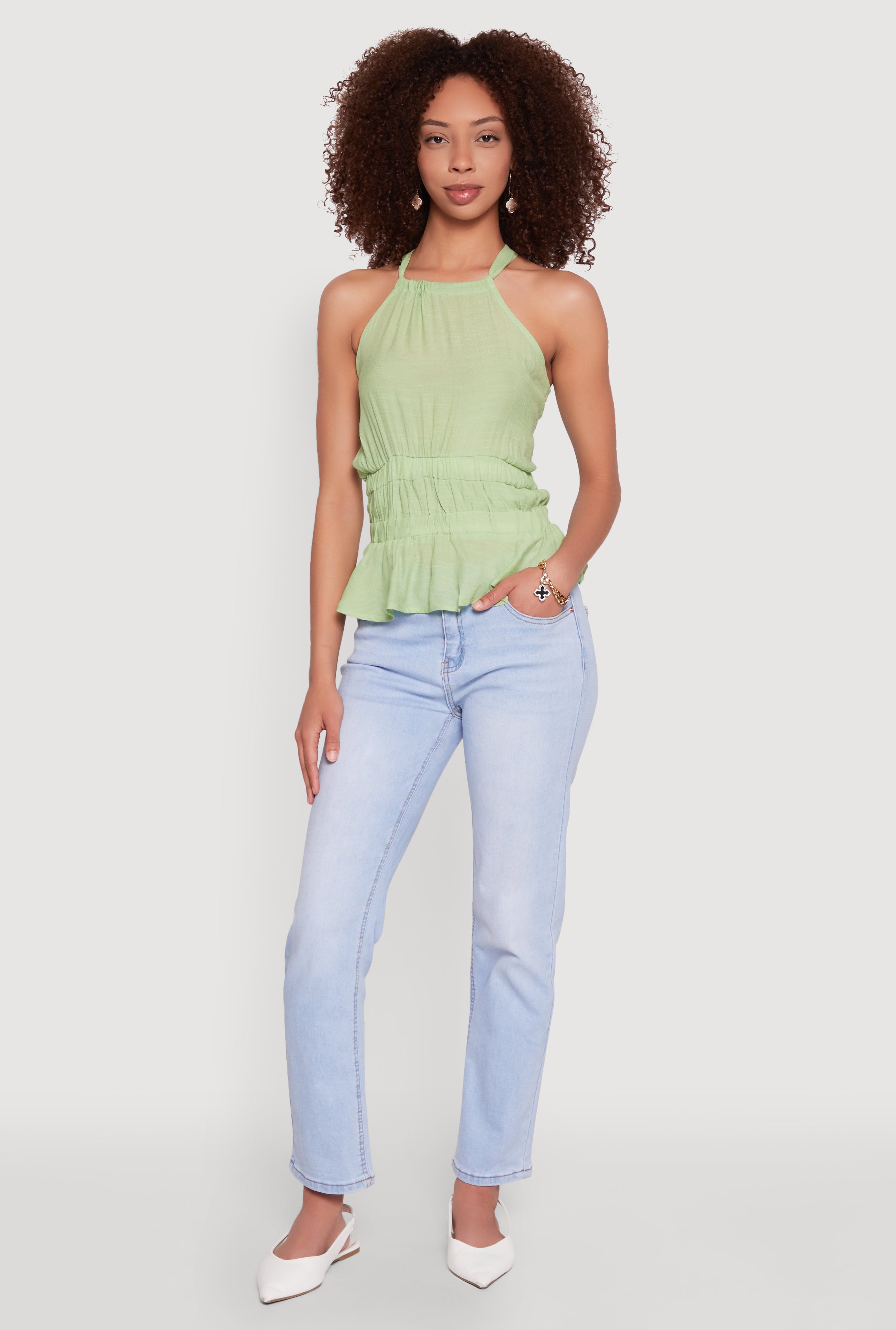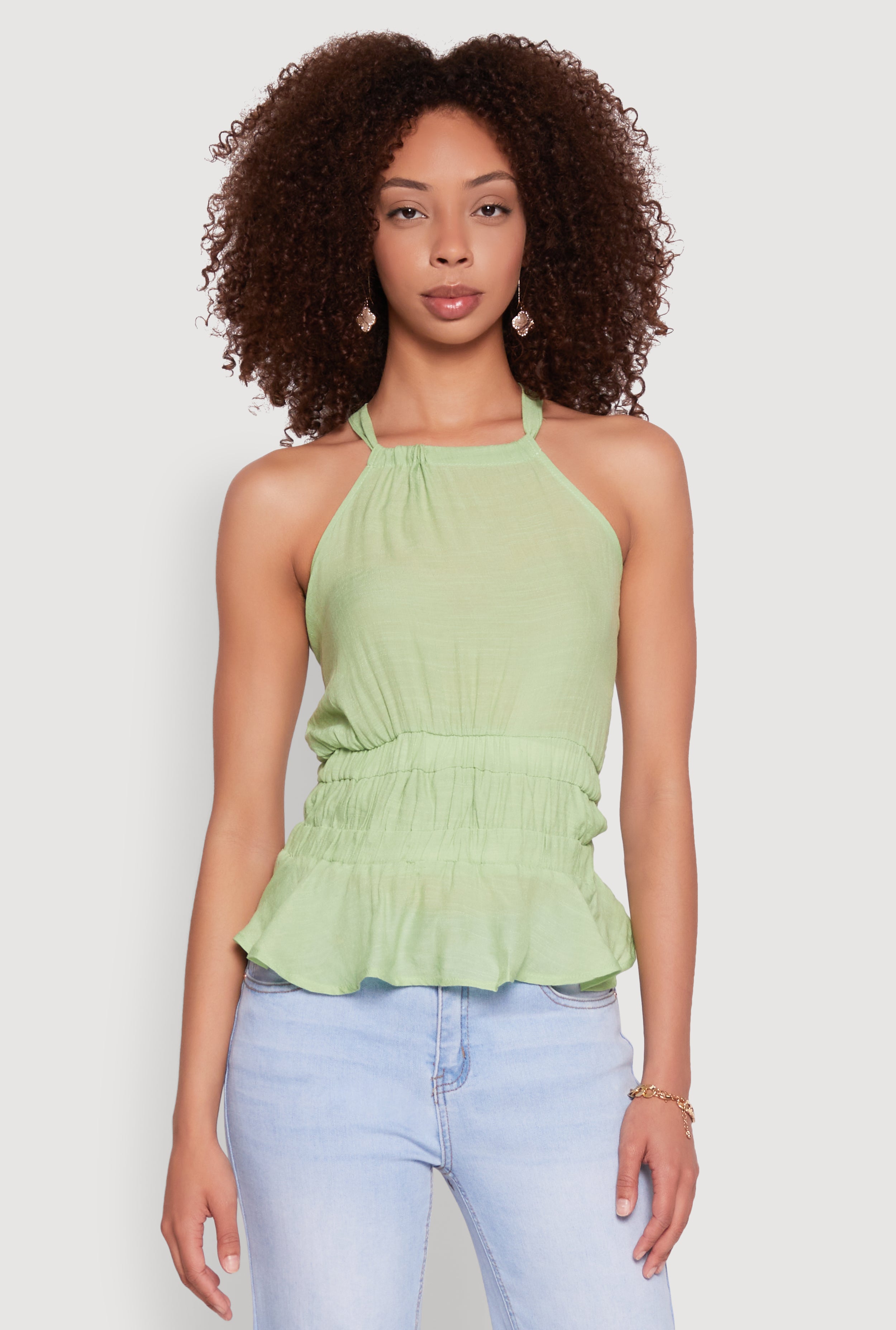 Gauze Knit Halter Peplum Top