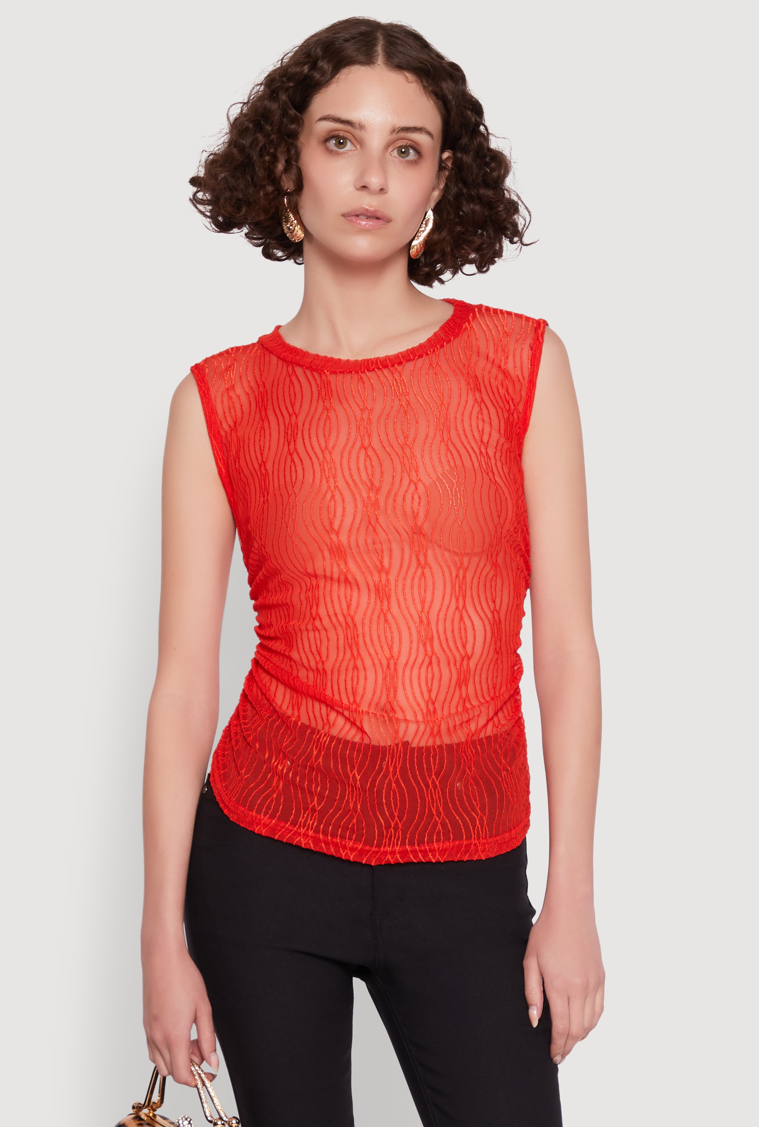 Side Ruched Sleeveless Mesh Top