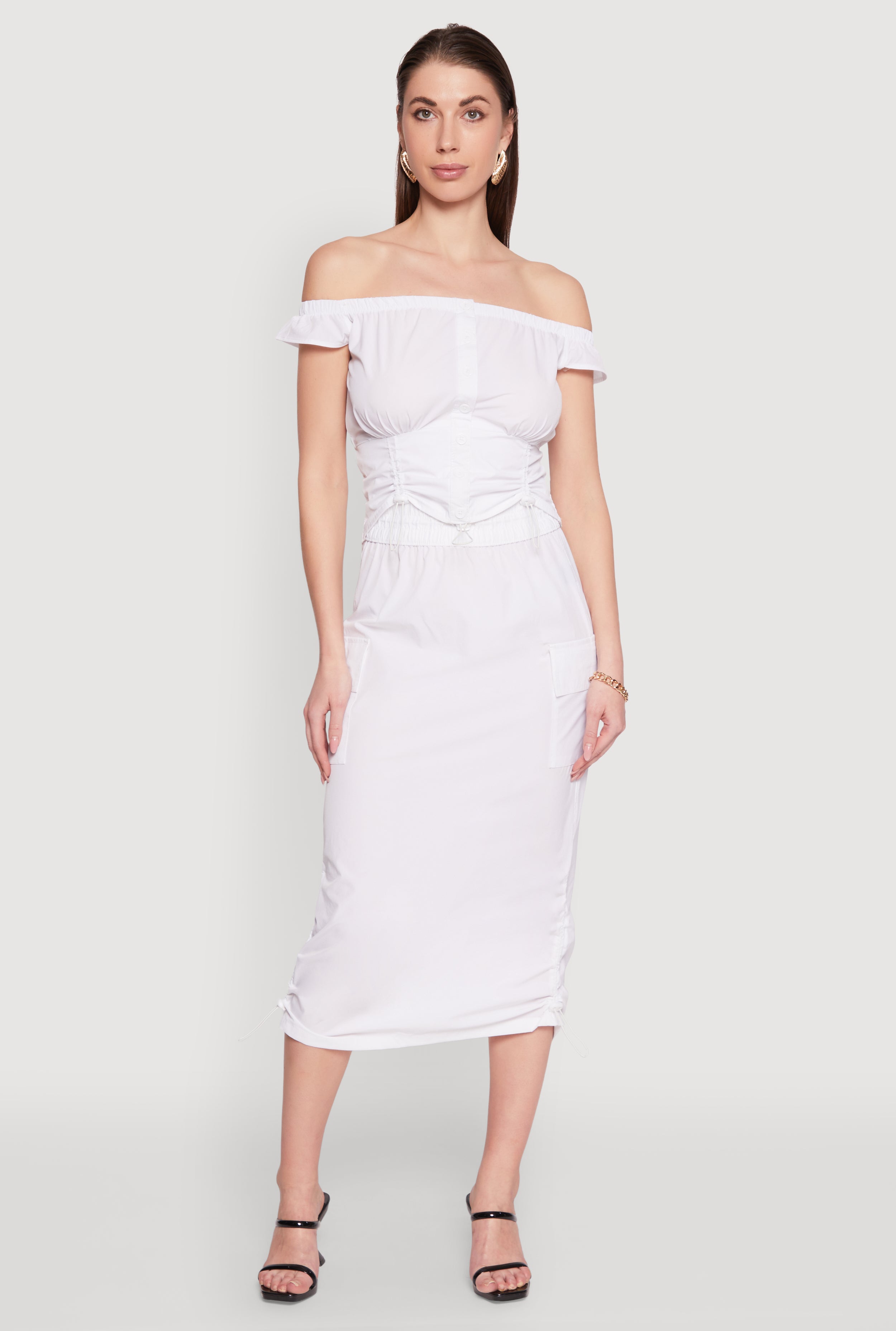 Toggle Drawstring Off The Shoulder Crop Top