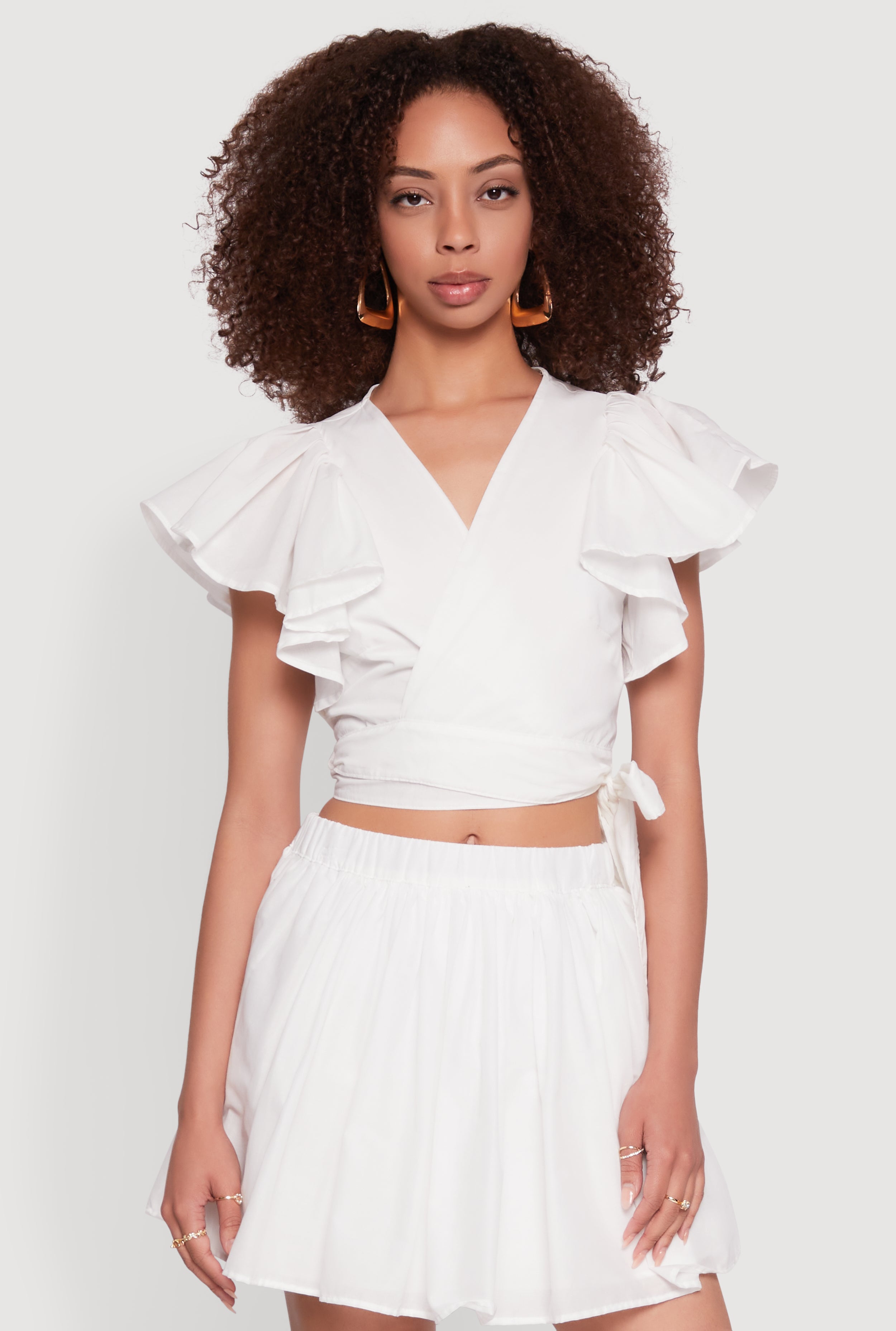 Haute Monde Flutter Sleeve Side Tie Wrap Top