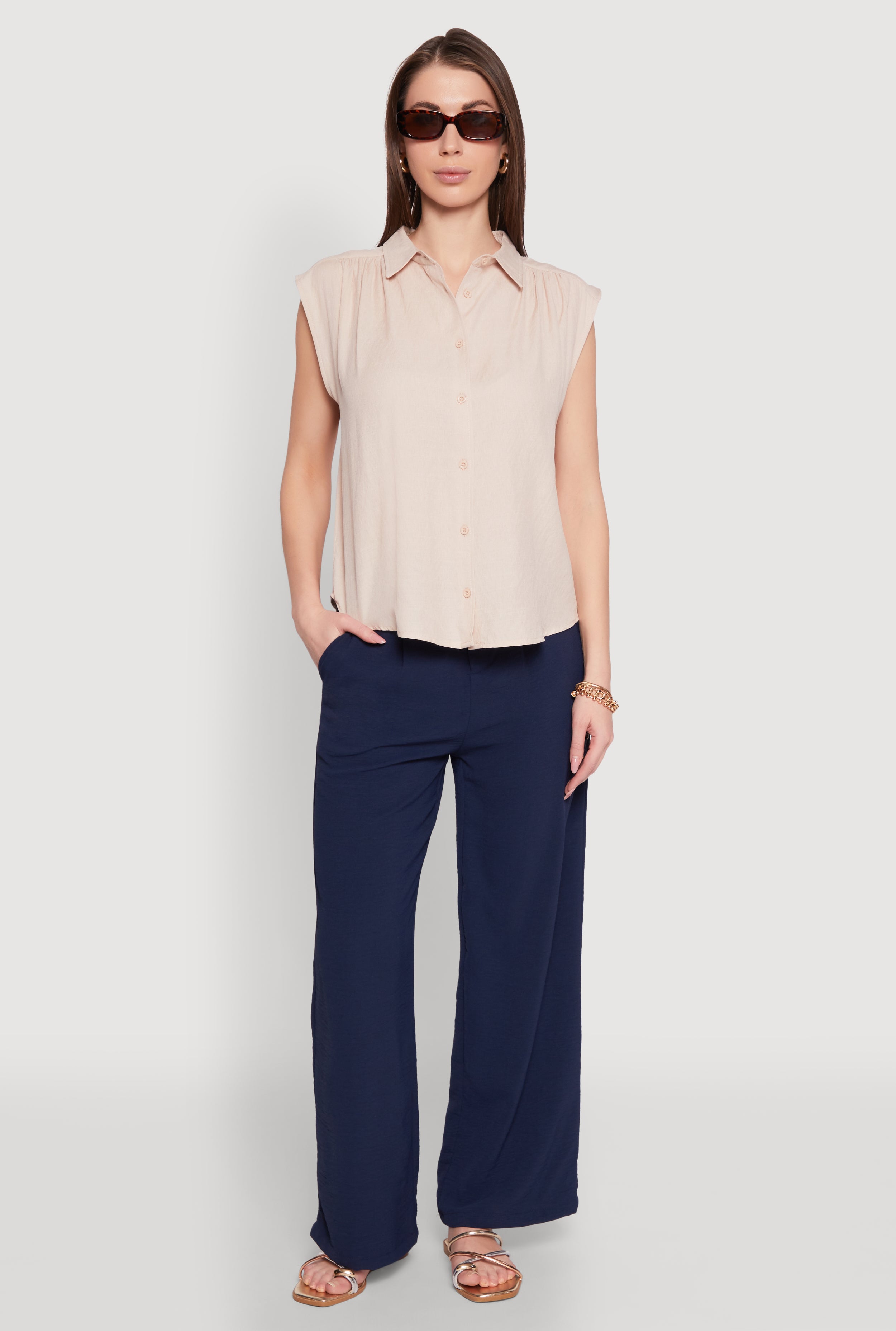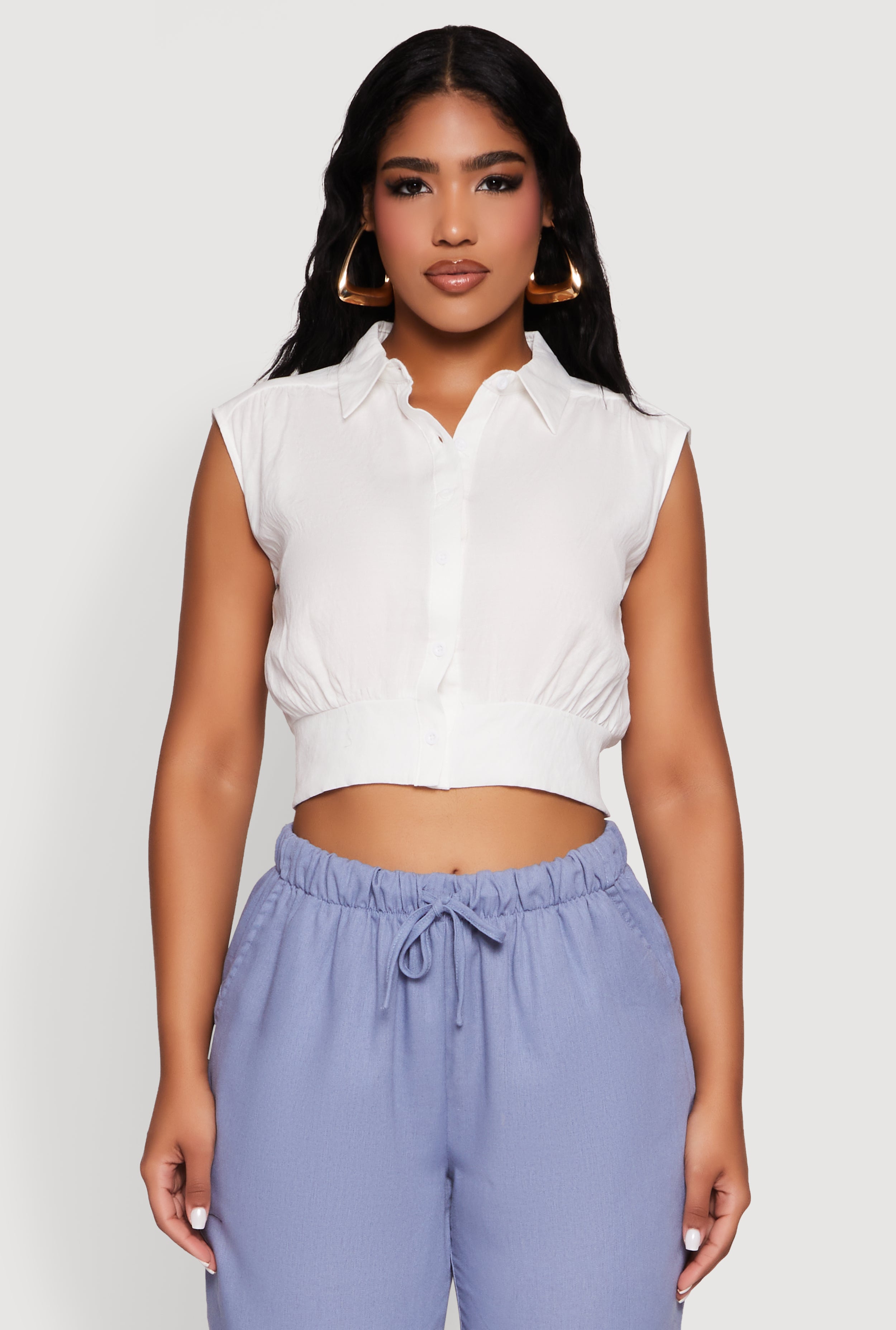 Sleeveless Cropped Button Front Shirt