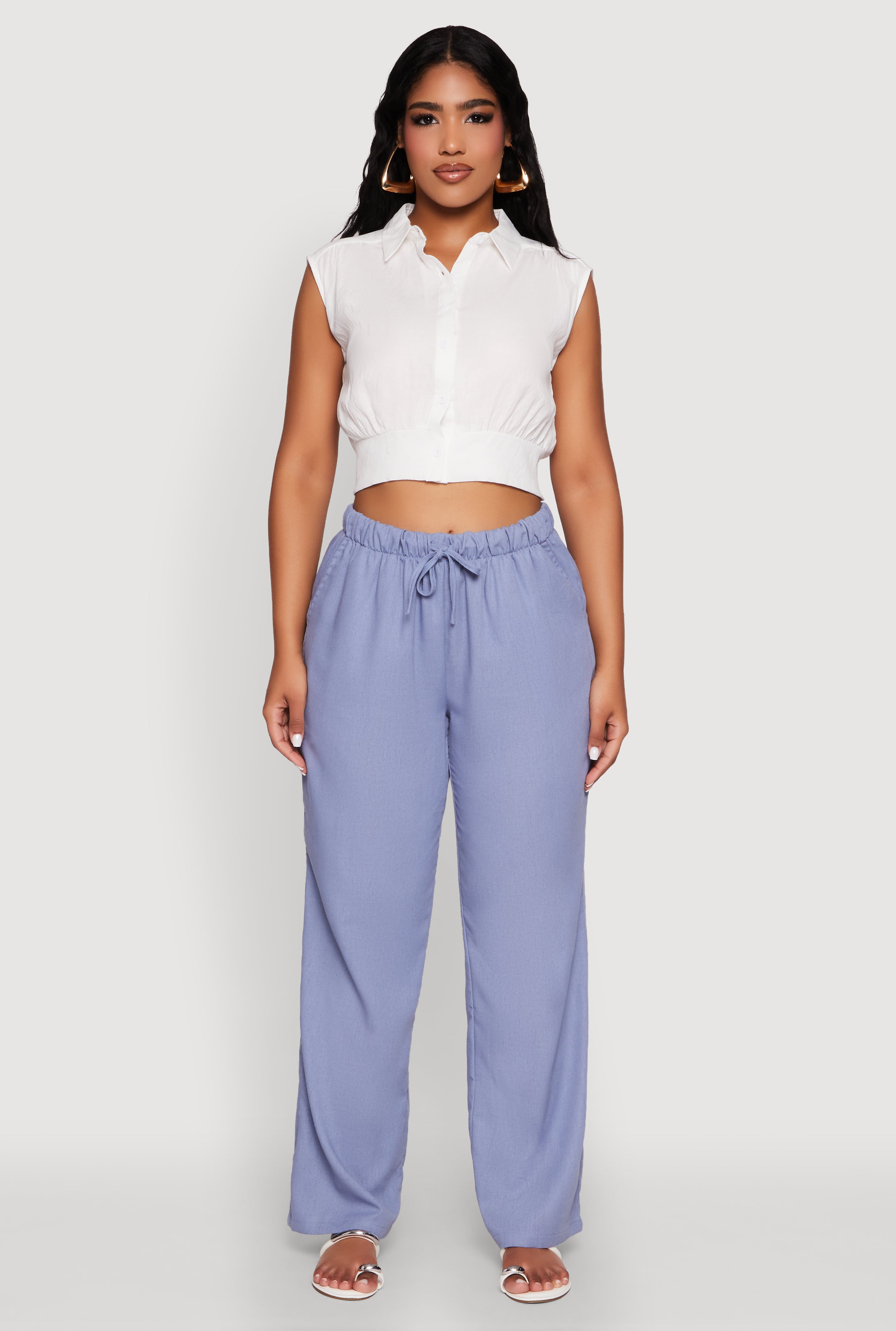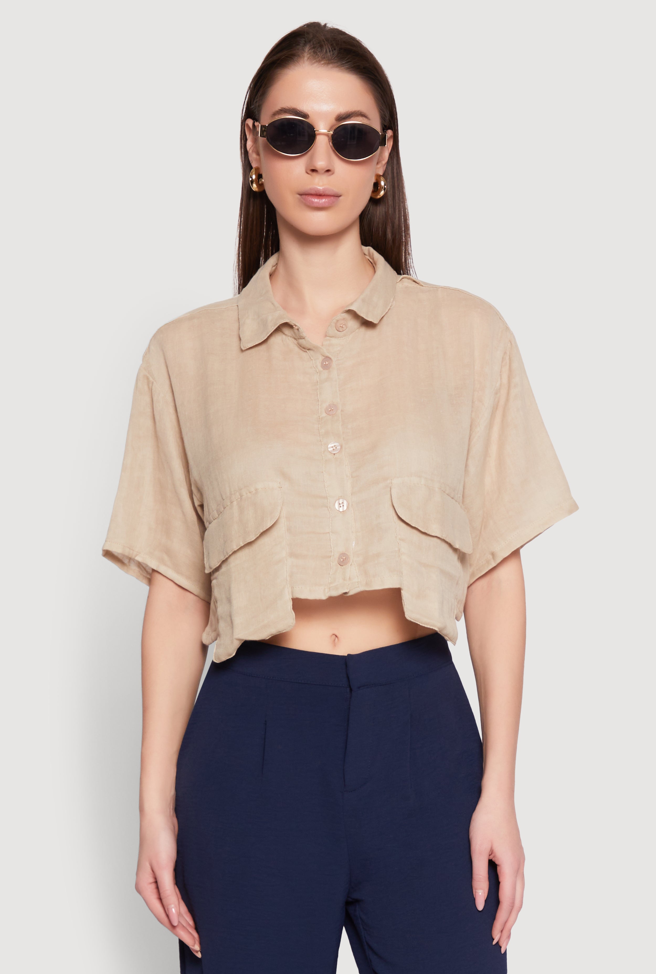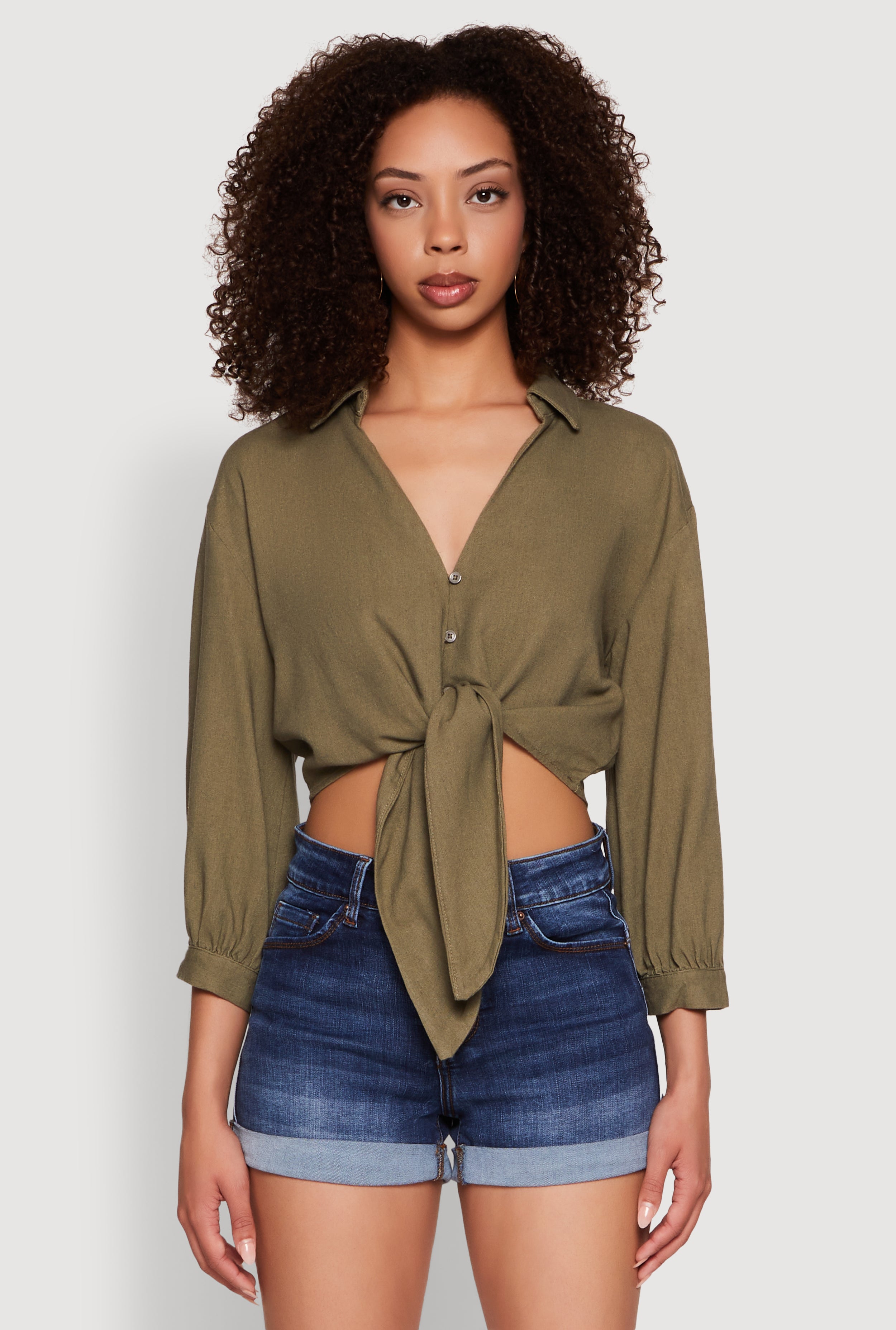 Haute Monde Linen Tie Front Crop Top