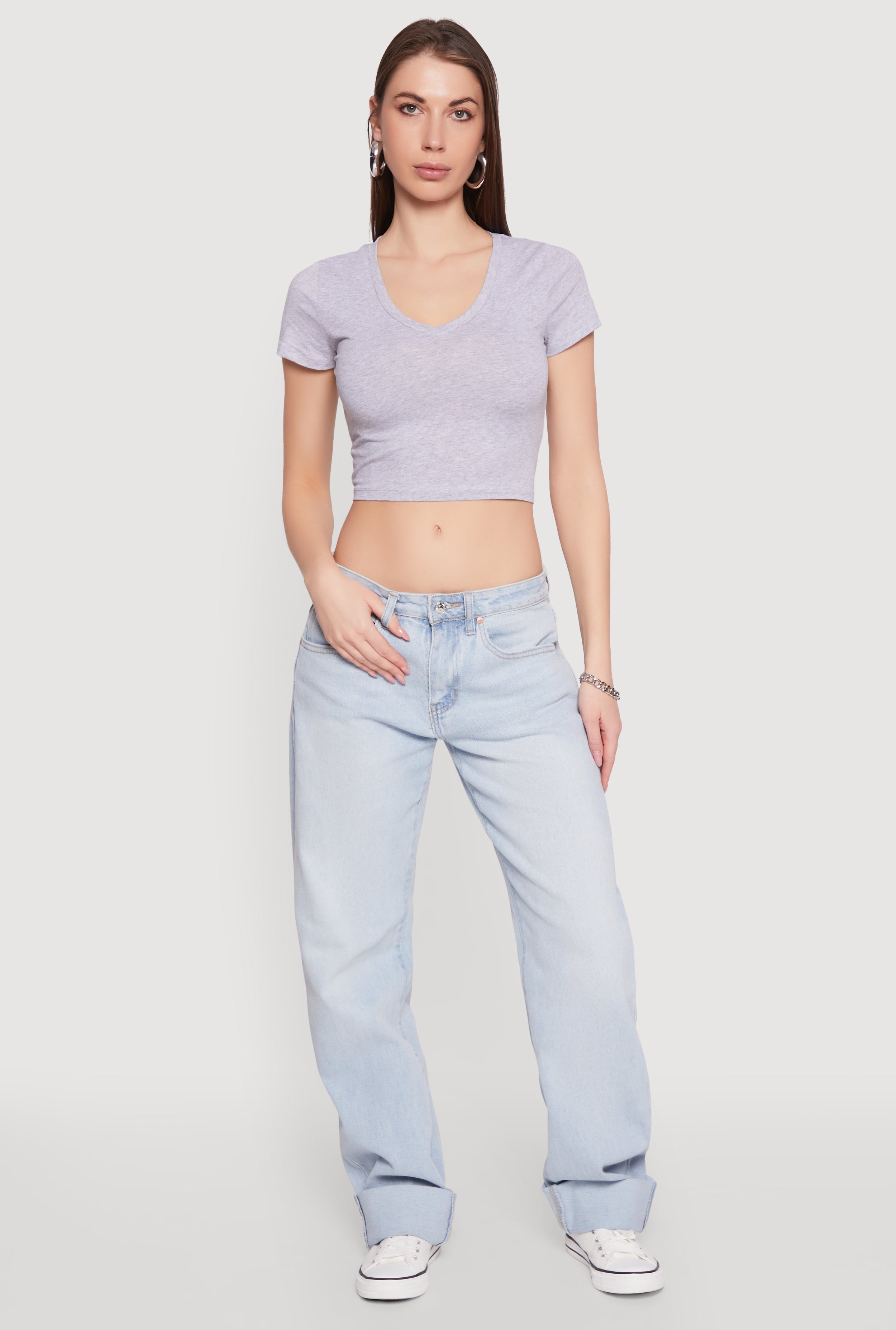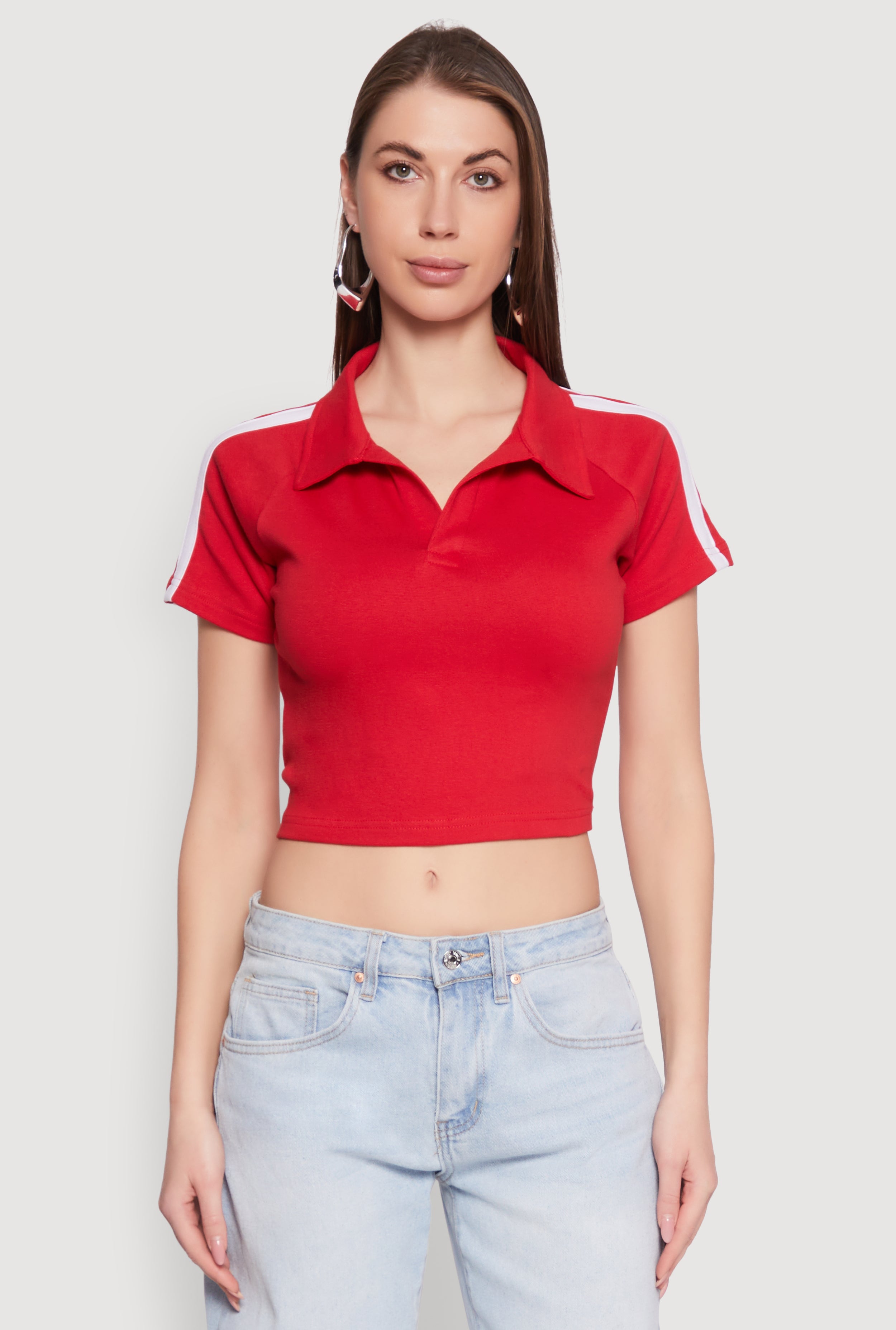 Short Sleeve V Neck Crop Top