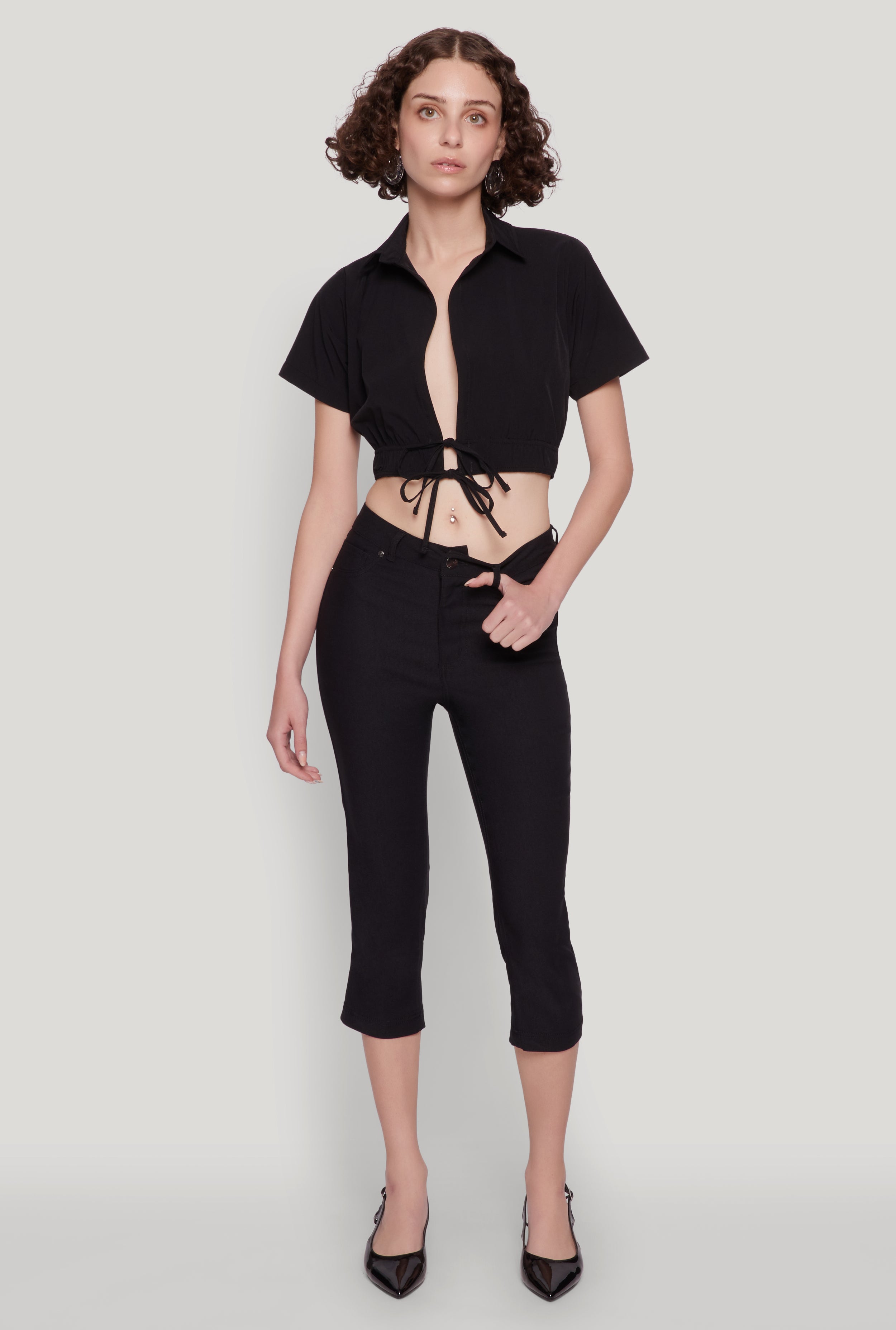 Open Tie Front Cropped Shirt