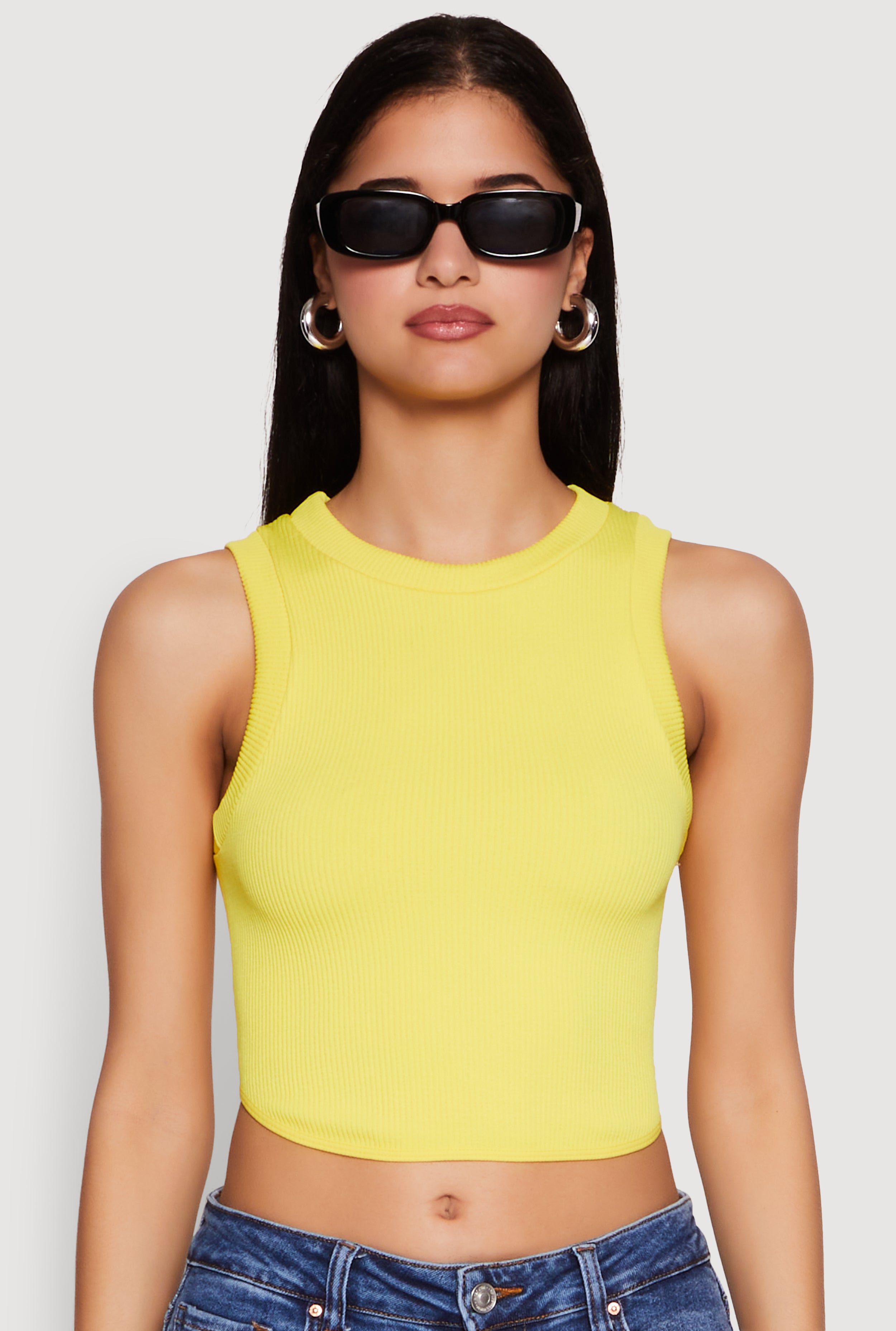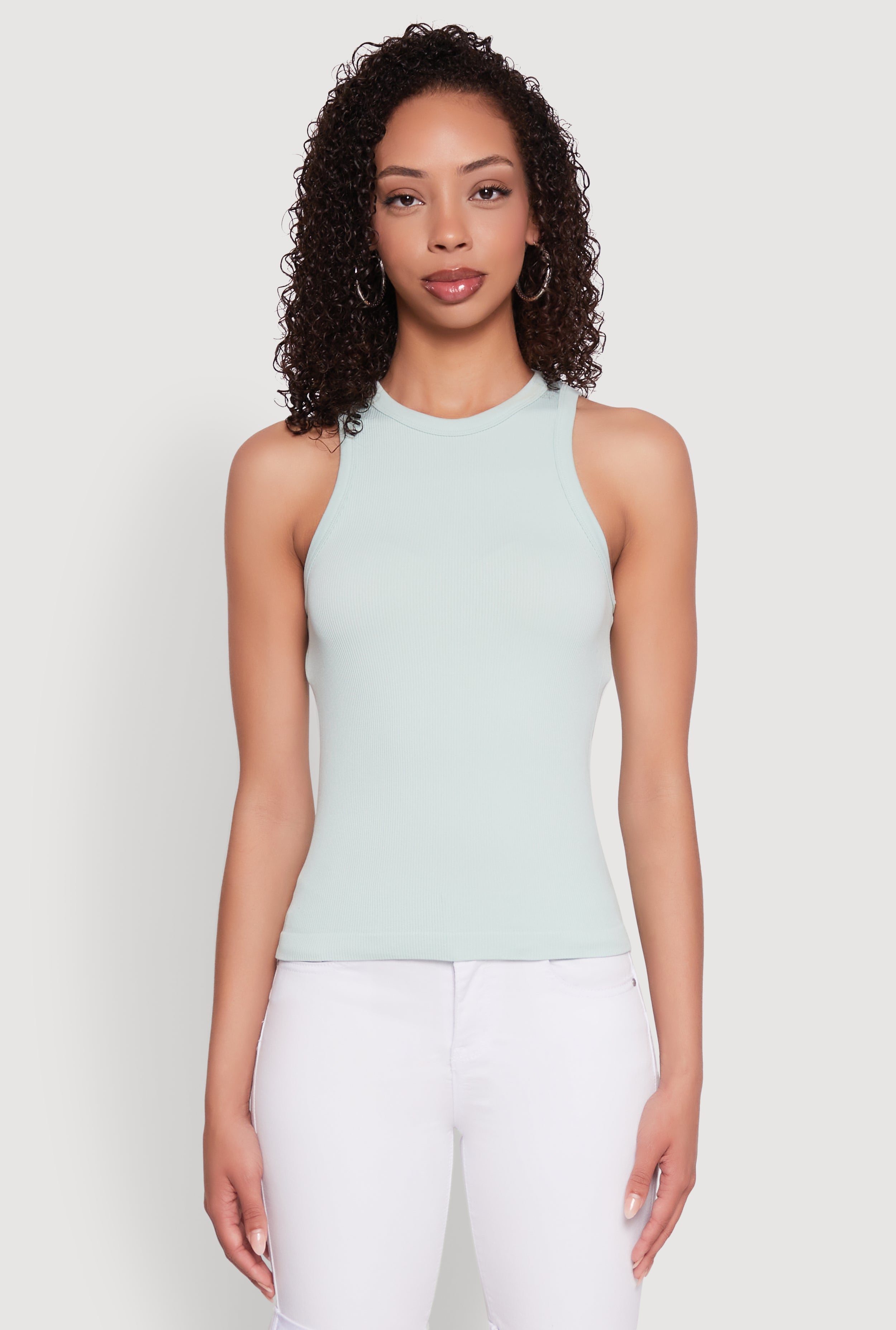 Seamless Rib Knit Crew Neck Tank Top