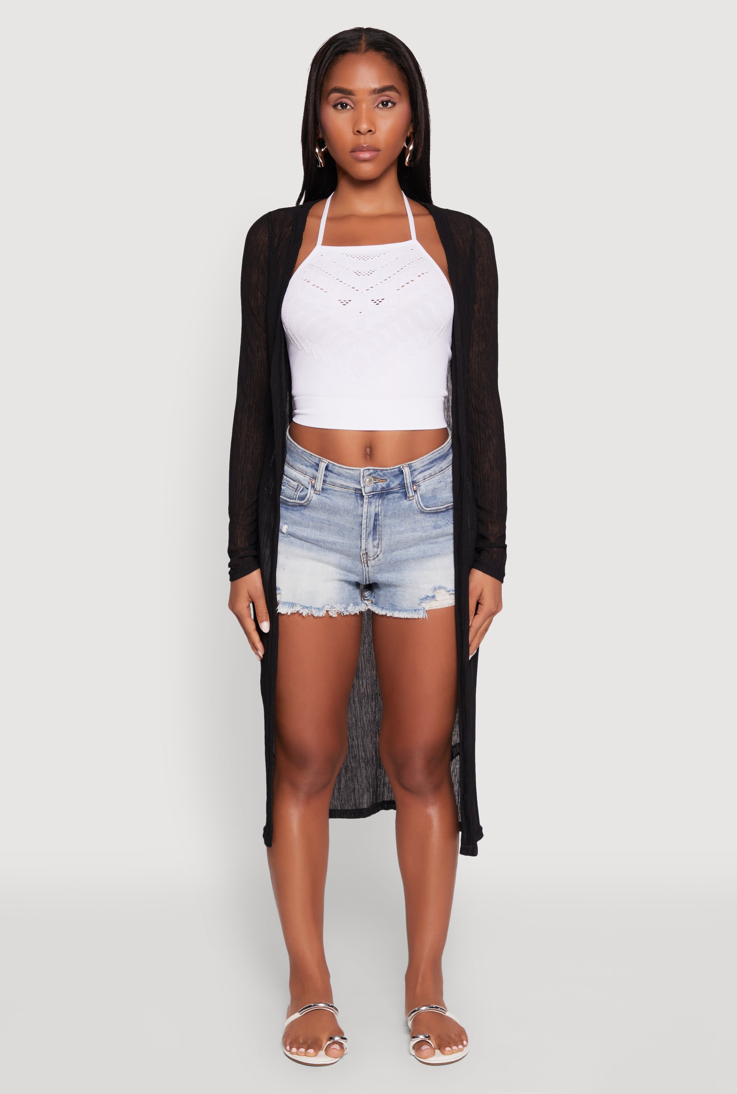 Gauze Knit Long Sleeve Duster