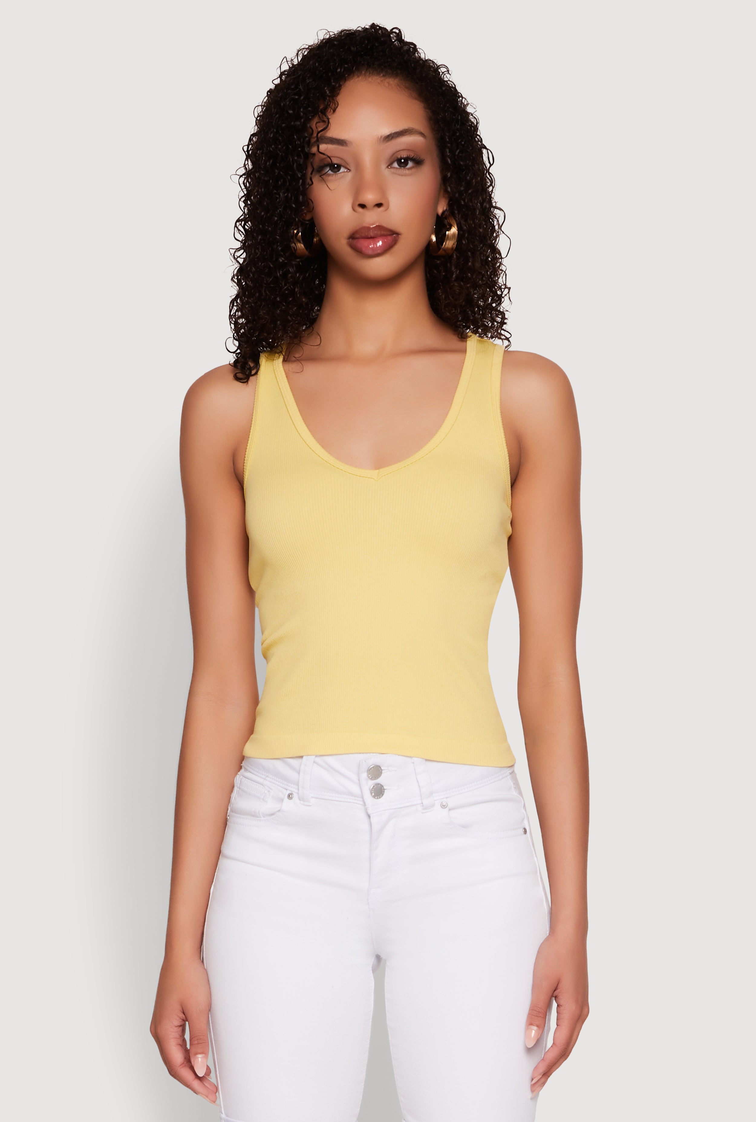 Seamless Ribbed Knit V Neck Tank Top