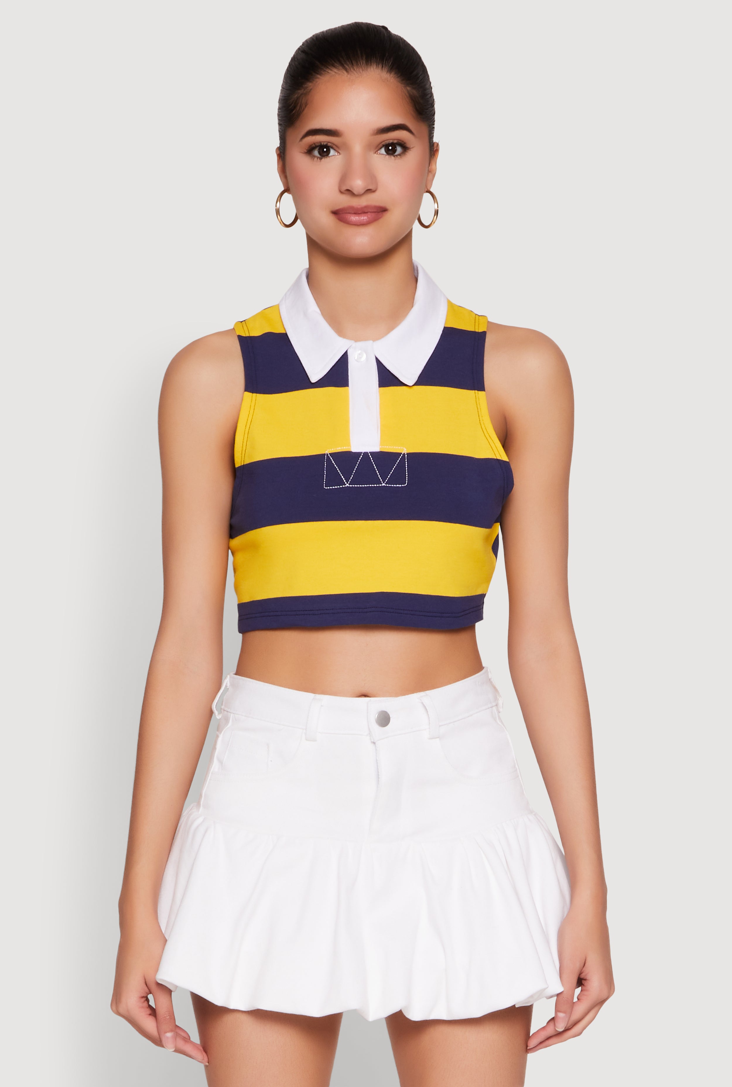 Striped Sleeveless Cropped Polo
