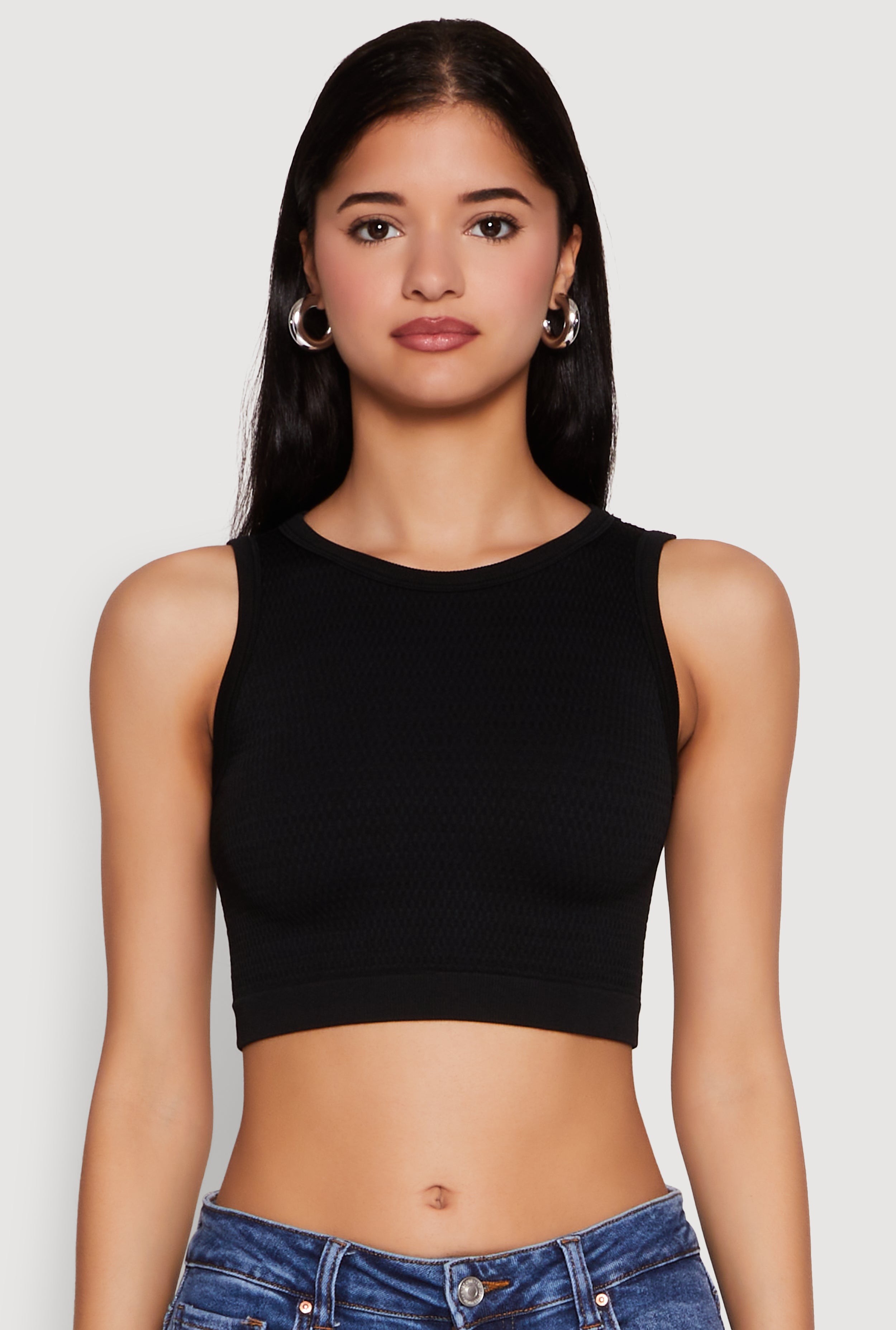 Textured Knit Seamless Cropped Tank Top