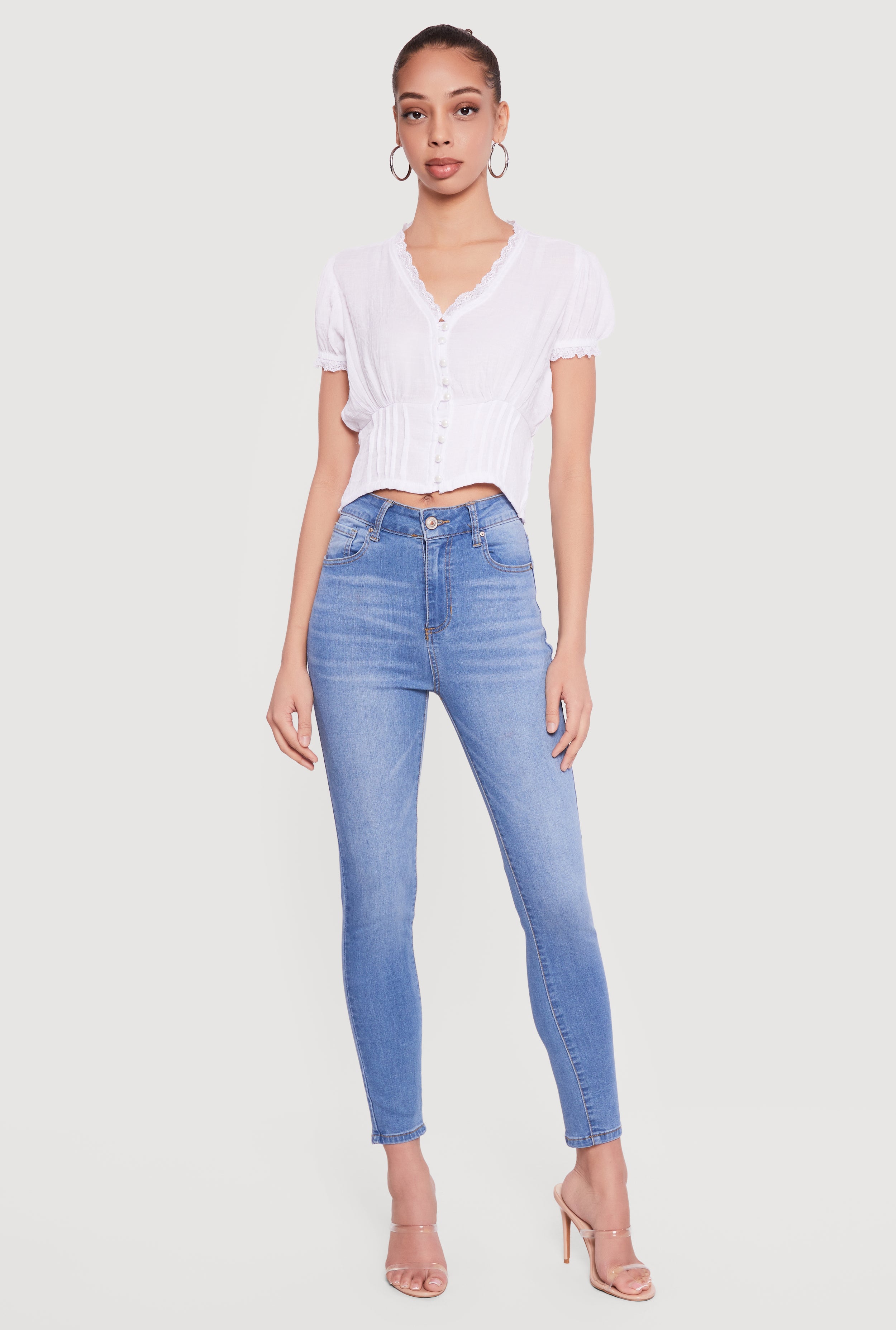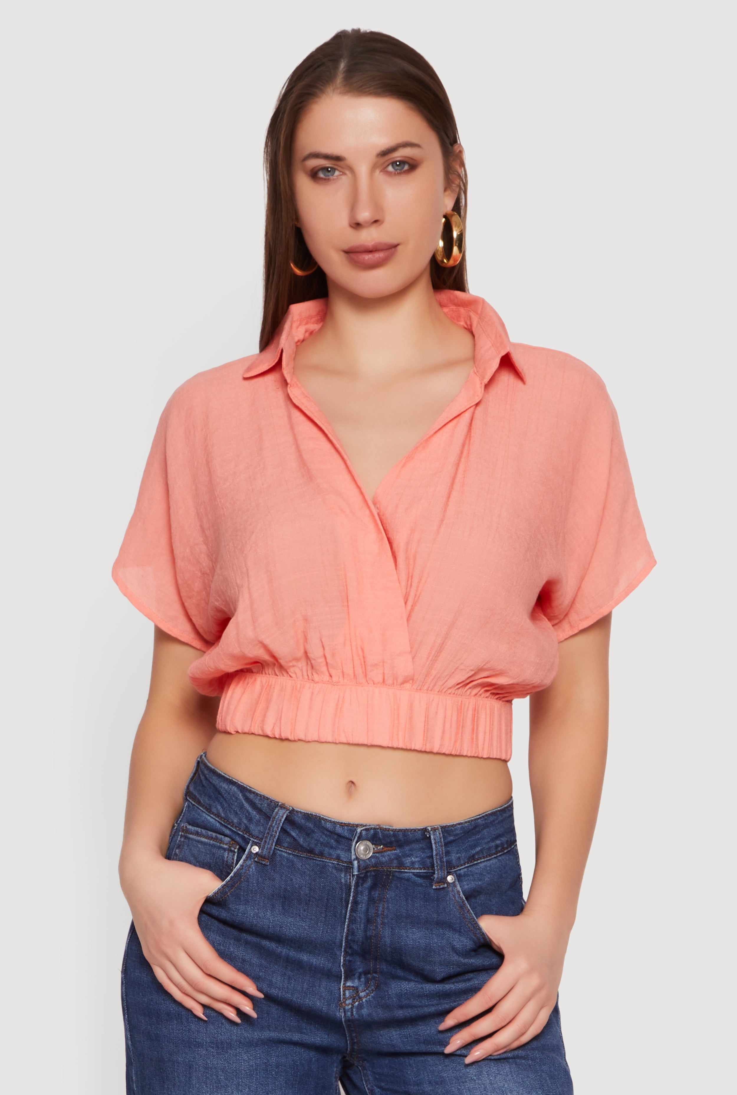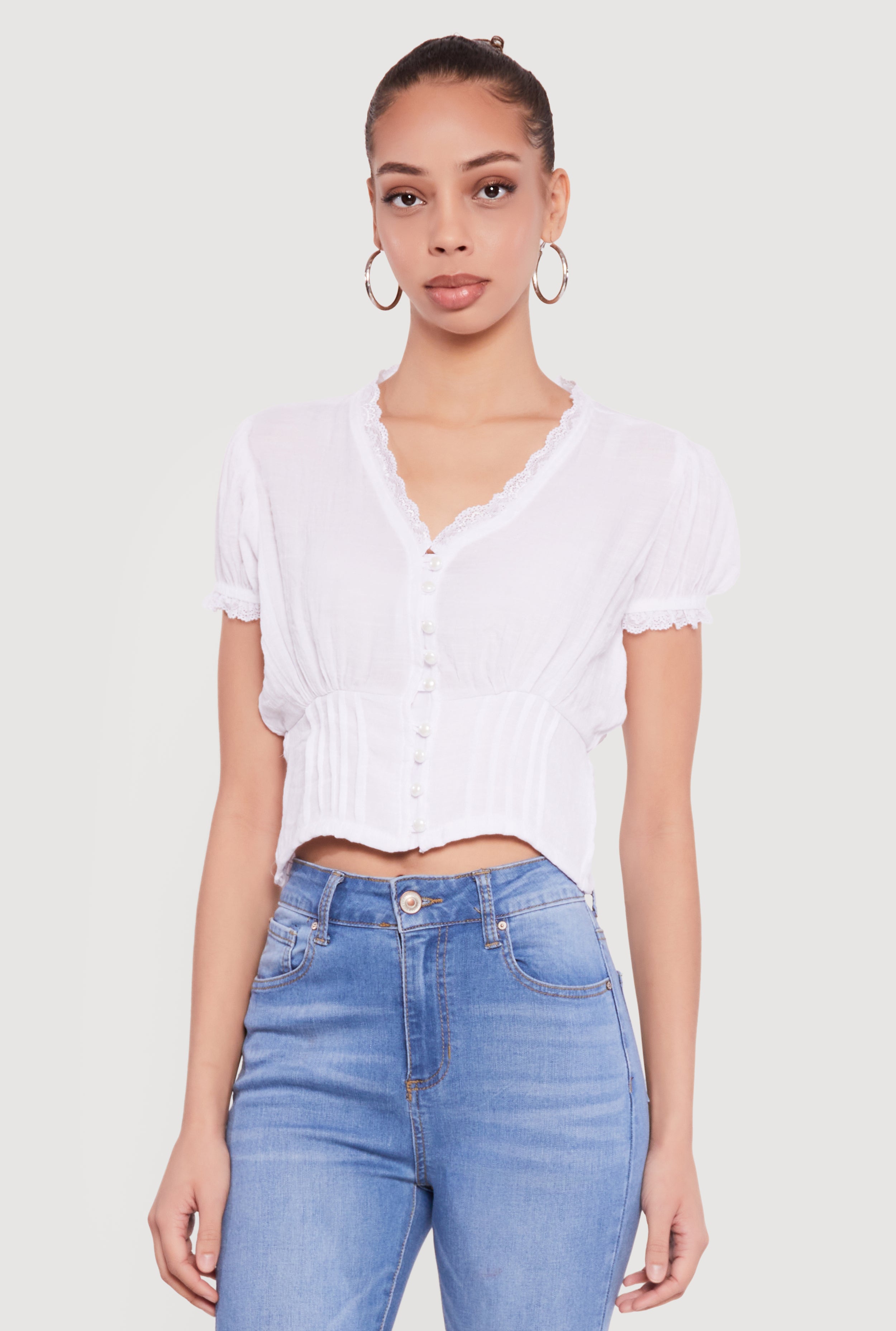 Puff Sleeve Cropped Button Front Blouse