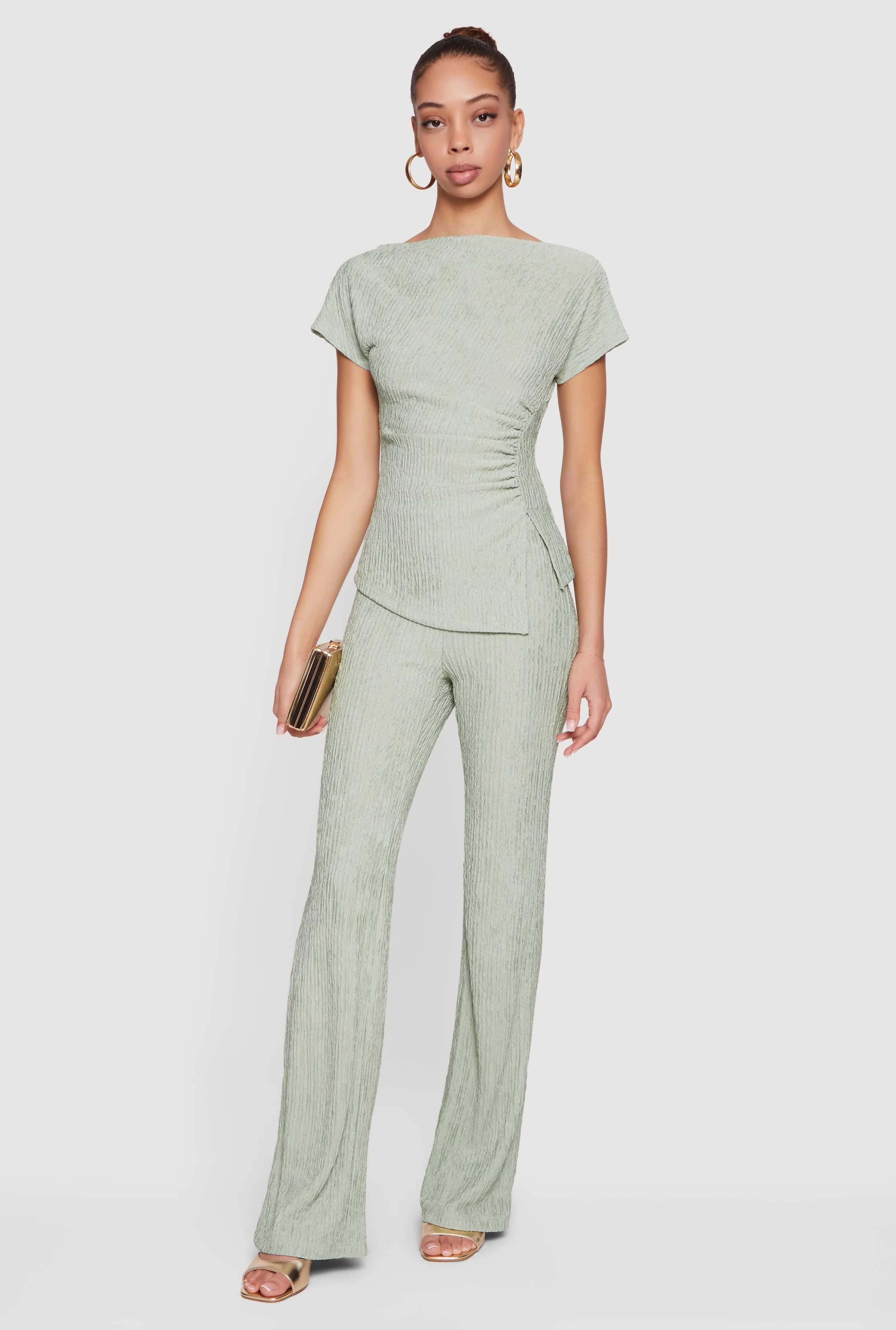 Ribbed Knit Ruched Mock Neck Crop Top