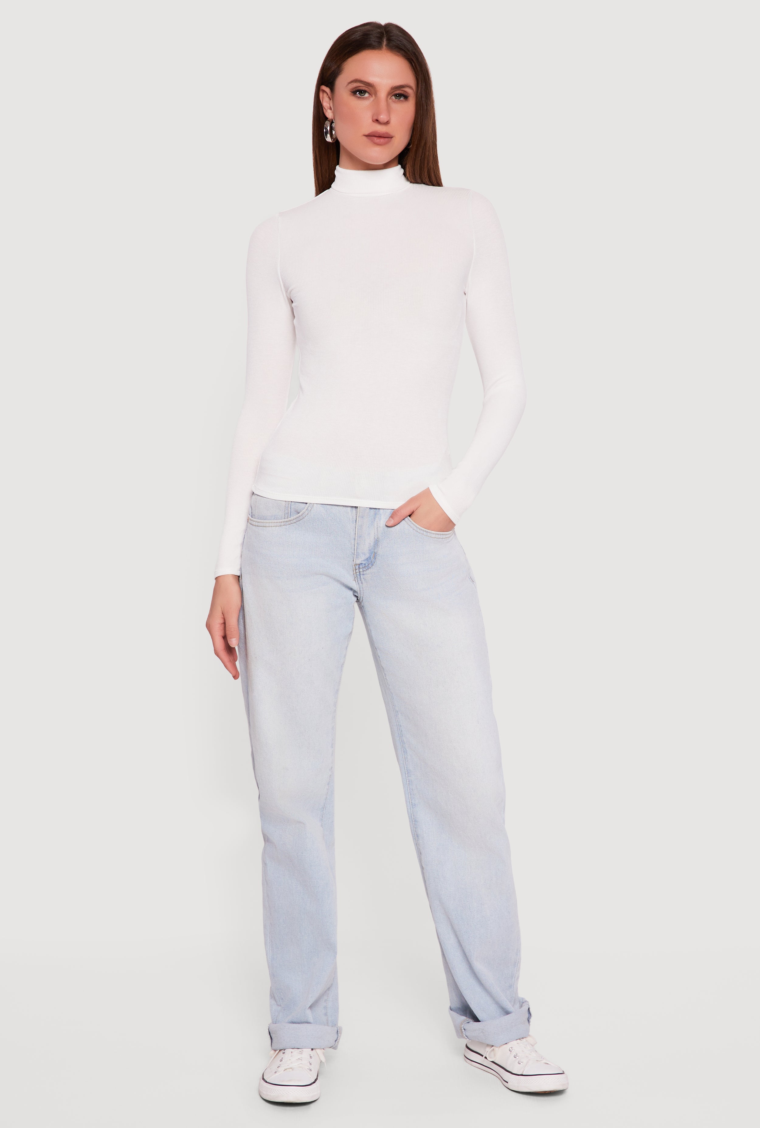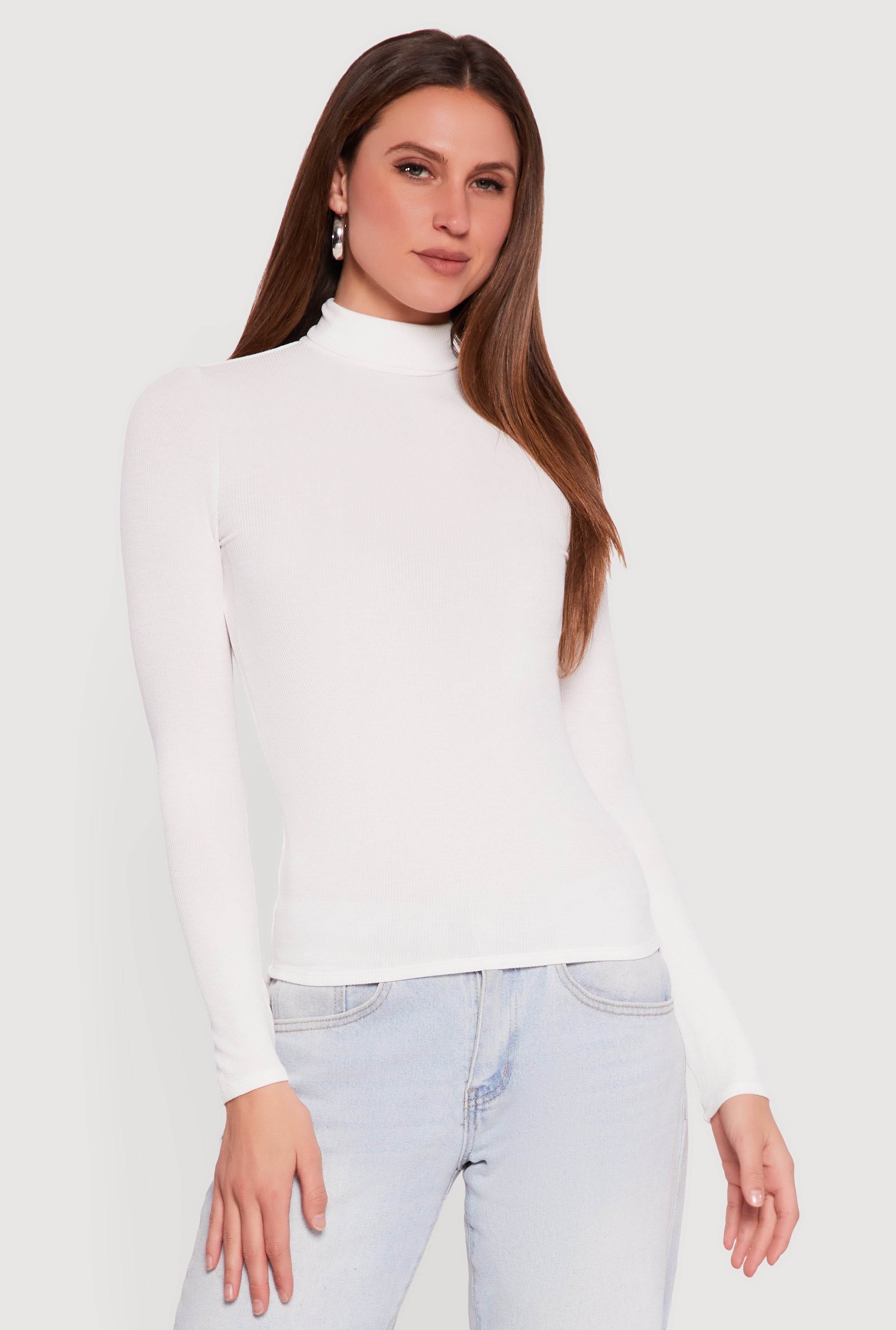 Ribbed Knit Turtleneck Long Sleeve Top