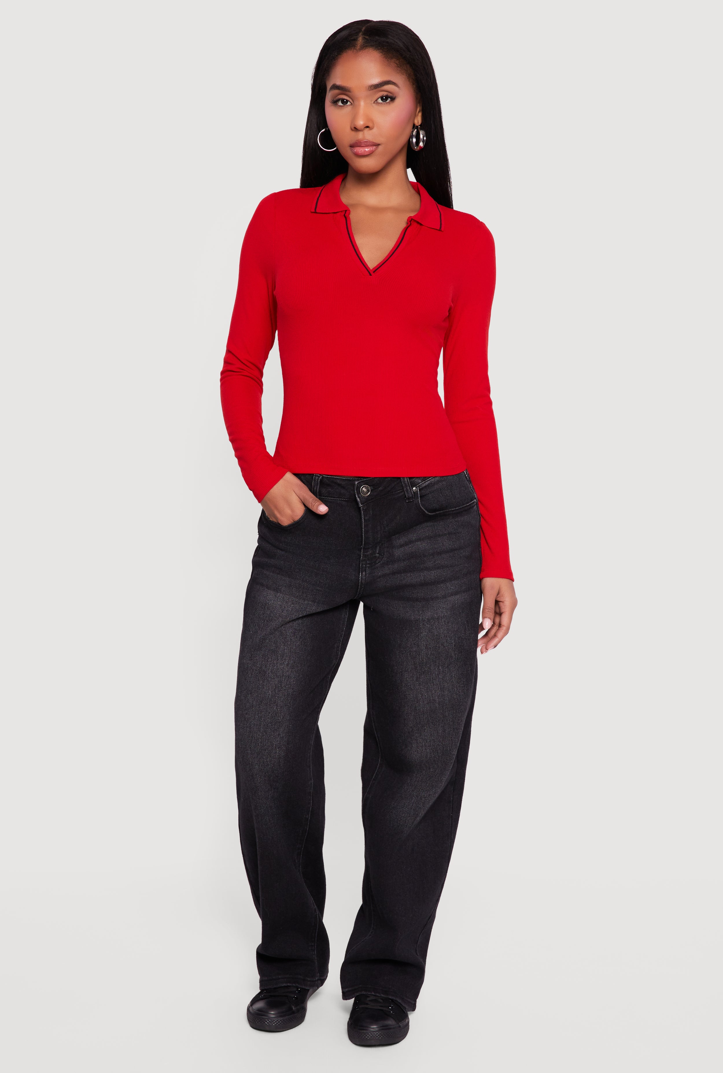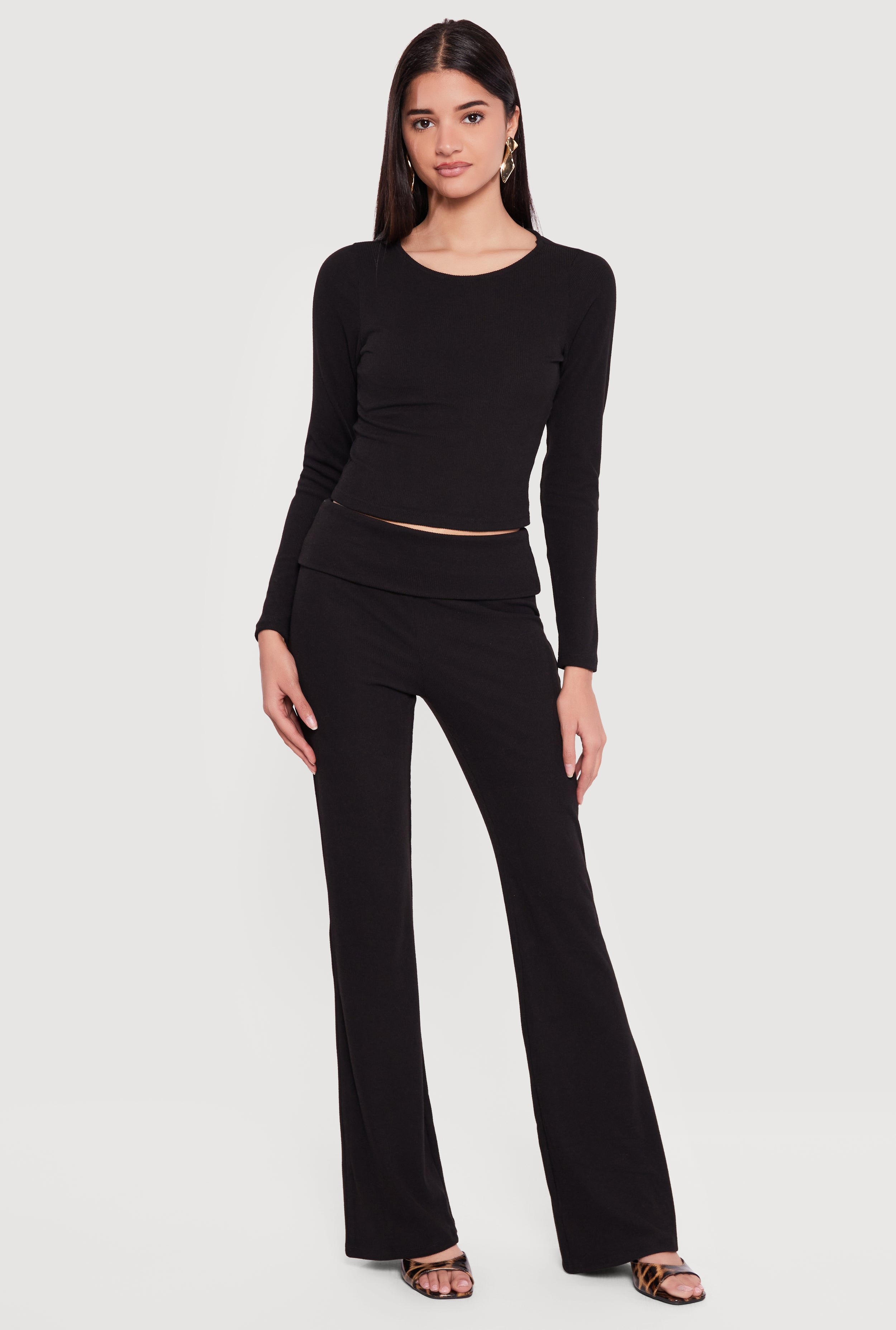 Rib Knit Long Sleeve Crew Neck Crop Top