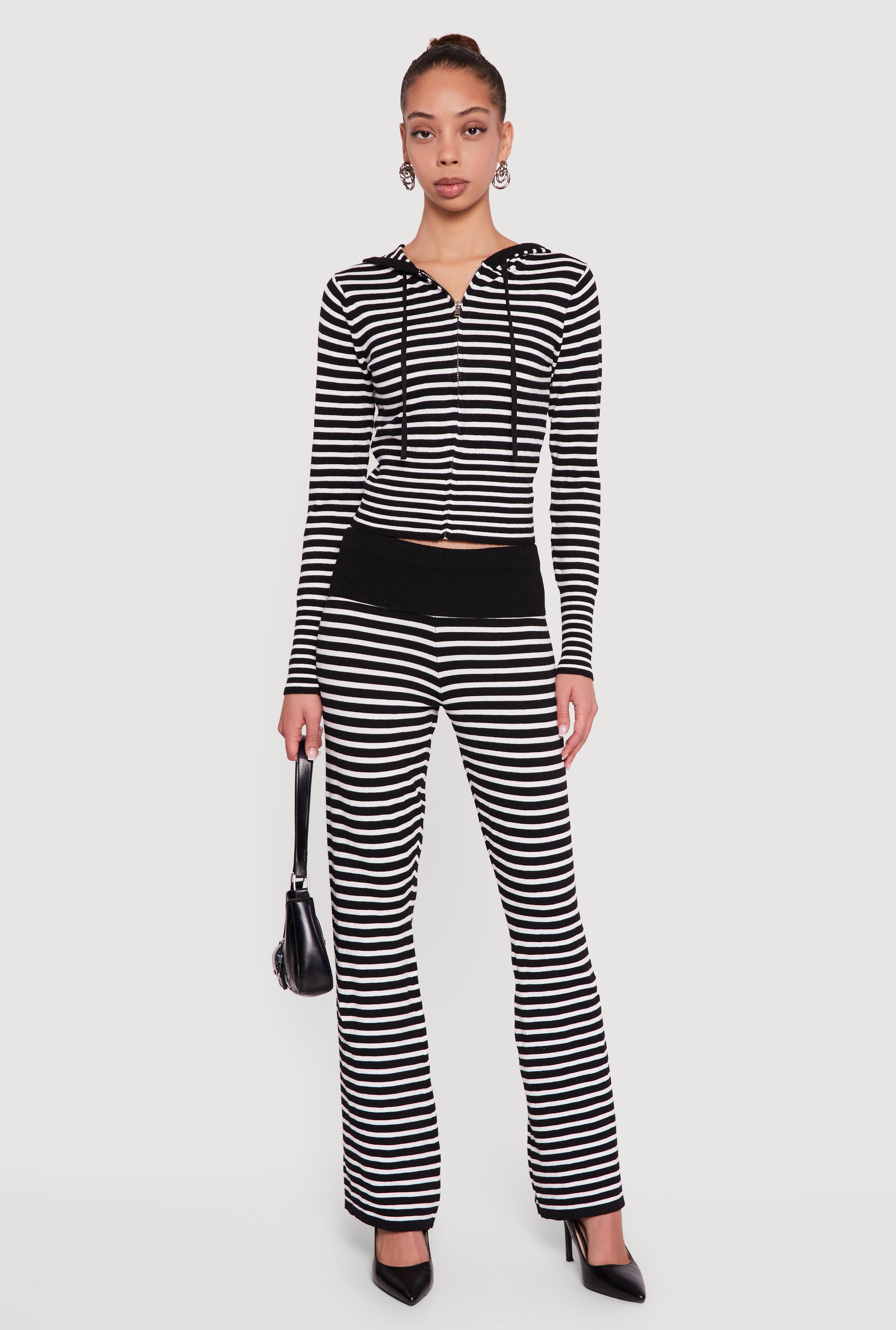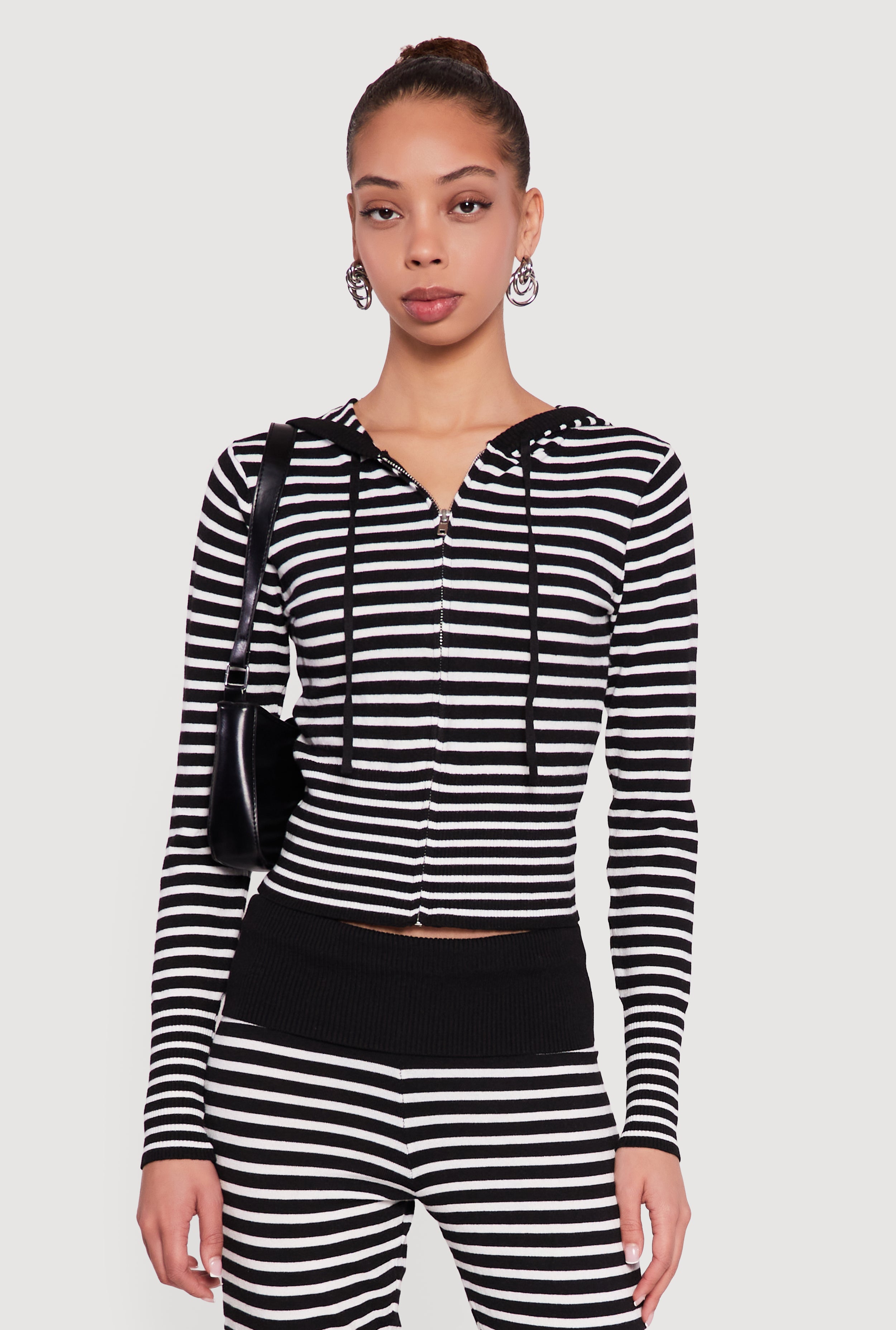 Almost Famous Striped Zip Front Hoodie