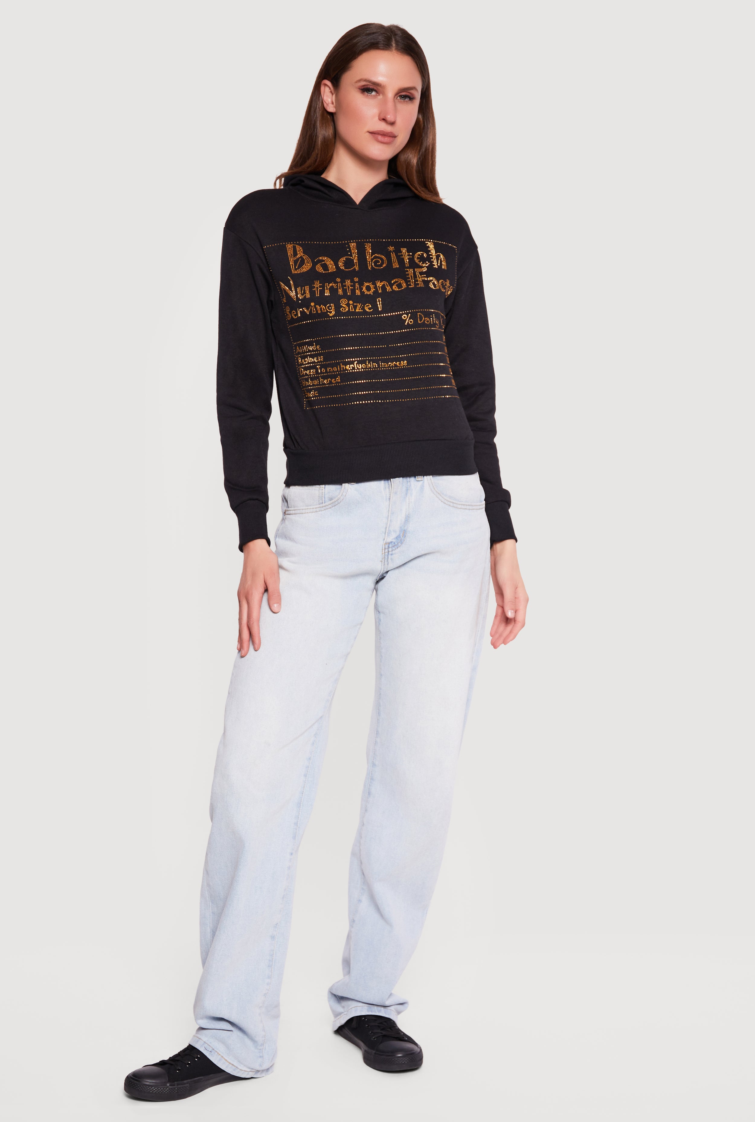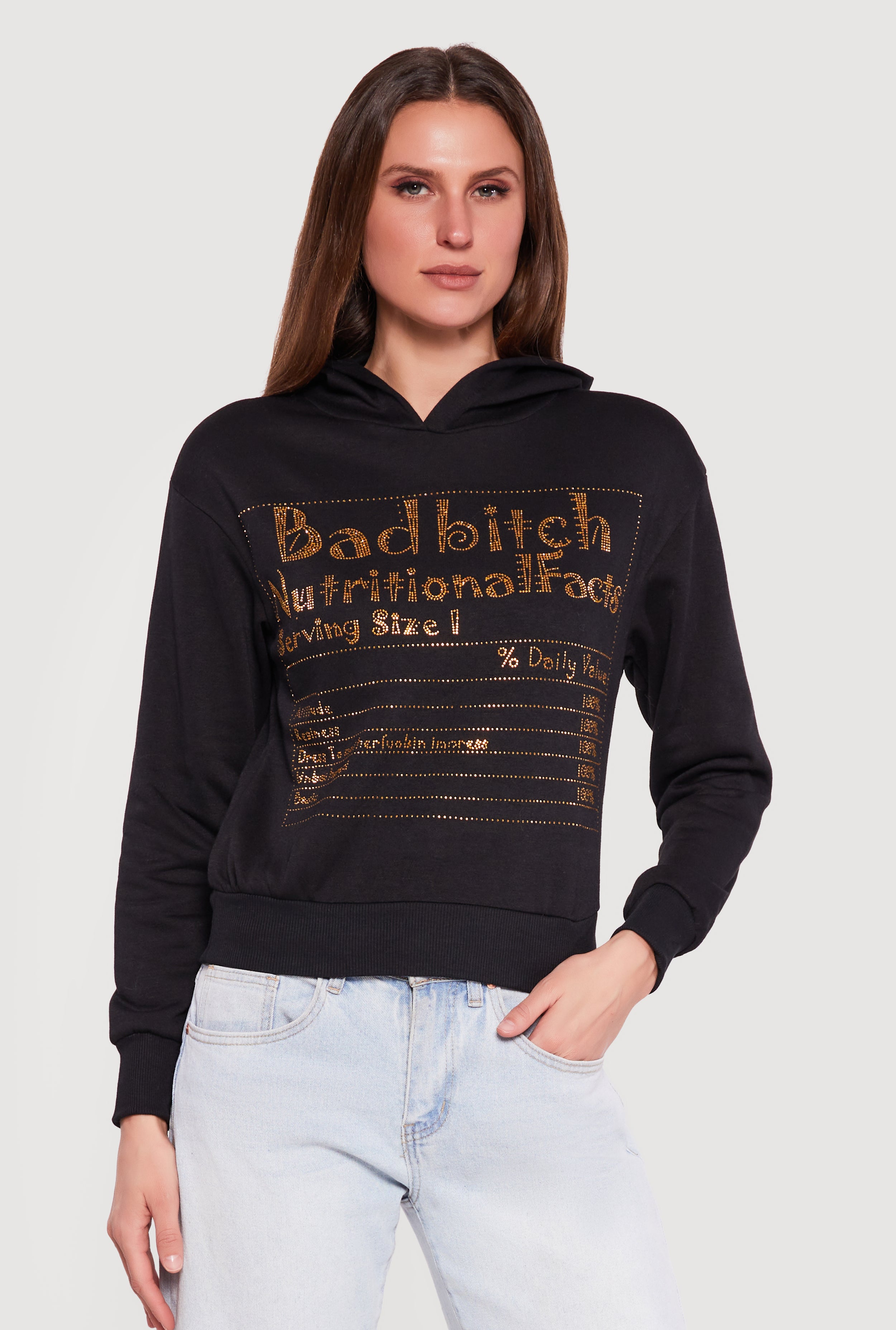 Bad Bitch Nutritional Facts Rhinestone Studded Hoodie