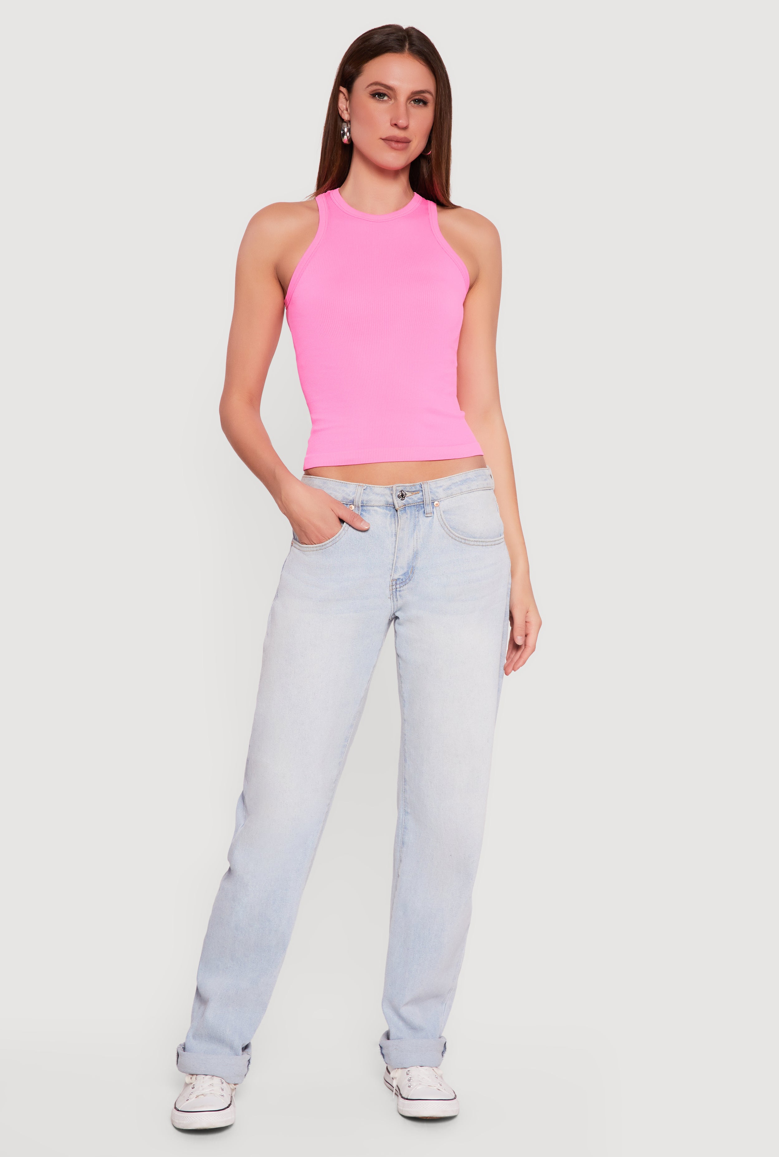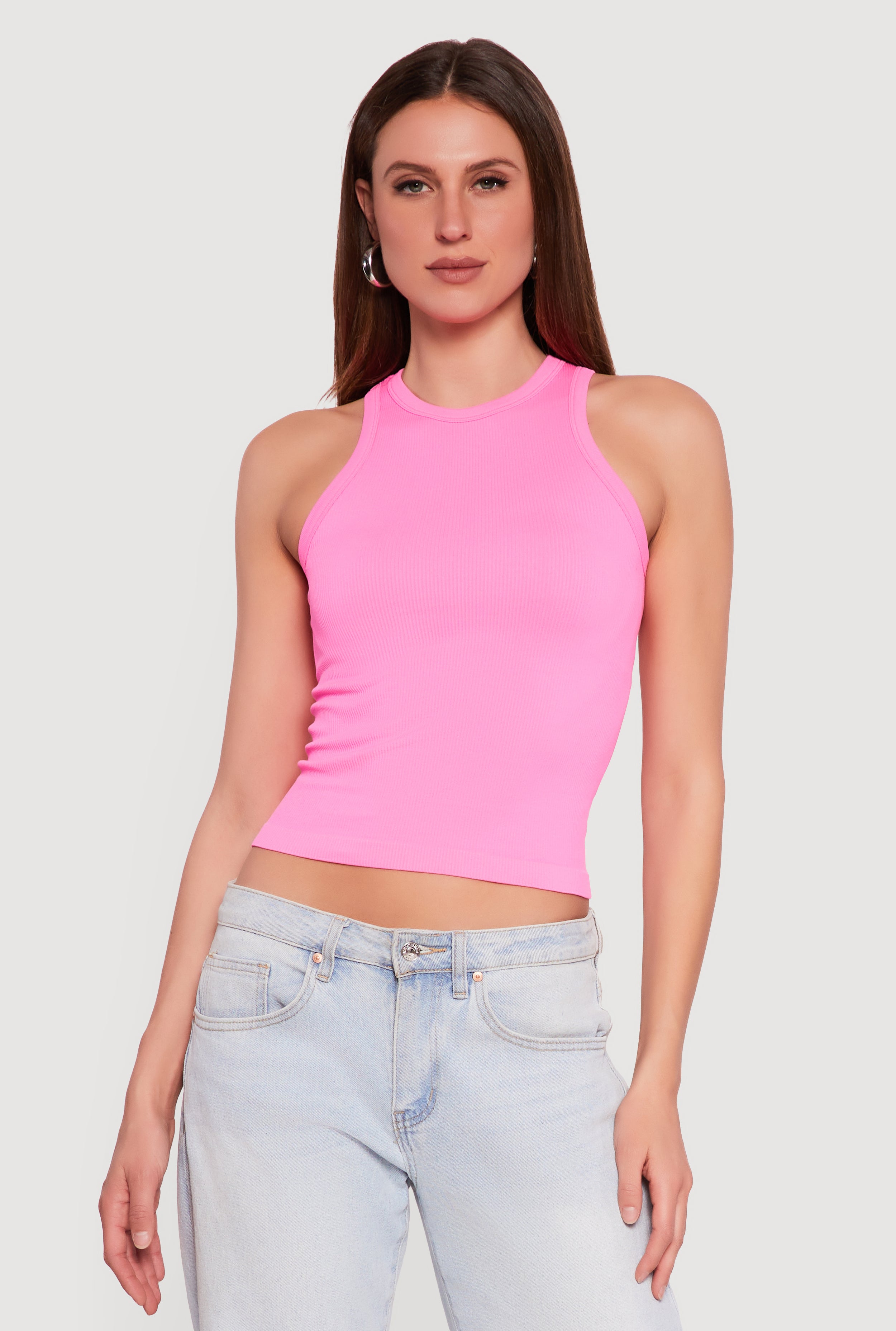 Seamless Rib Knit Cropped Racerback Tank Top