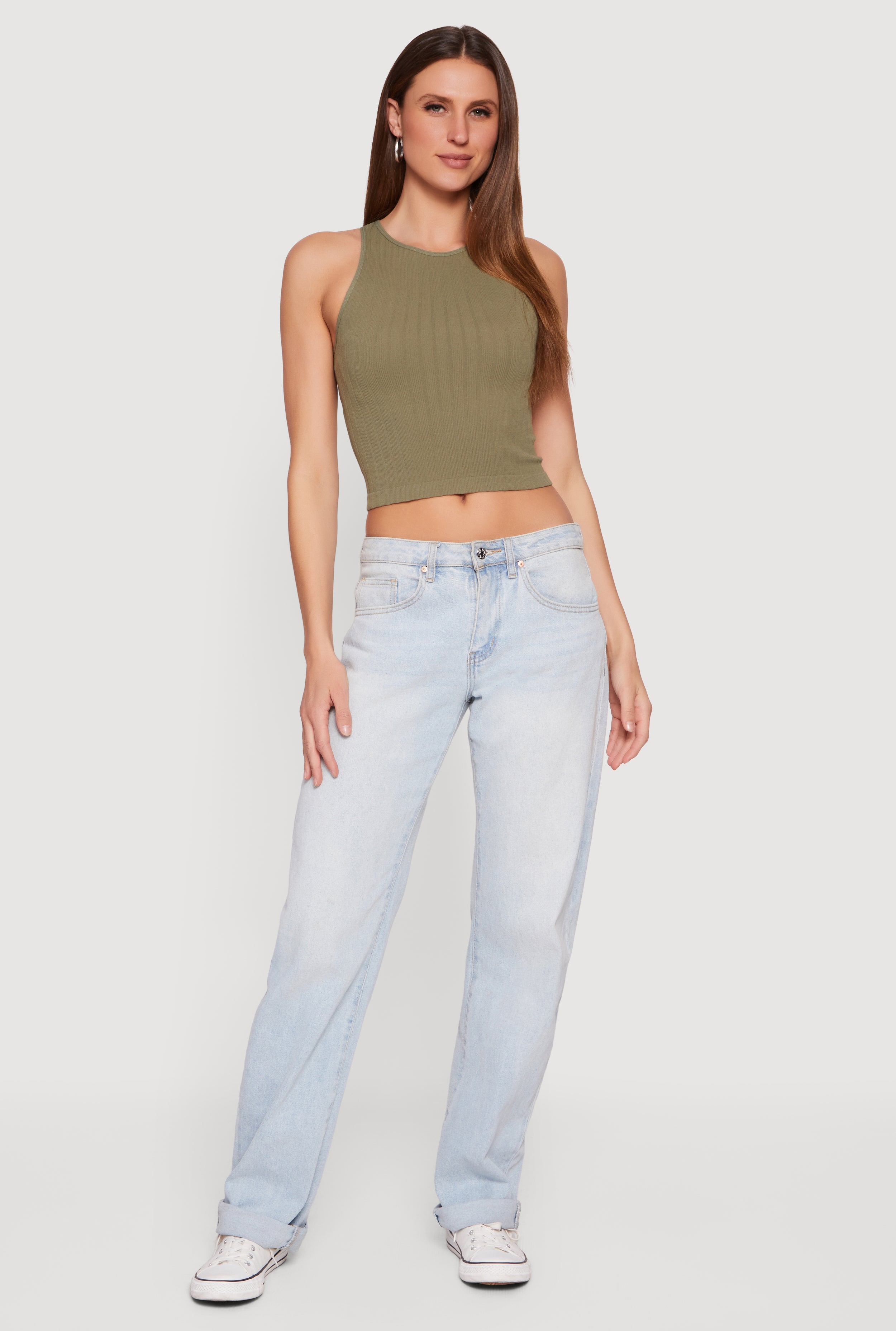 Ribbed Knit Seamless Cropped Tank Top