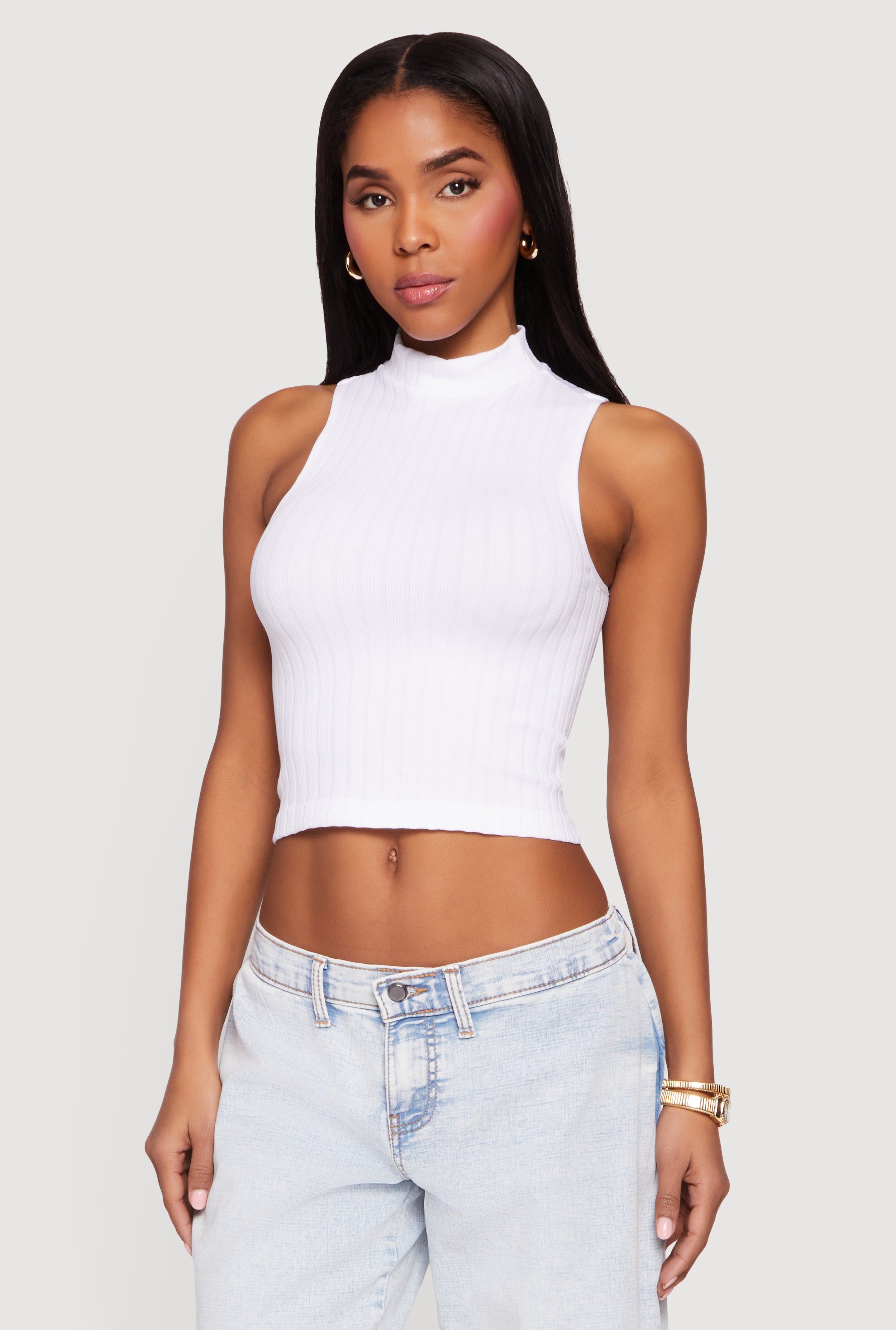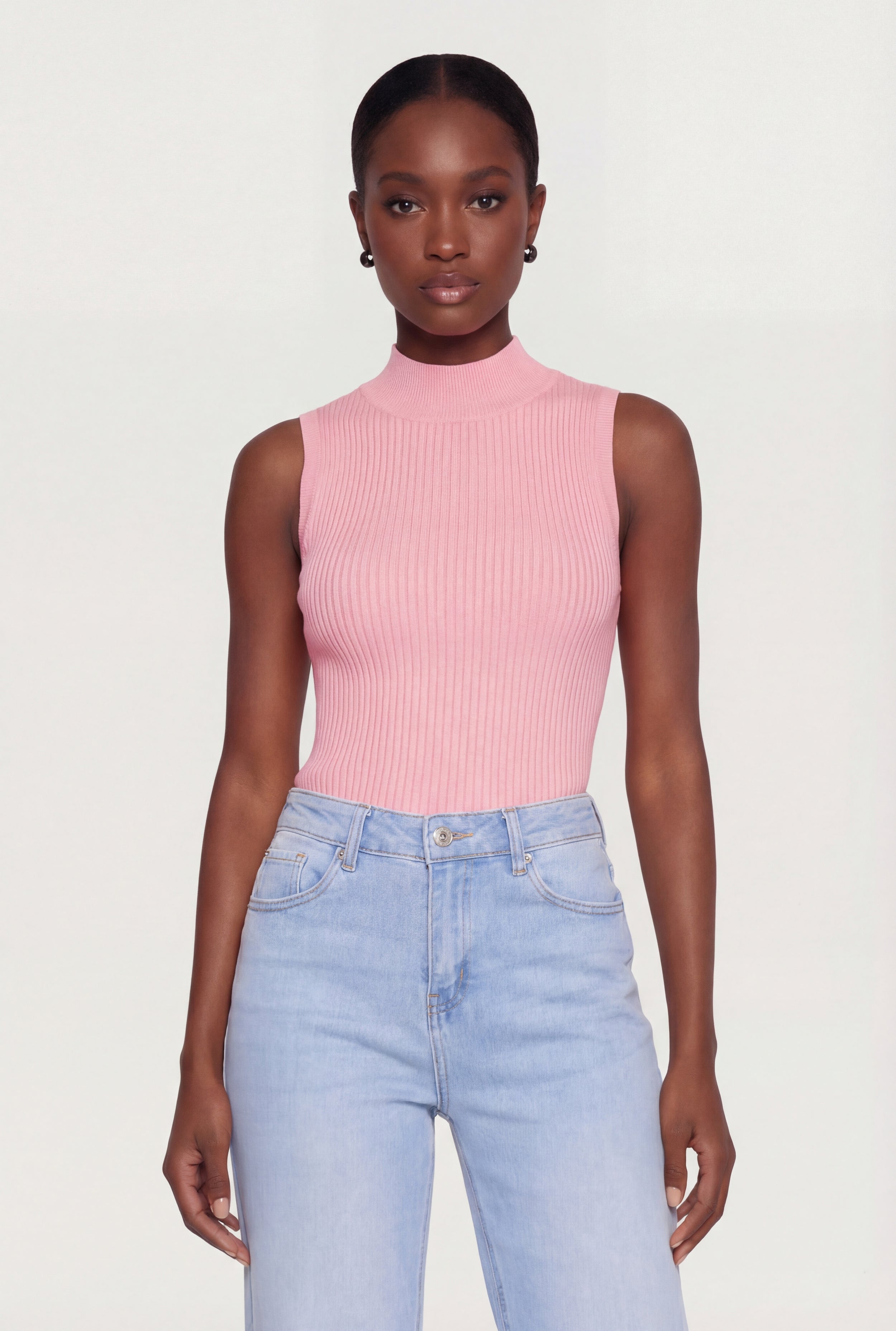 Ribbed Knit Sleeveless Mock Neck Top