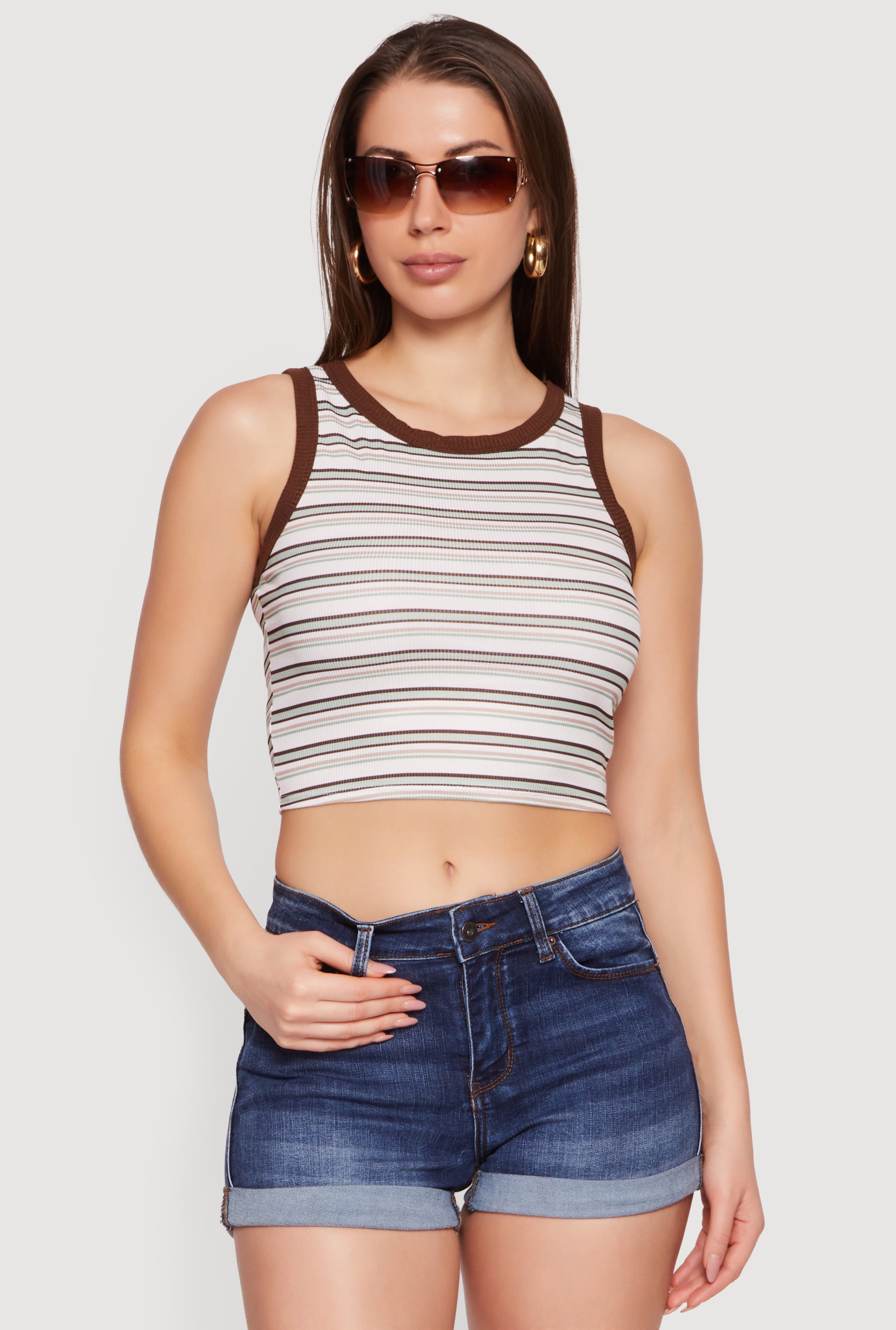 Striped Ribbed Knit Cropped Tank Top