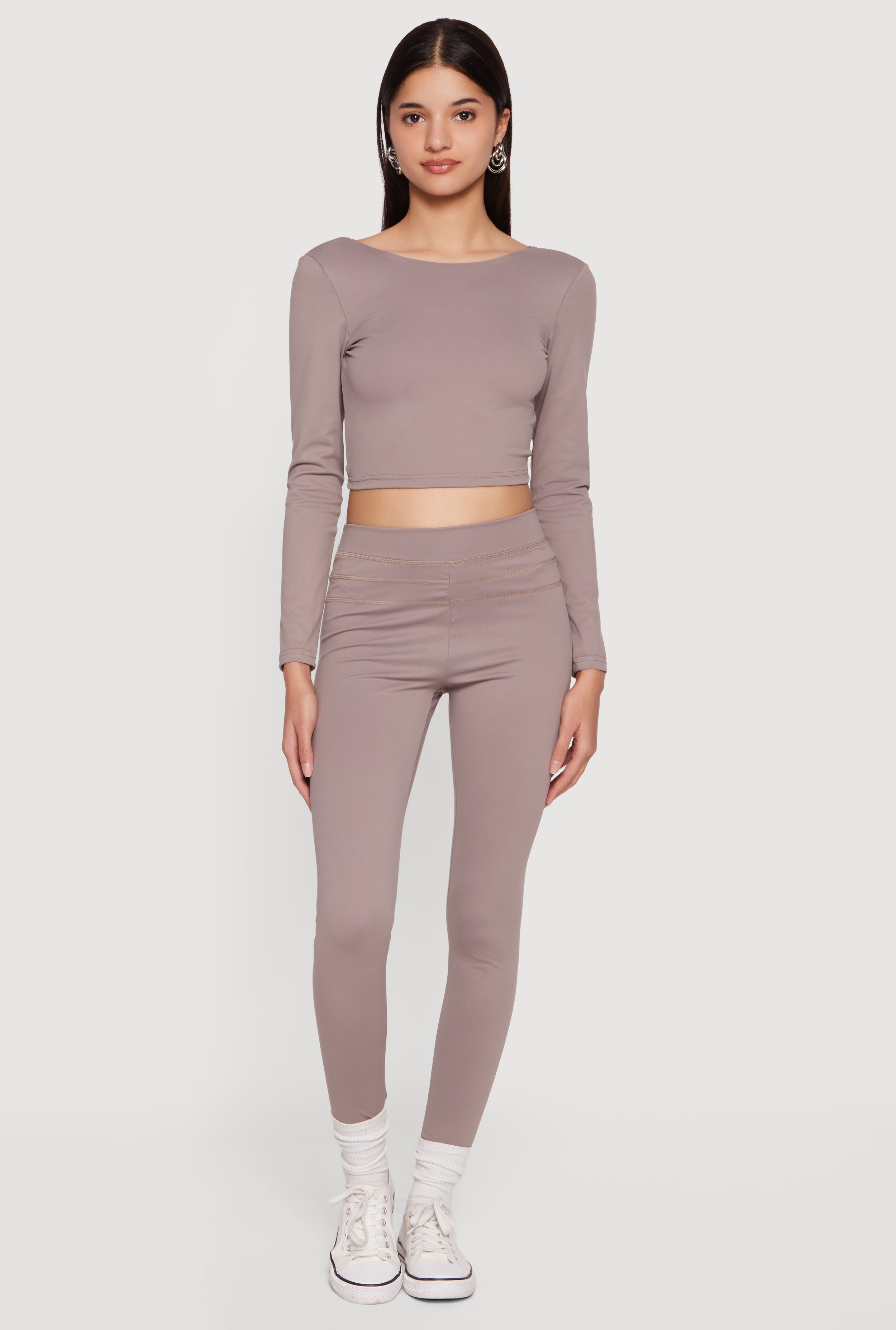 Long Sleeve Scoop Neck Lace Up Front Crop Top