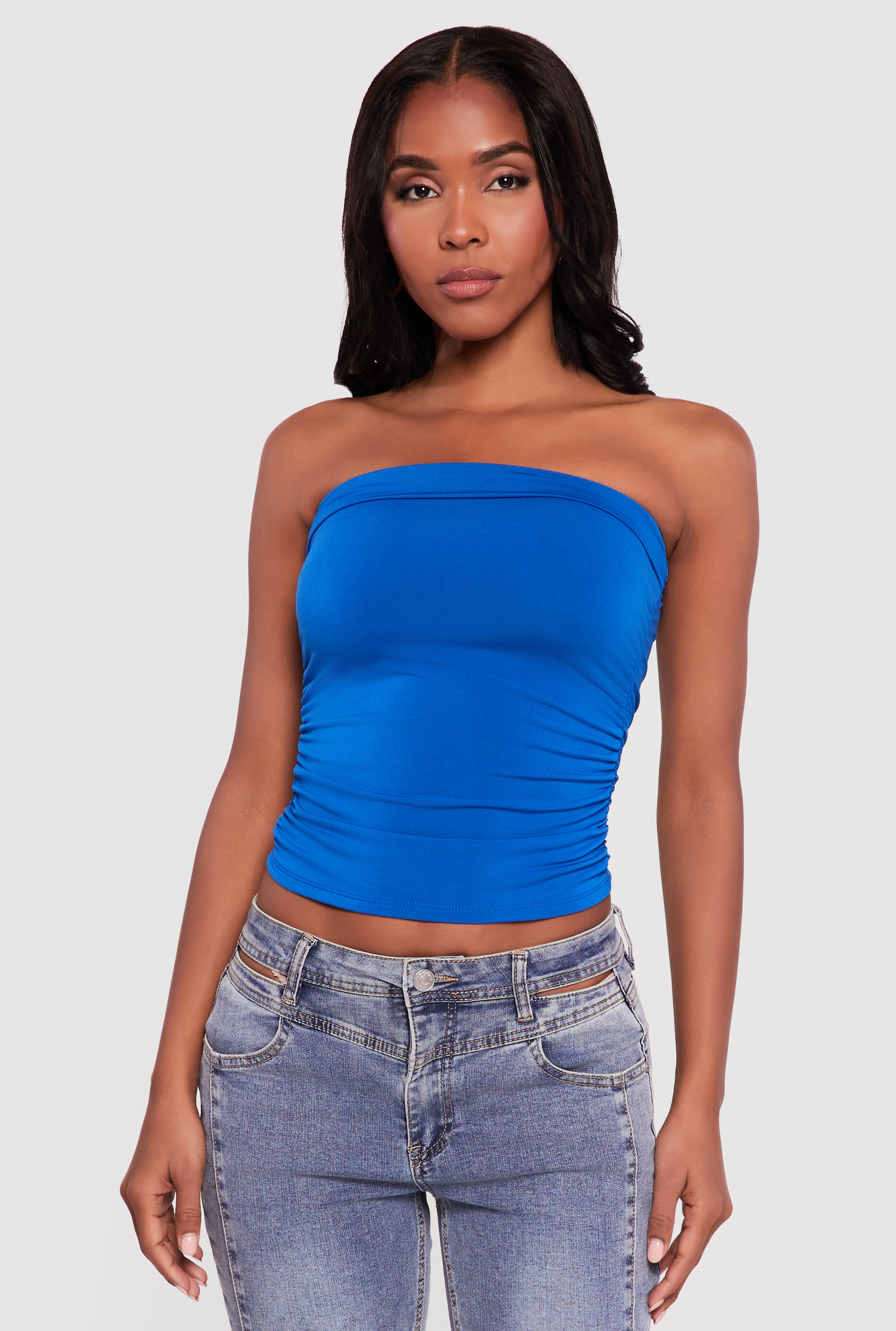Solid Cropped Ruched Side Tube Top