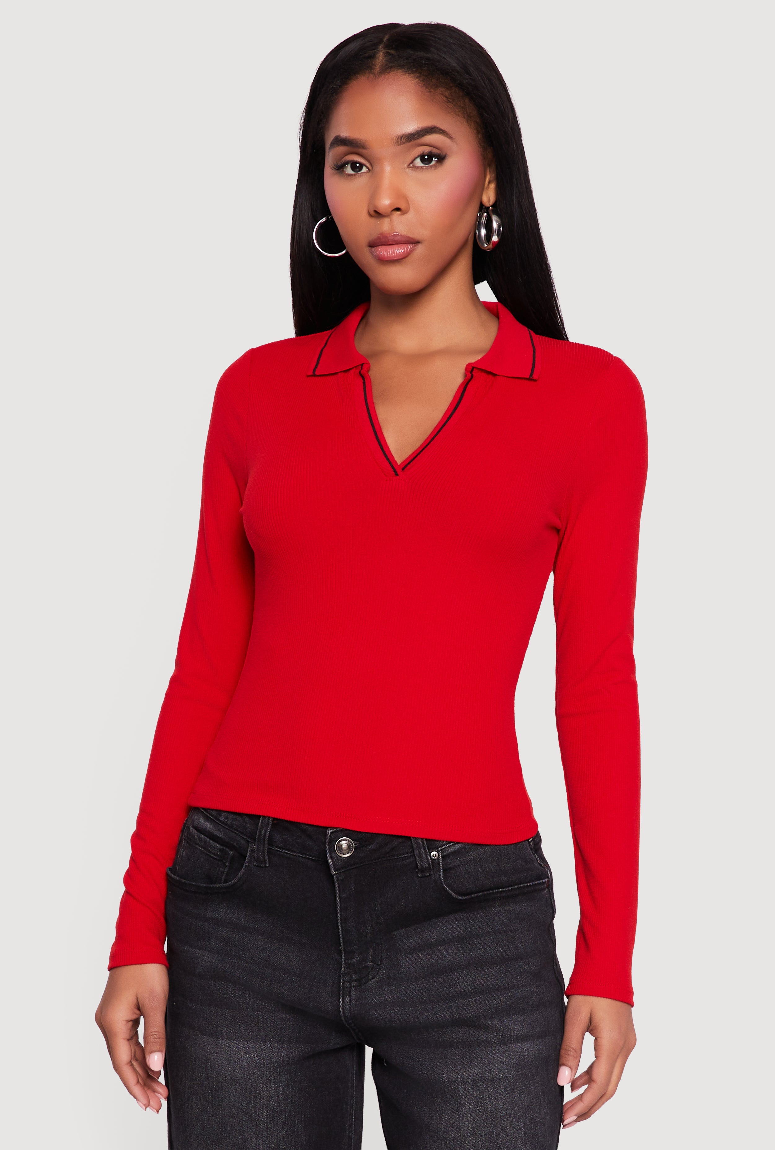 Contrast Trim Ribbed Knit Polo Shirt