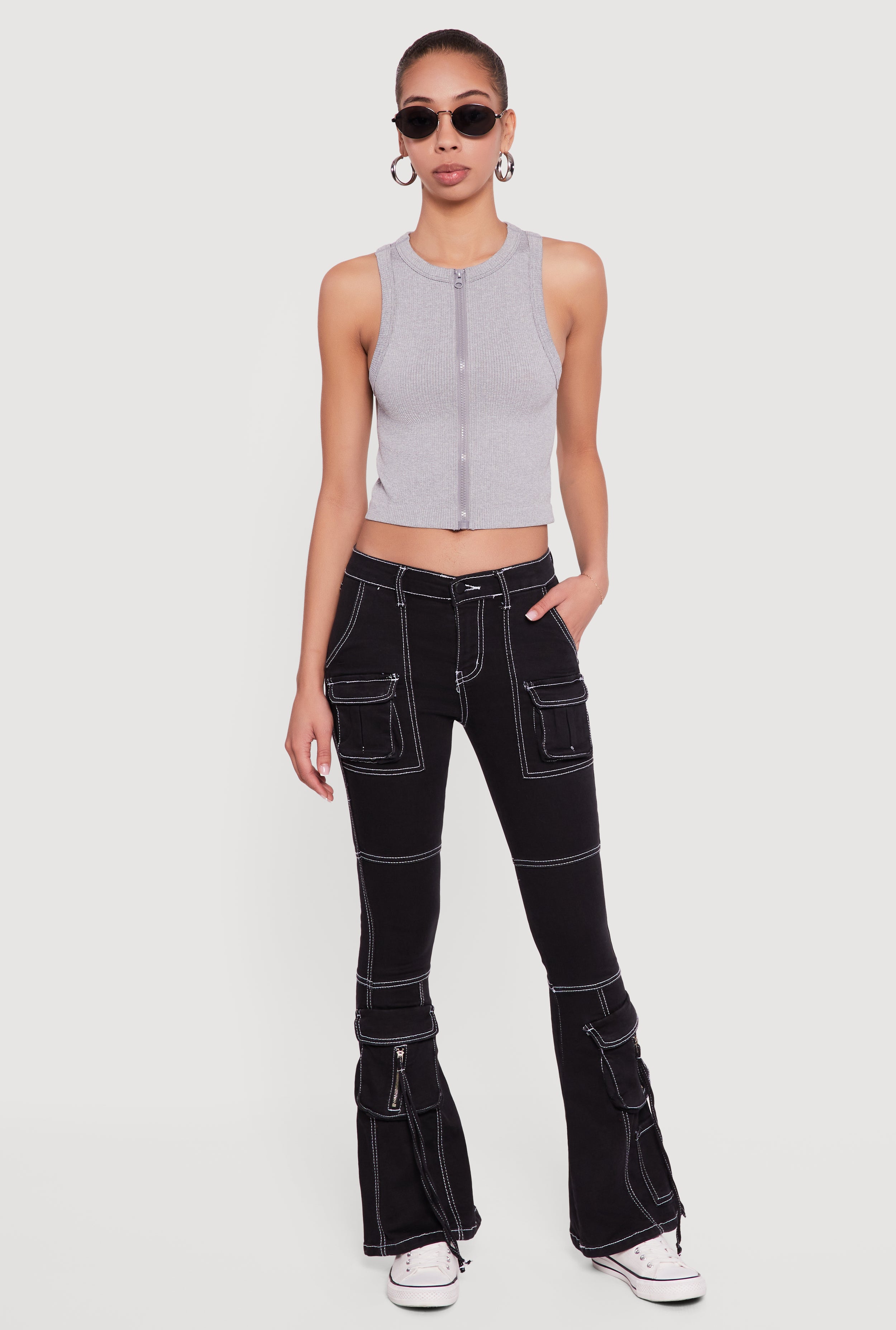 Seamless Zip Front Ribbed Knit Tank Top