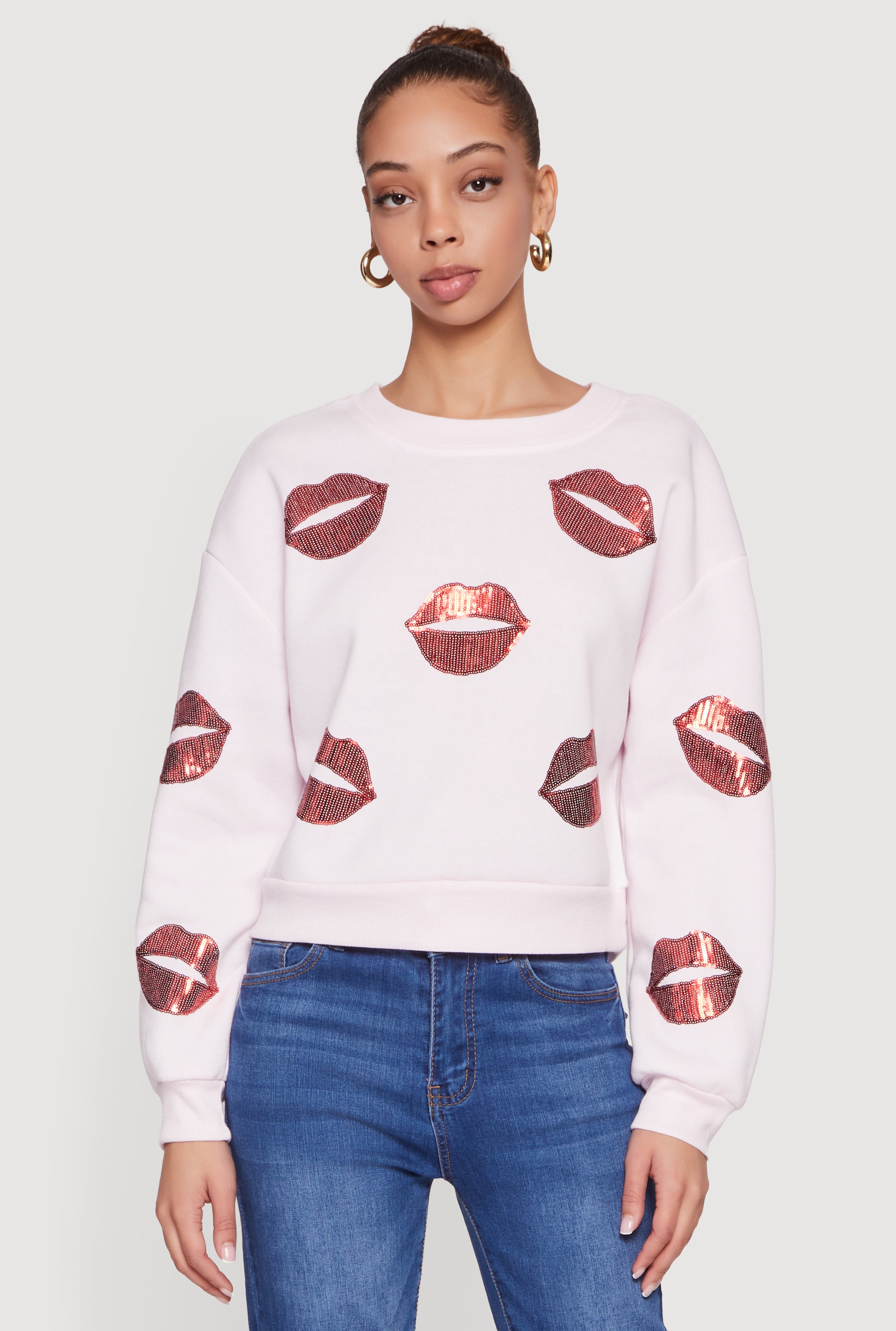 Patterned Sequin Long Sleeve Pullover Sweatshirt
