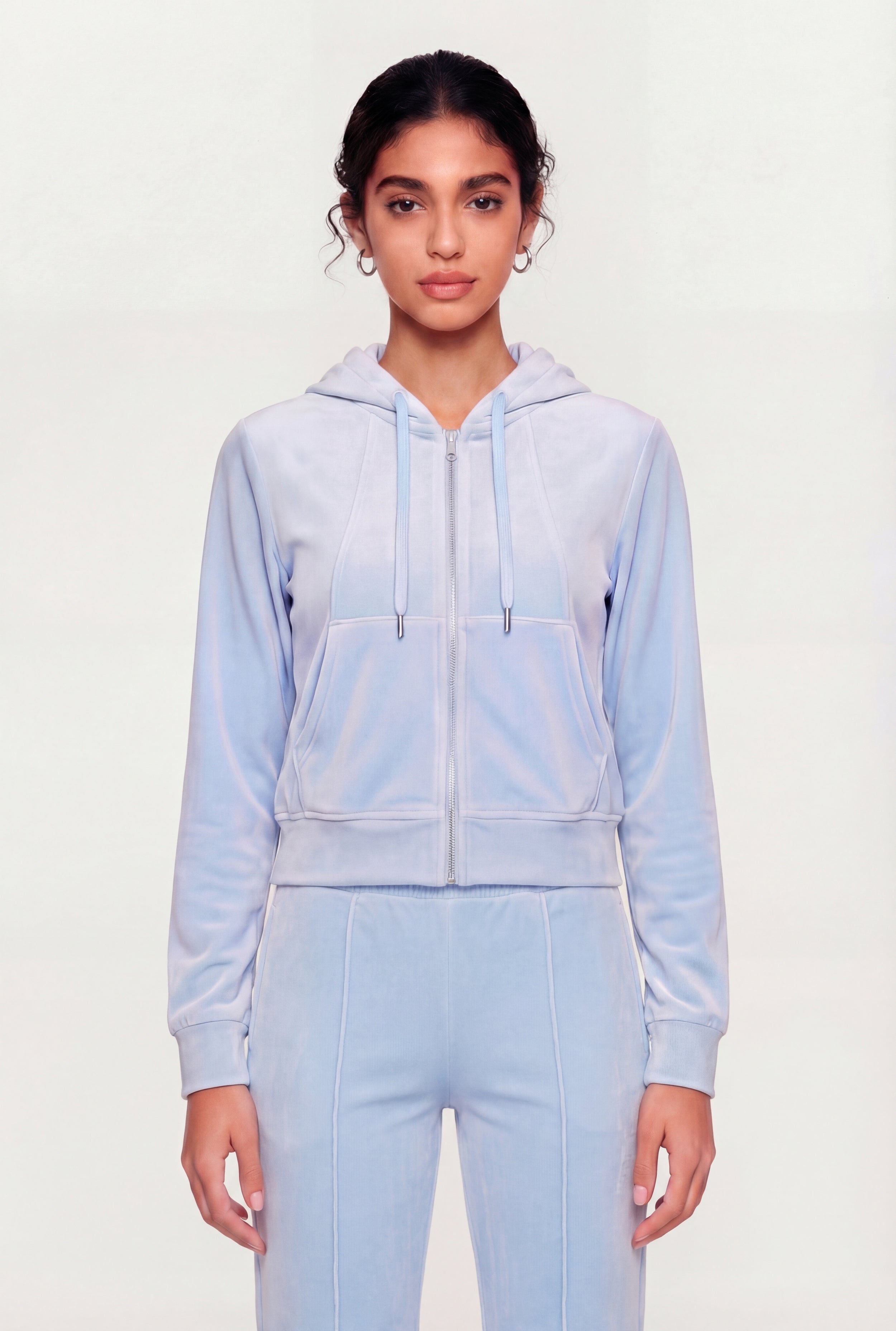 Velour Zip Front Hoodie