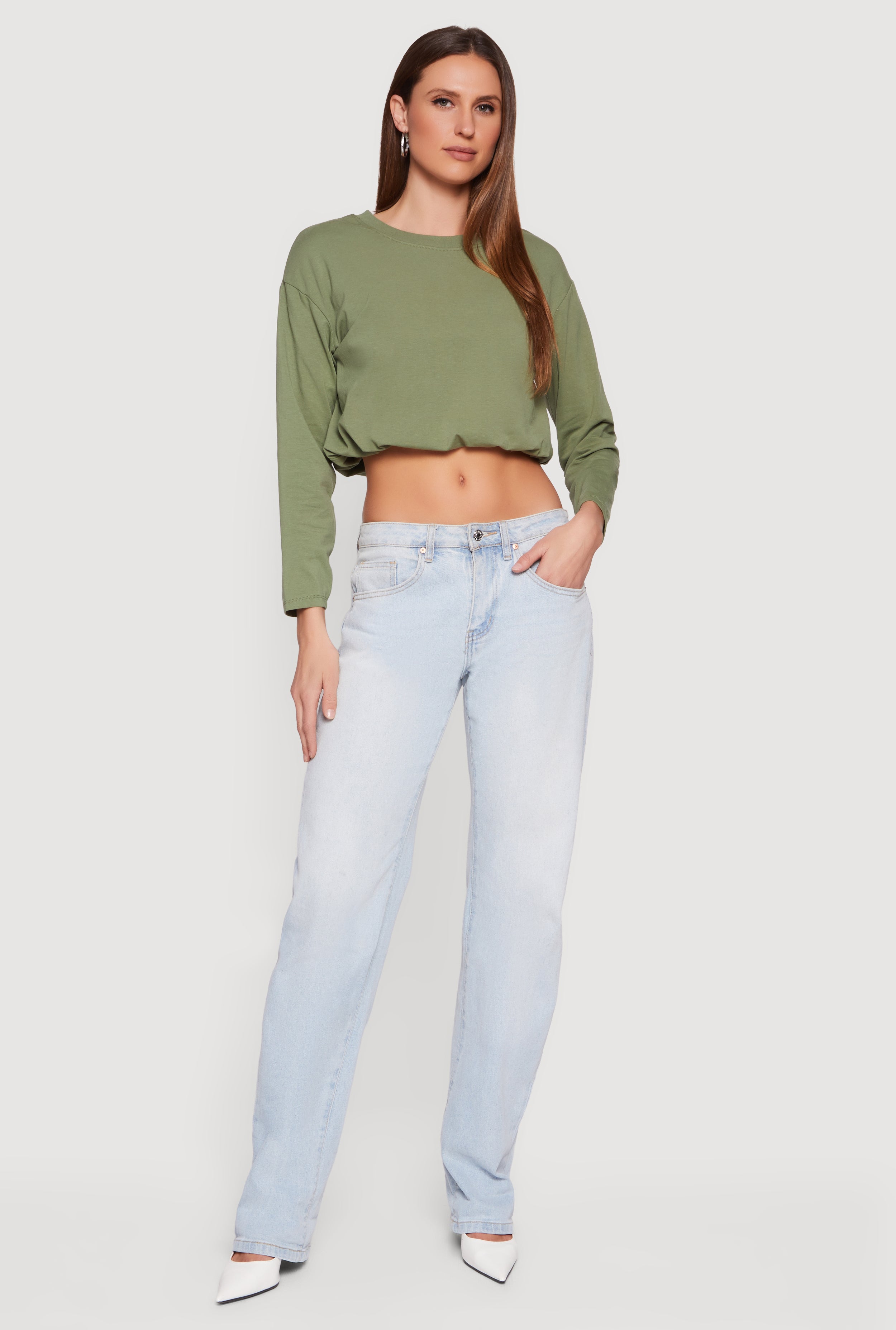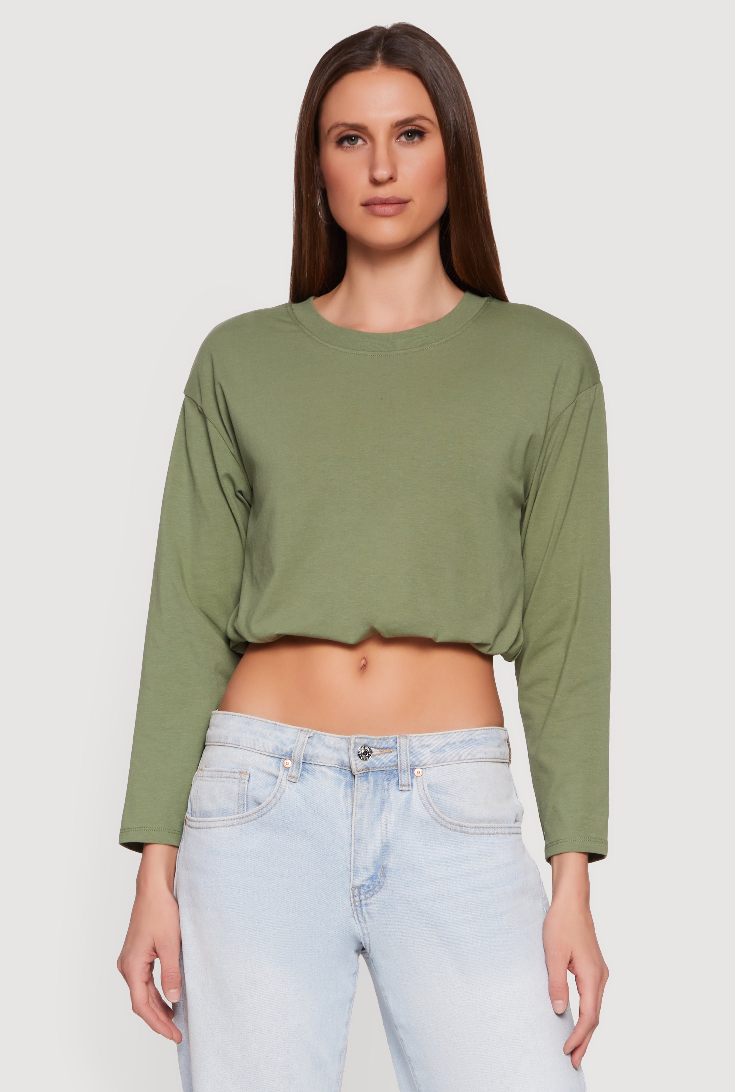 Long Sleeve Bubble Hem Crop Top