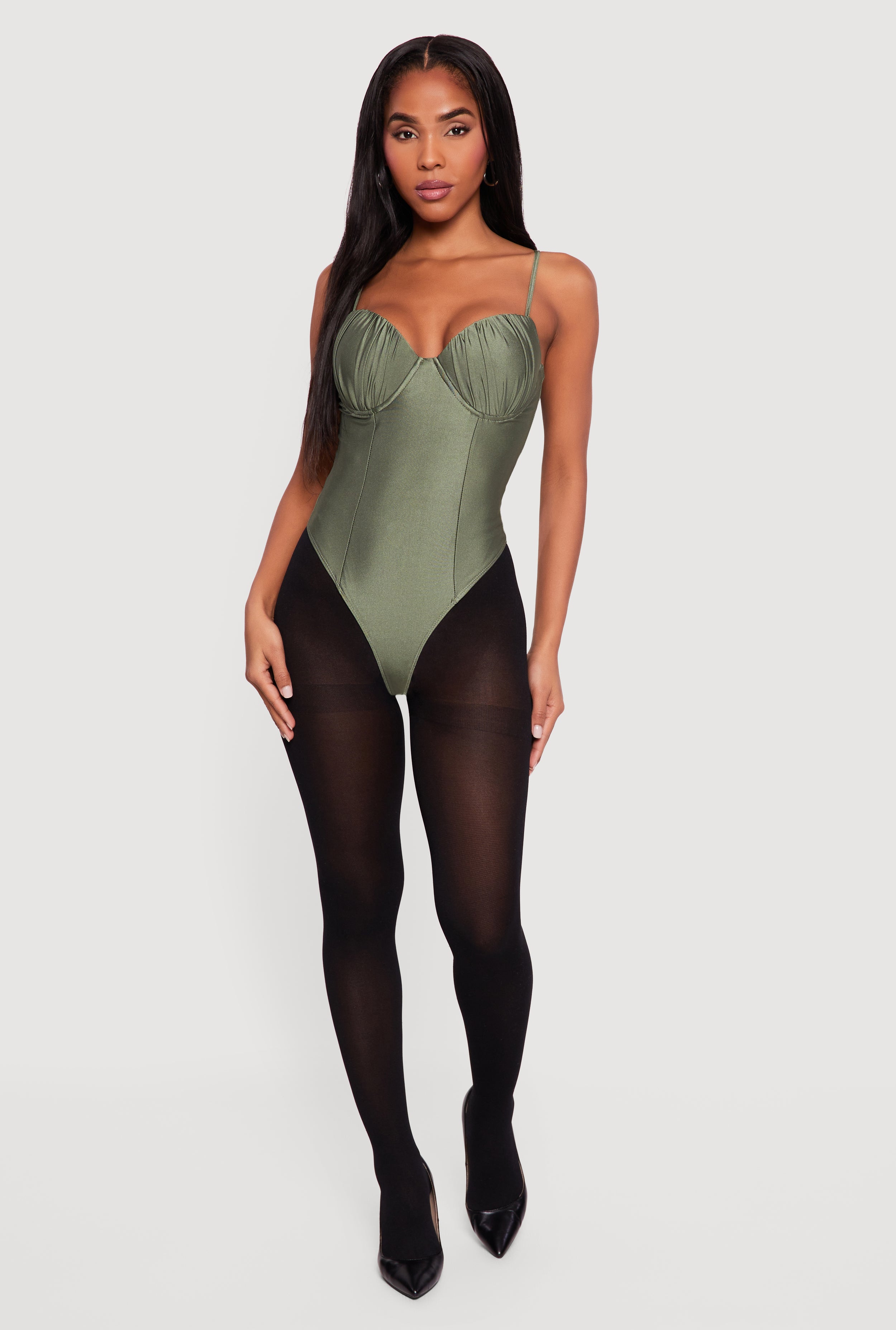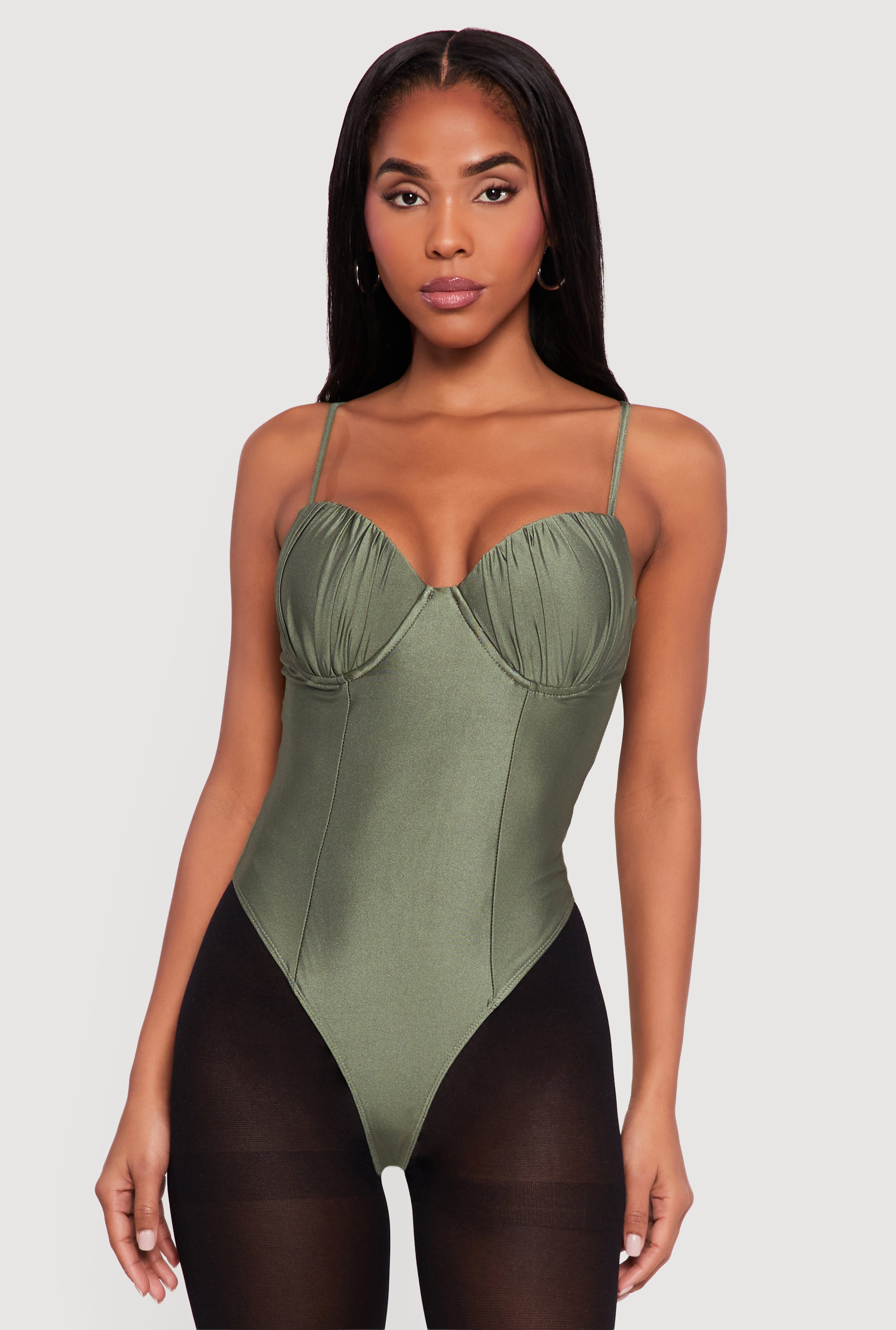 Solid Ruched Corset Bodysuit