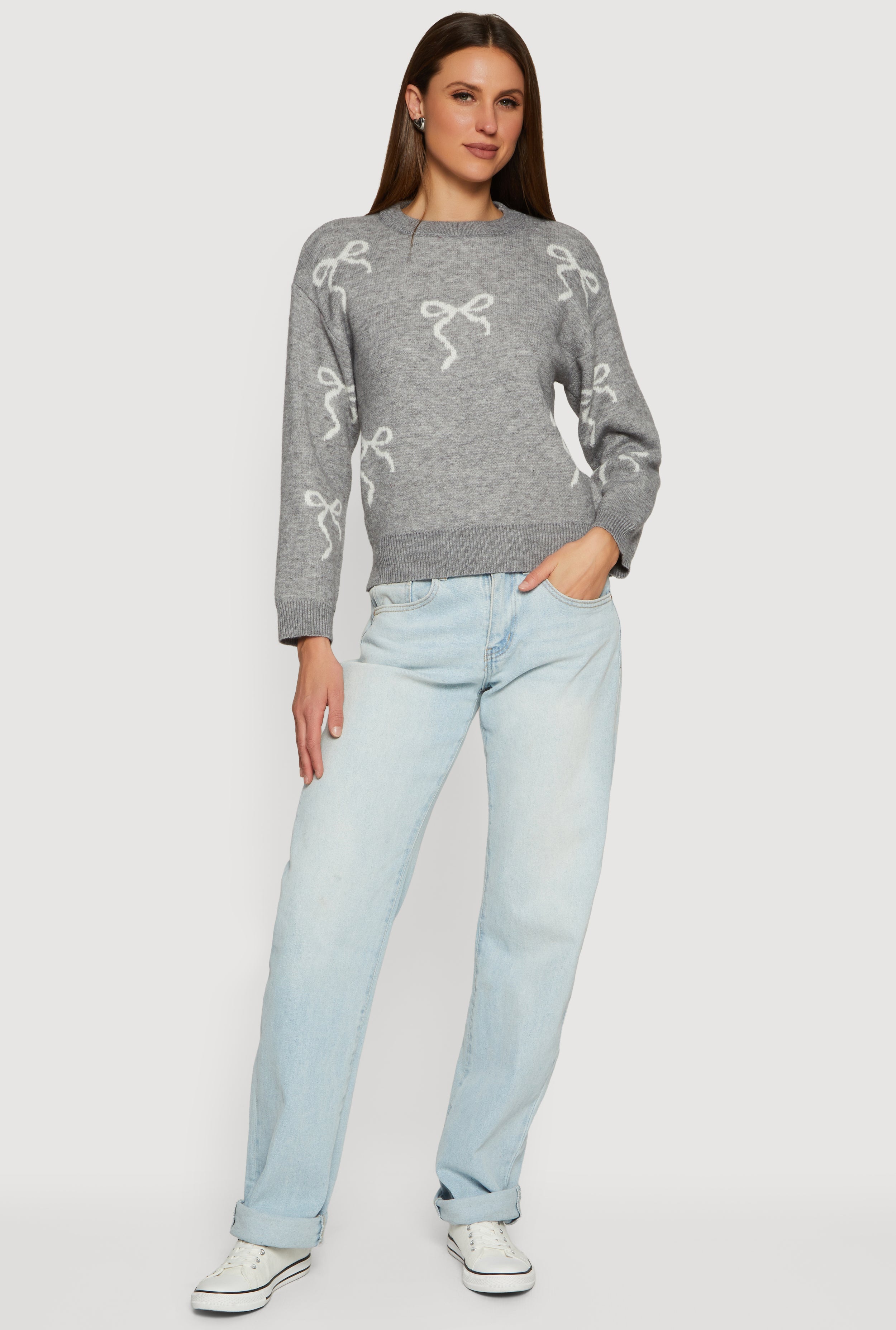 Bow Print Long Sleeve High Neck Pullover Sweater