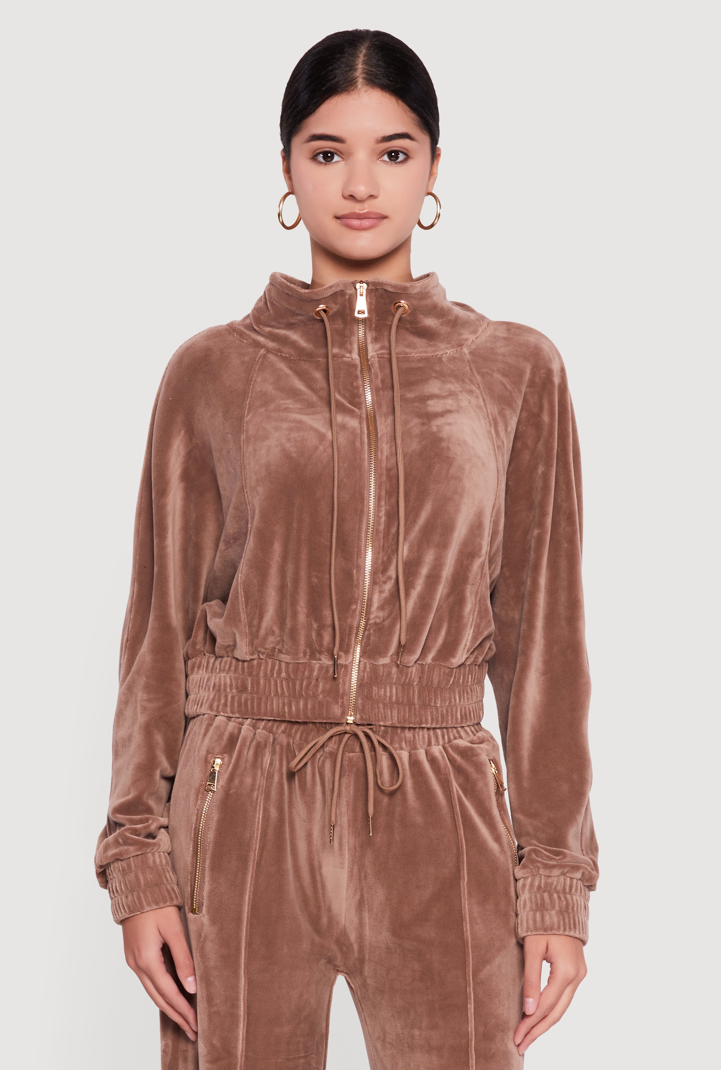Velour Drawstring Mock Neck Sweatshirt