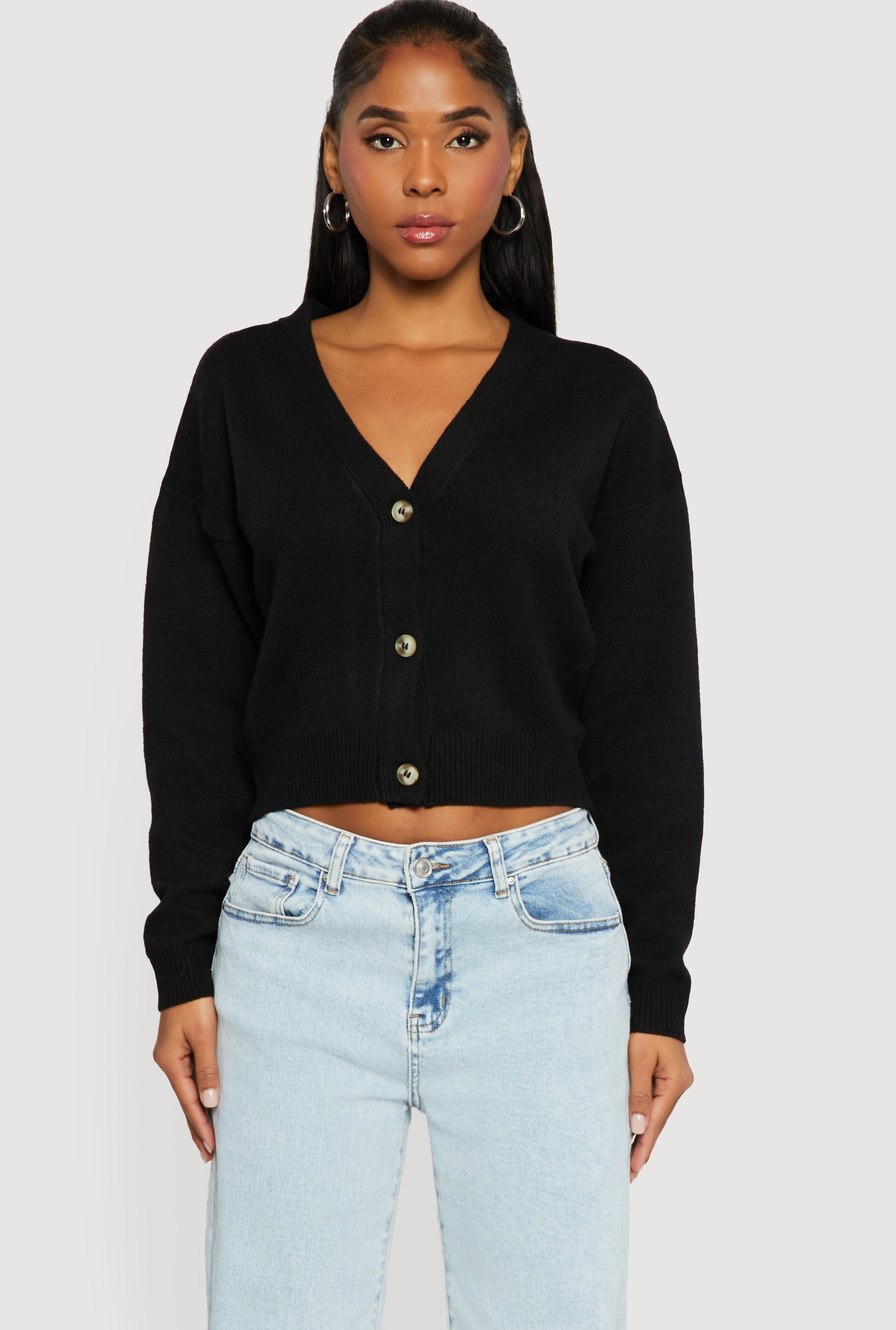 Button Front Long Sleeve V-Neck Cardigan