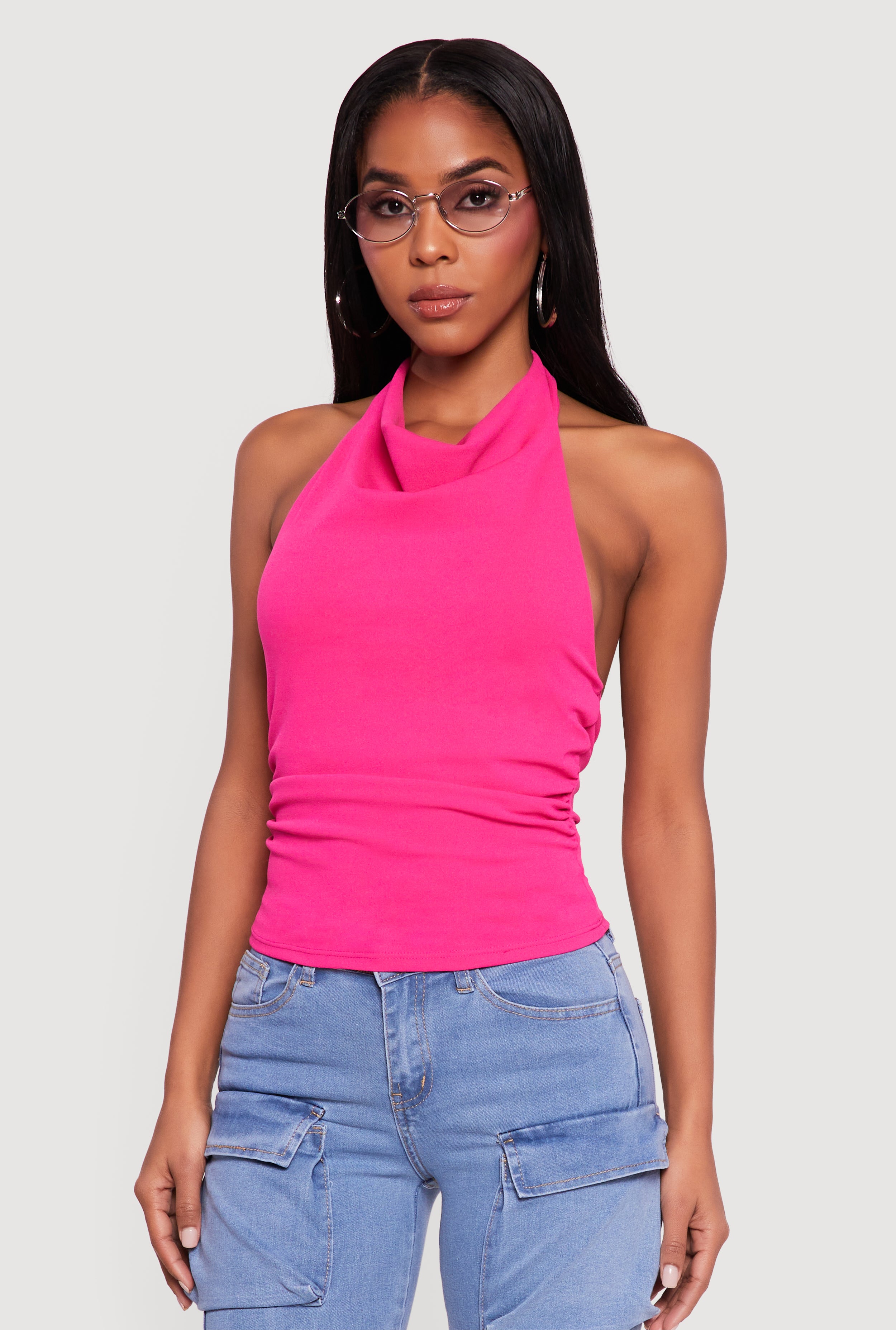 Cowl Neck Ruched Side Halter Top