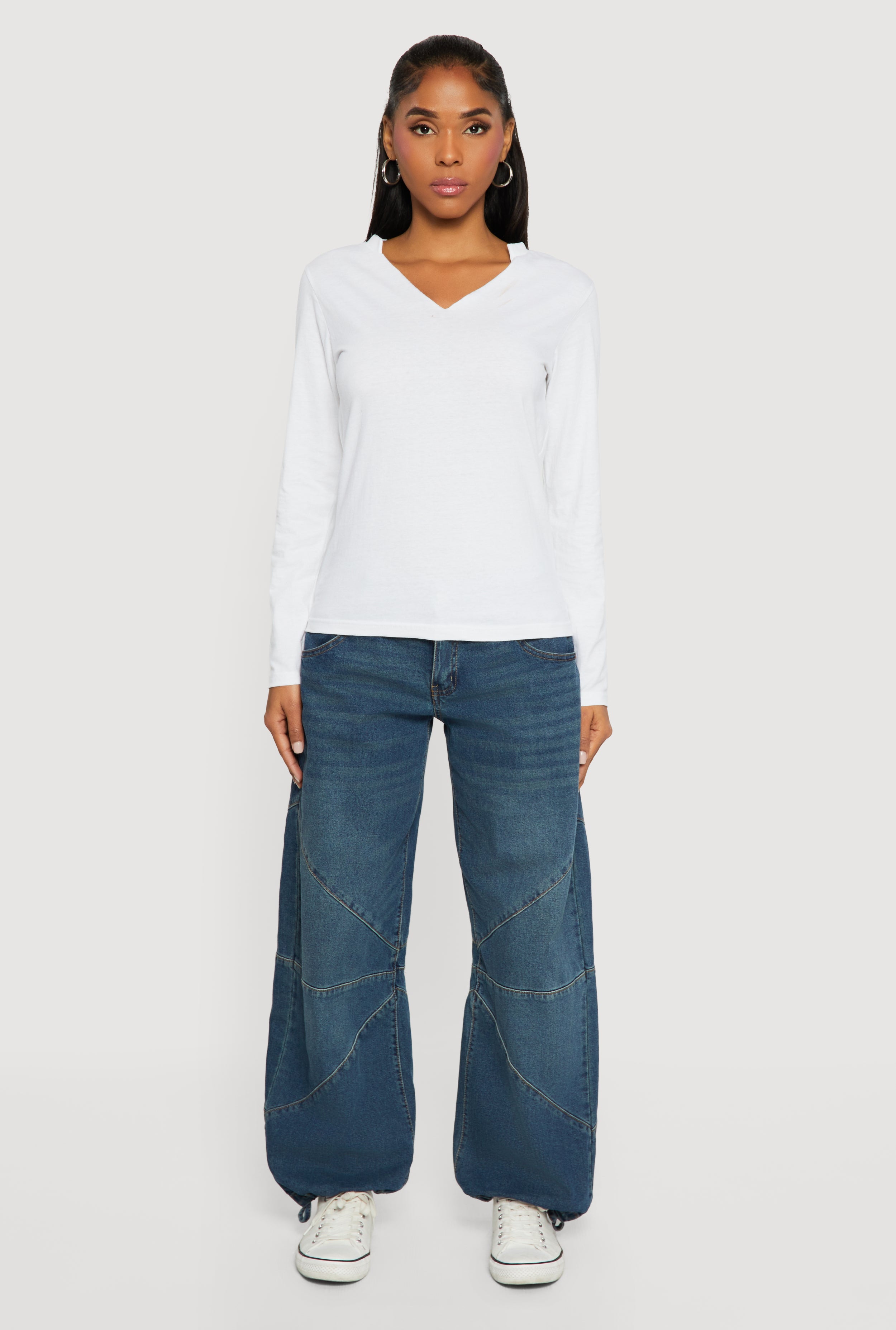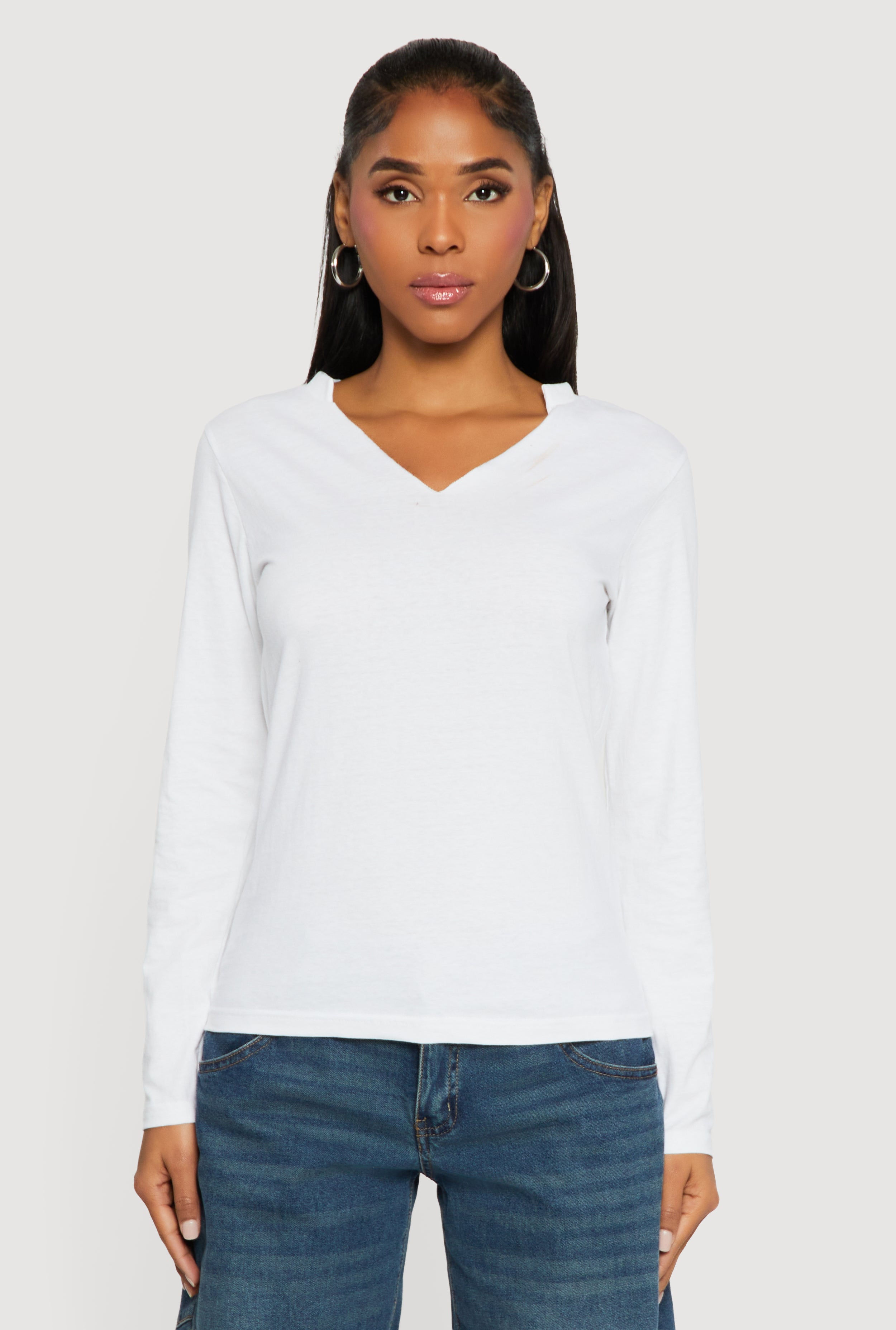 Solid Notch Neck Long Sleeve T-Shirt