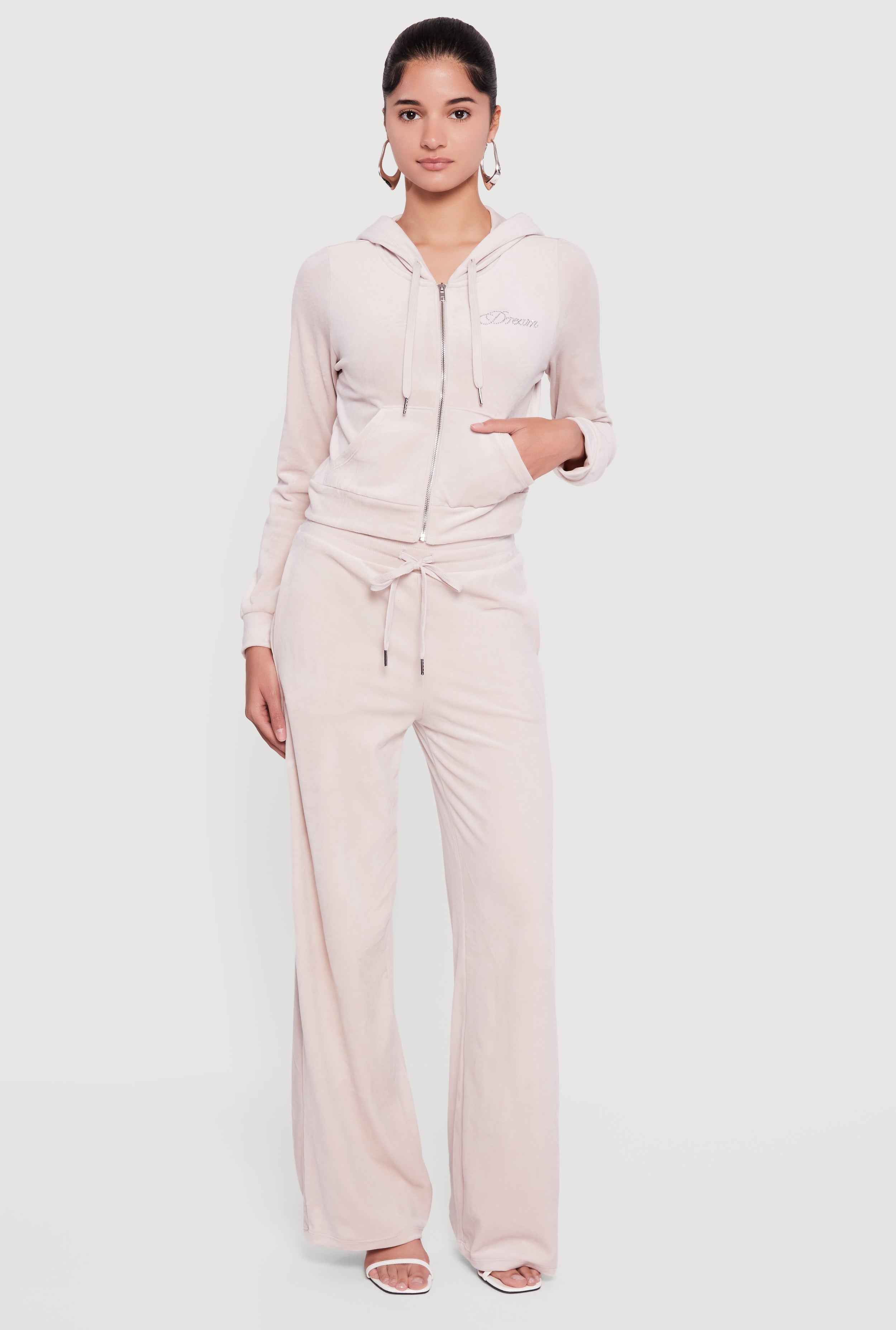 Velour Rhinestone Dream Graphic Zip Front Hoodie