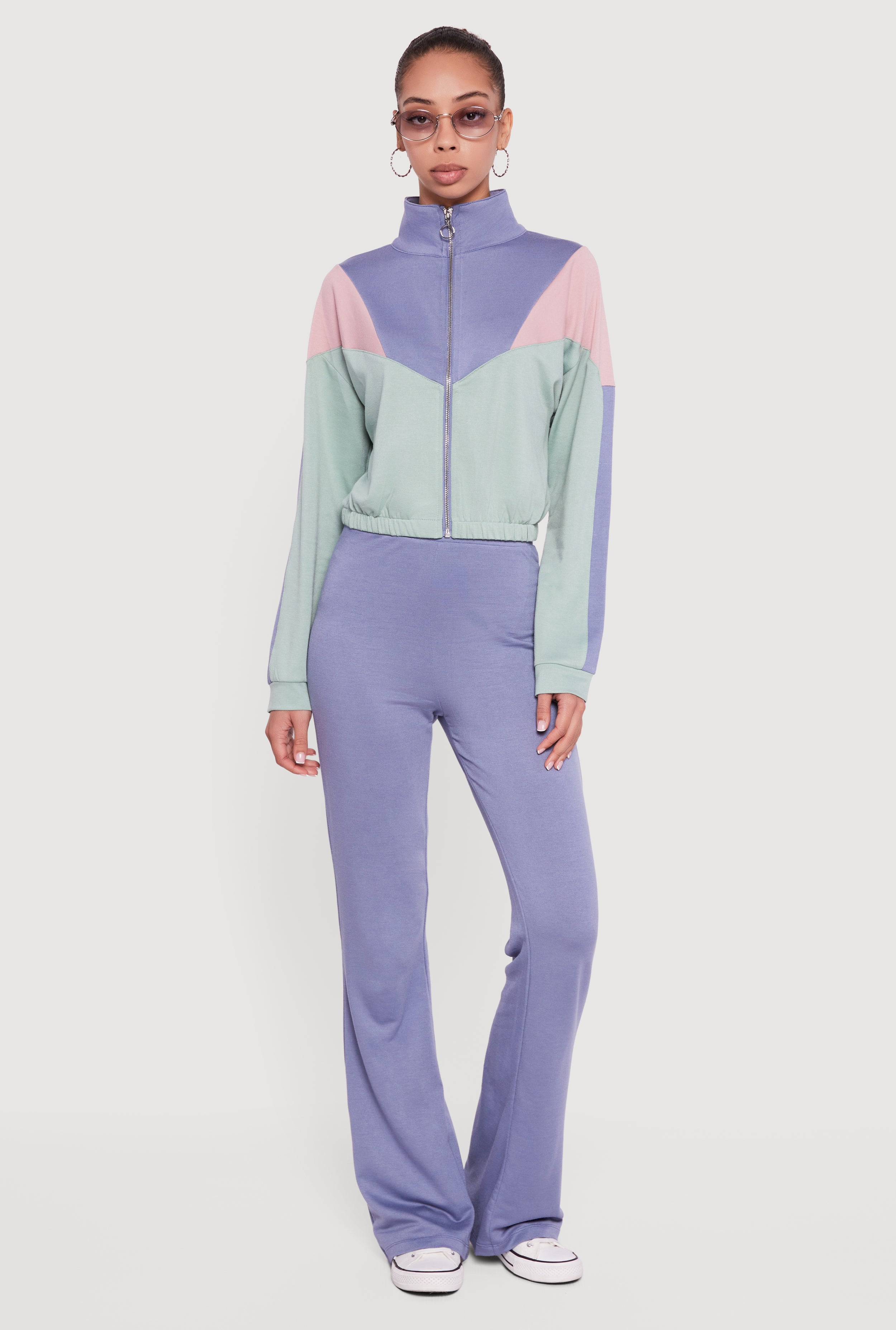 Color Block Scuba Cropped Mock Neck Zip Front Top