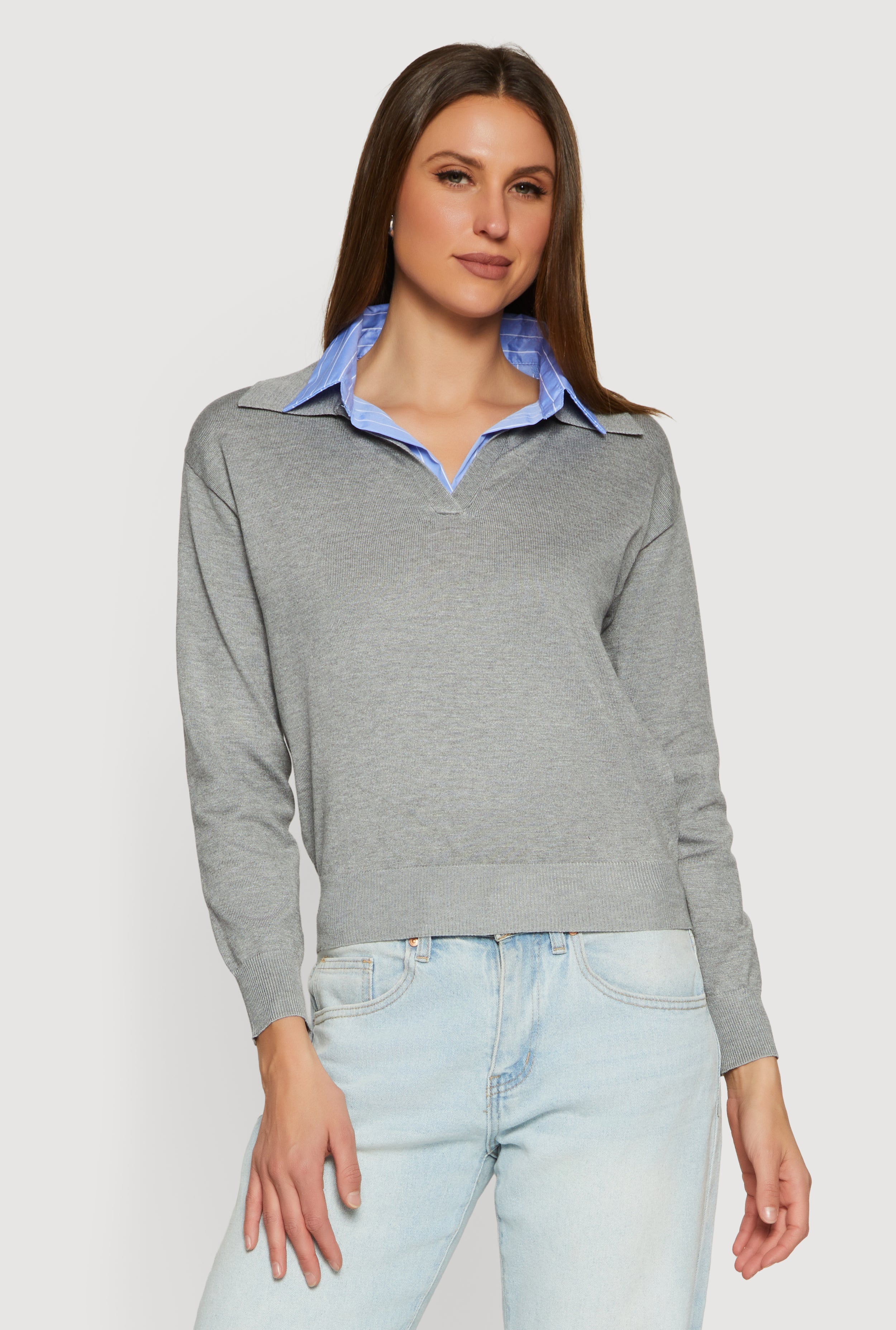 Pinstripe Collar Layered Look Polo Shirt