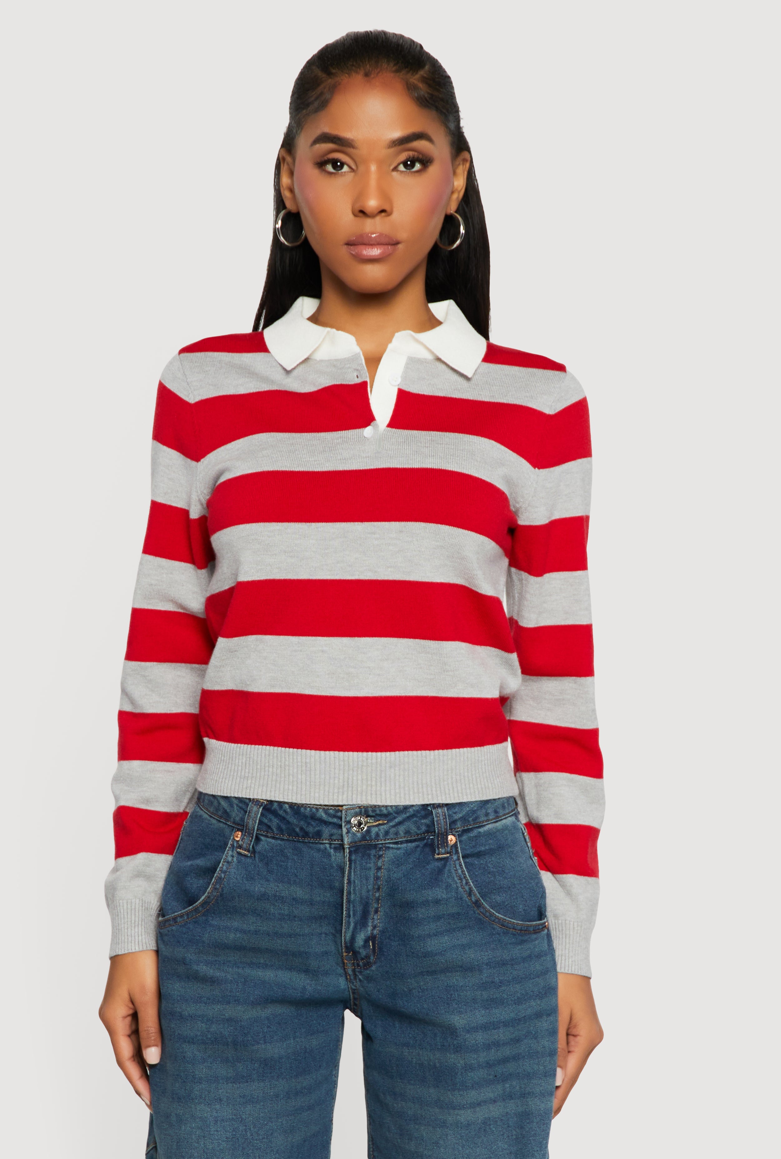 Striped Long Sleeve Polo Sweater