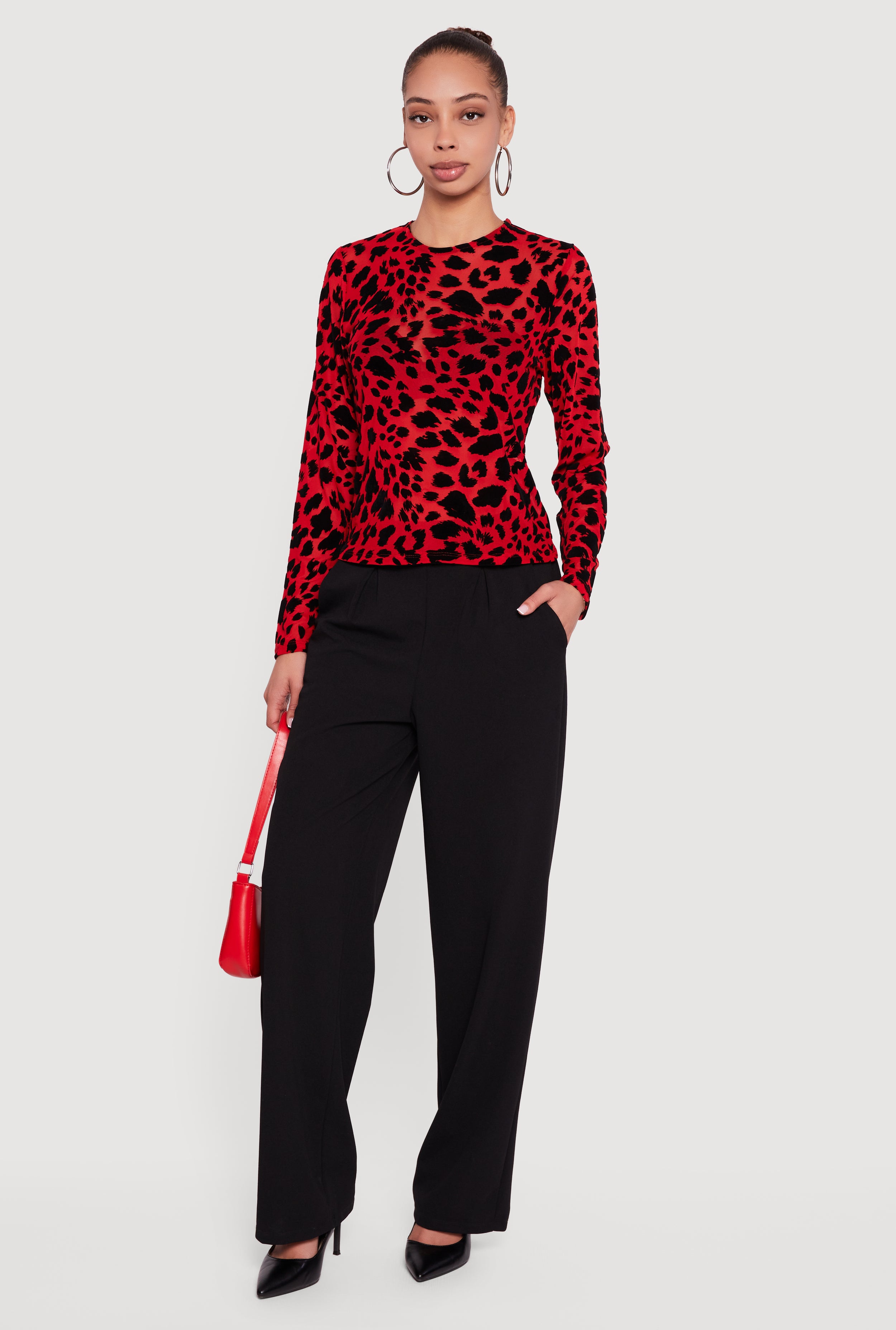 Animal Print Velvet Burnout Long Sleeve Top