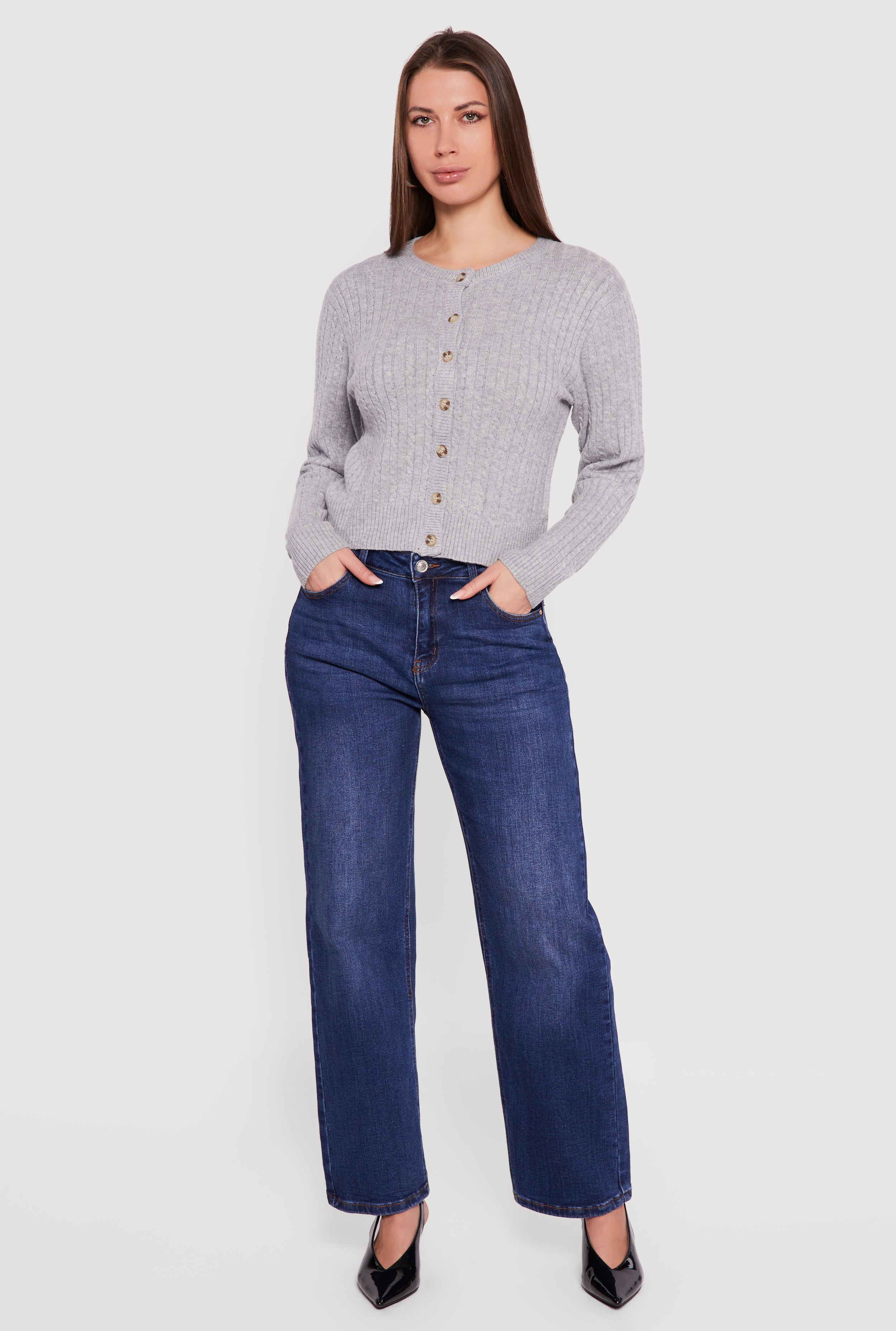 Cable Knit Button Front Cardigan