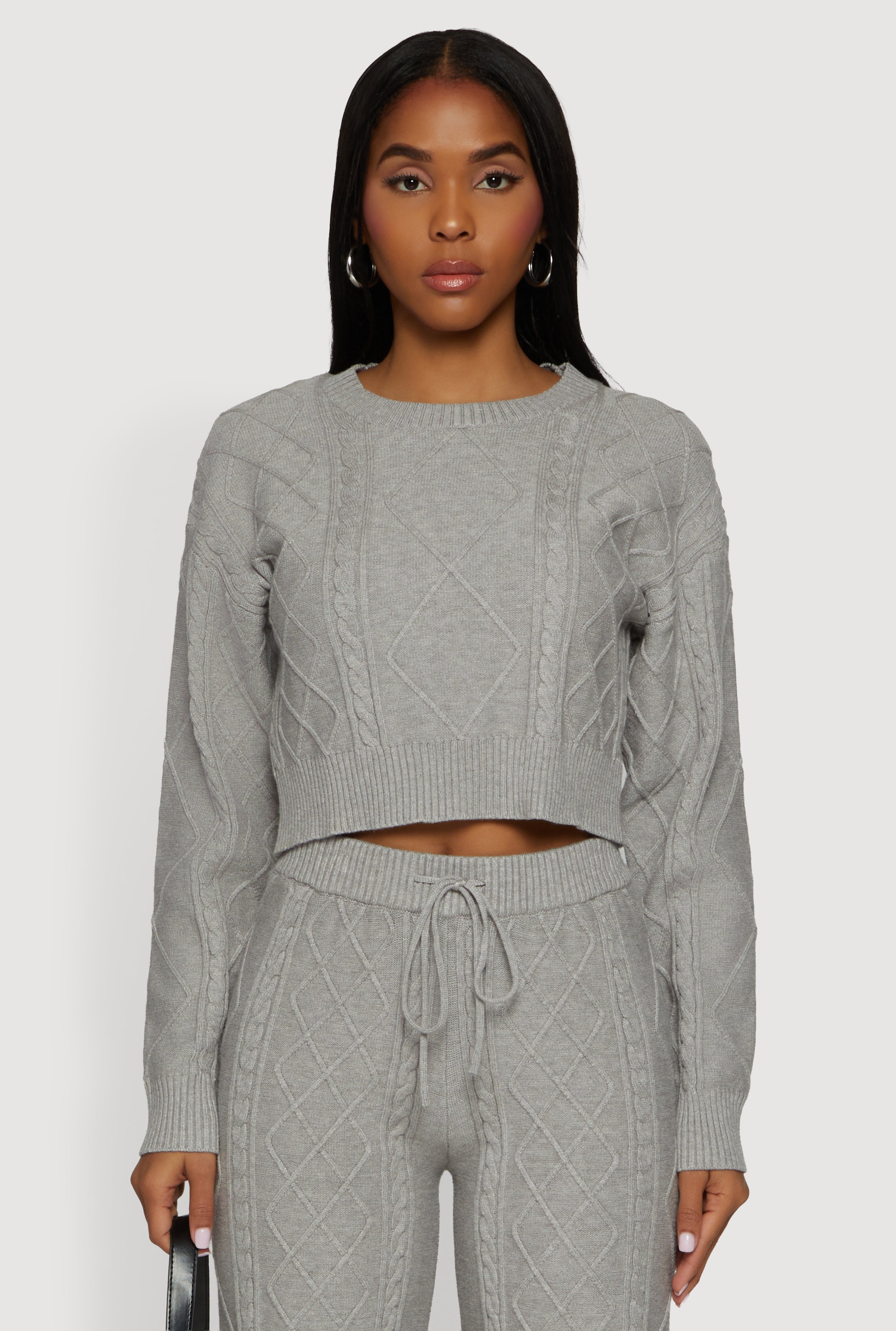 Cable Knit Cropped Zip Front Hoodie