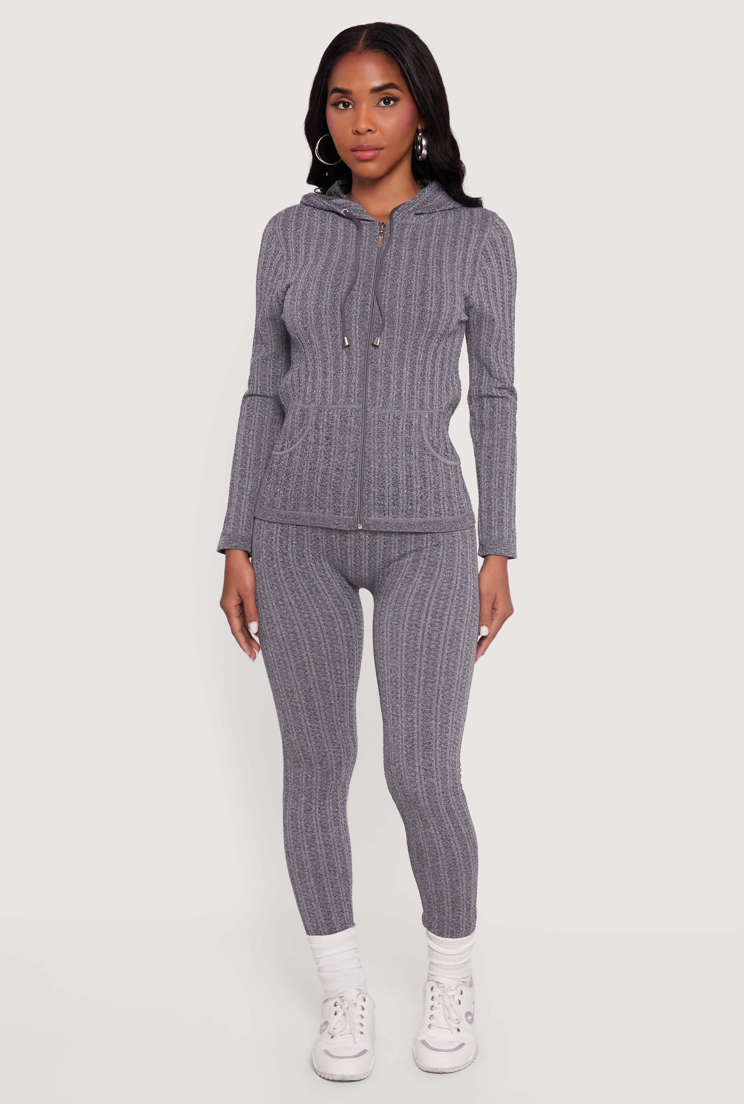 Textured Knit Zip Front Hoodie