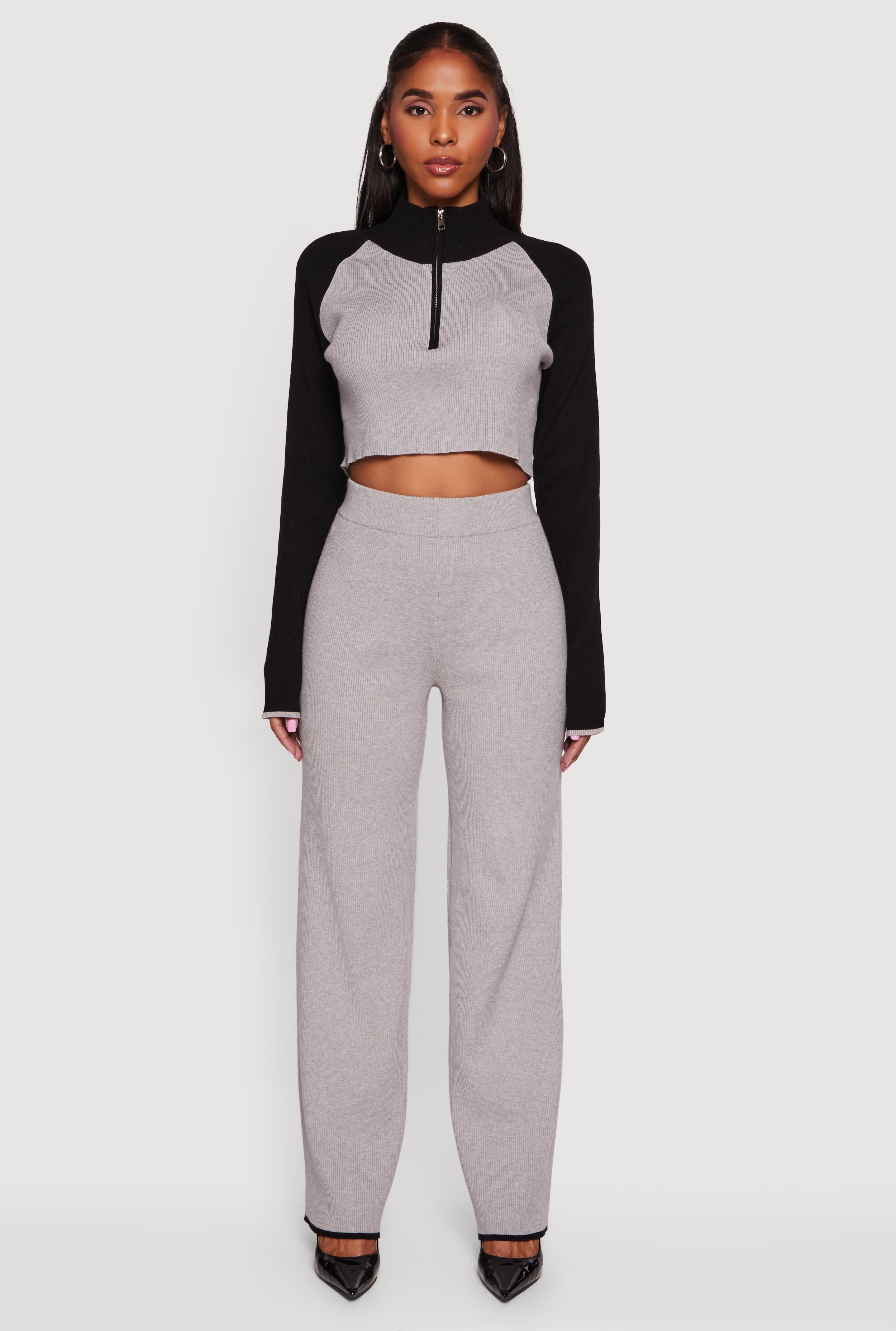 Color Blocked Half Zip Crop Sweater