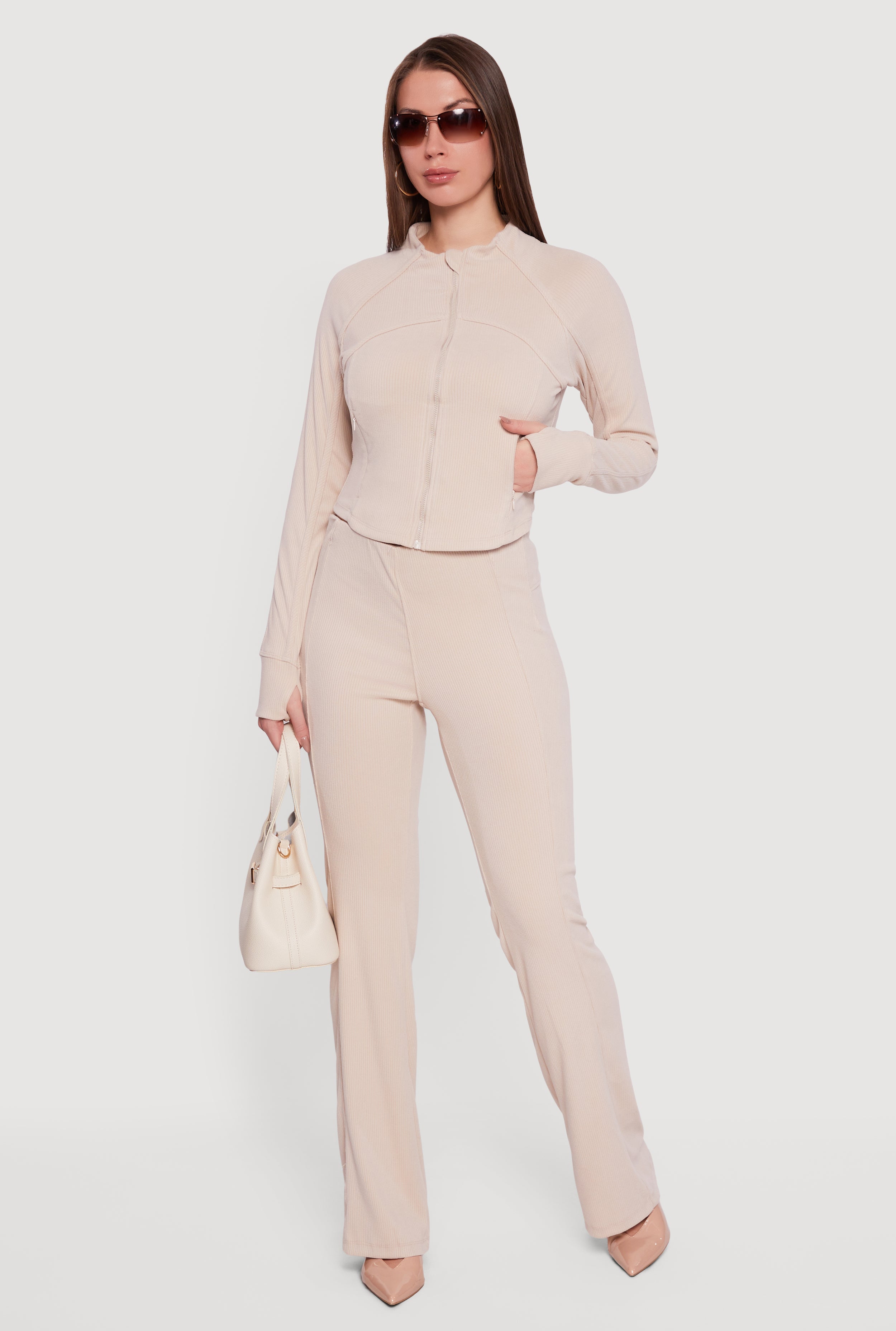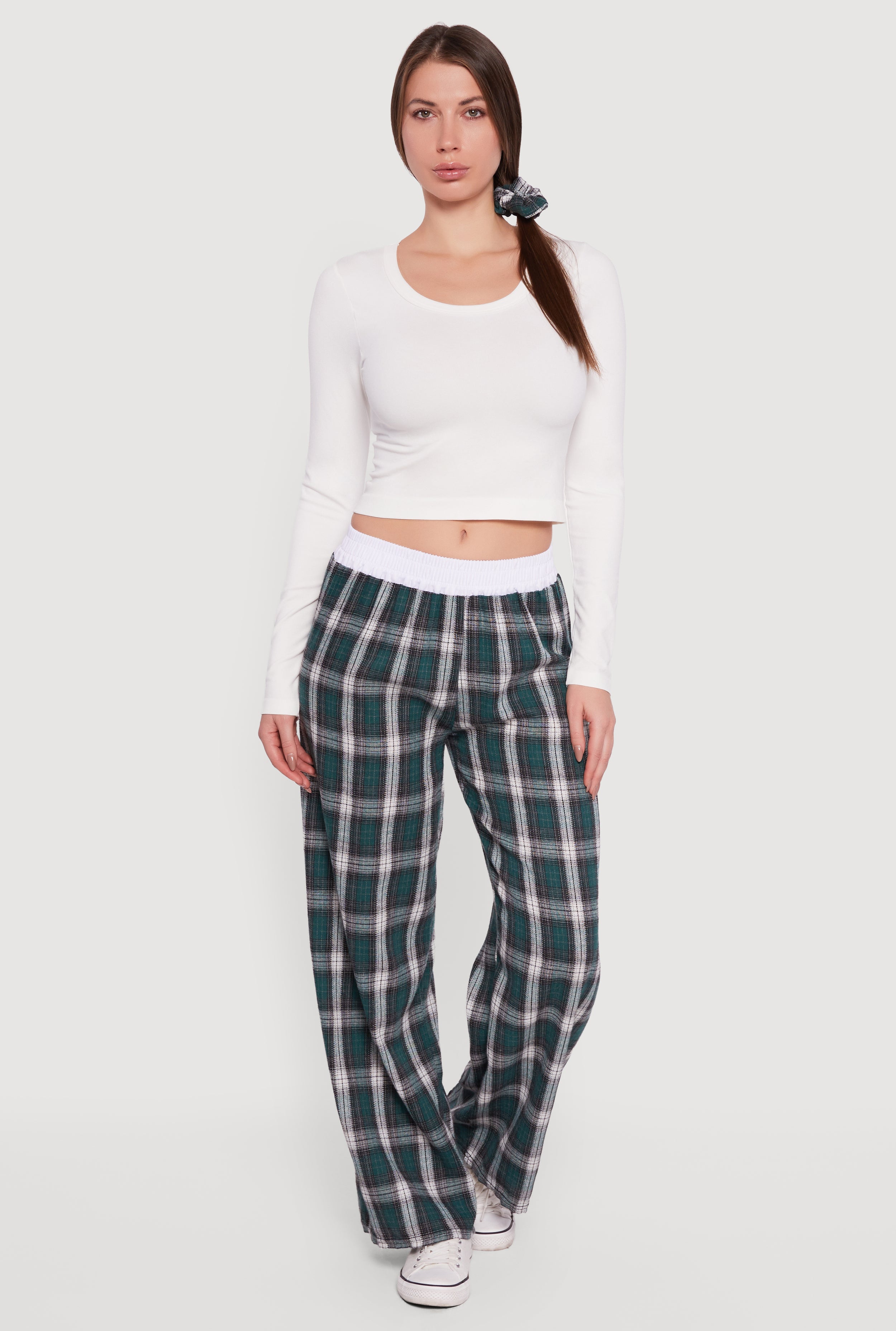 Rib Knit Long Sleeve Crop Top with Scrunchie