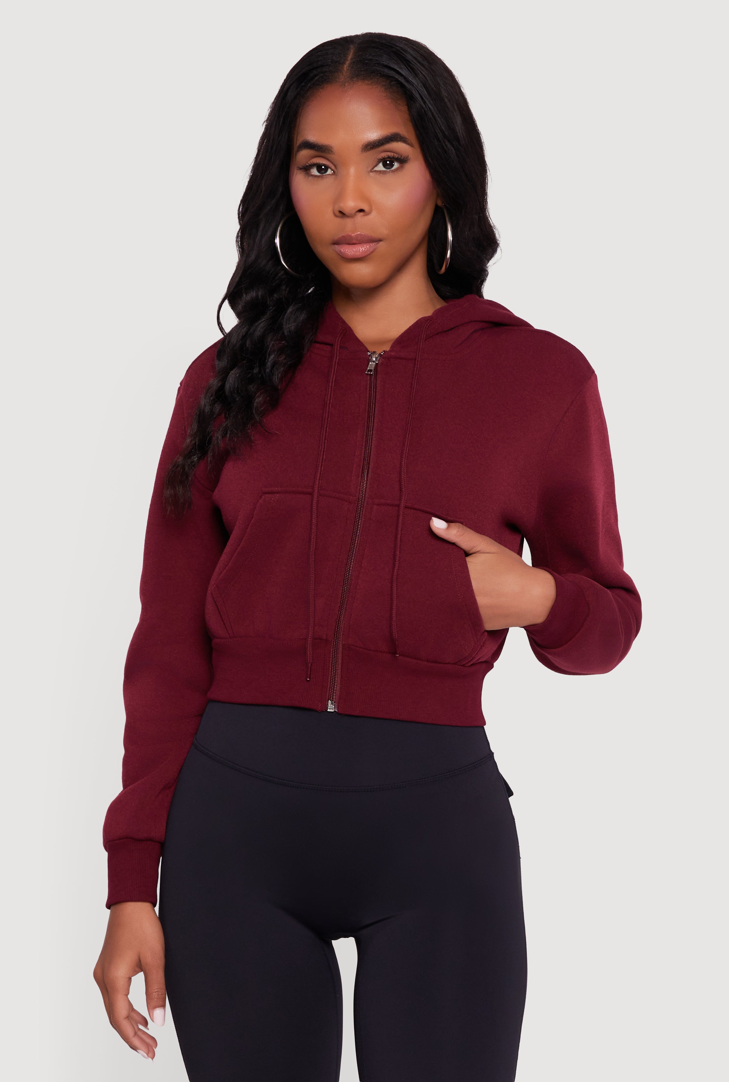 Cropped Zip Front Hoodie