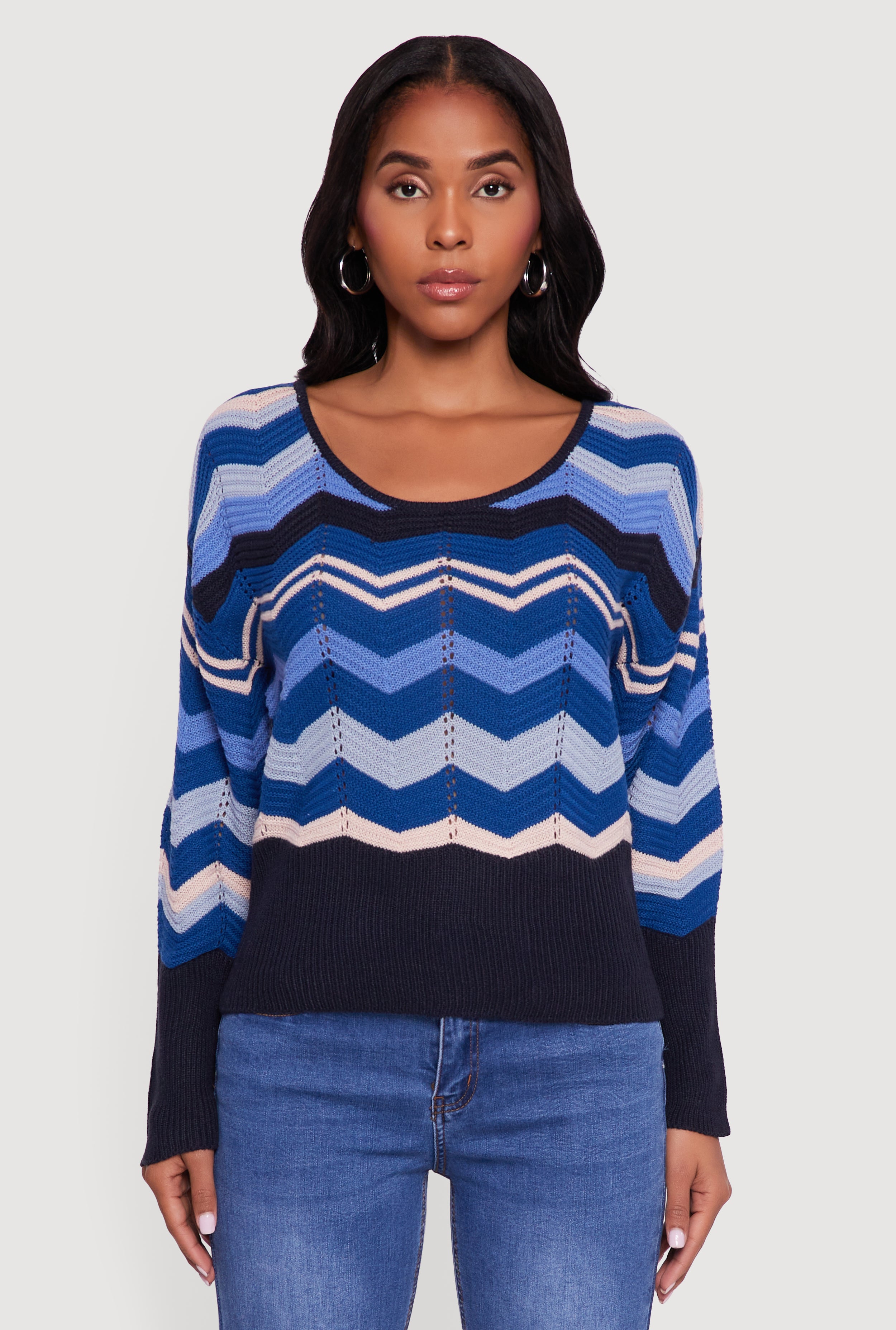 Chevron Pointelle Knit Caged Back Sweater